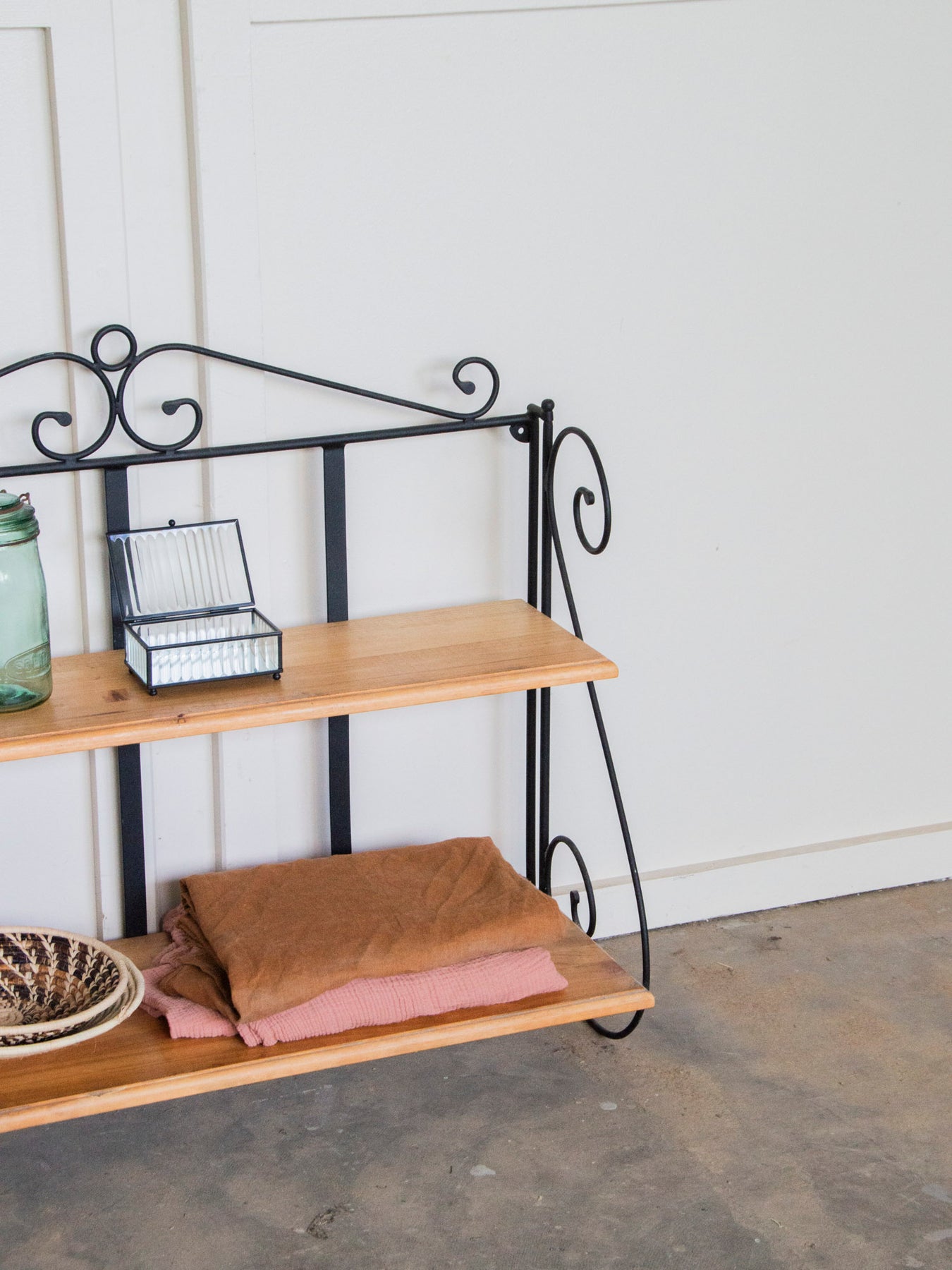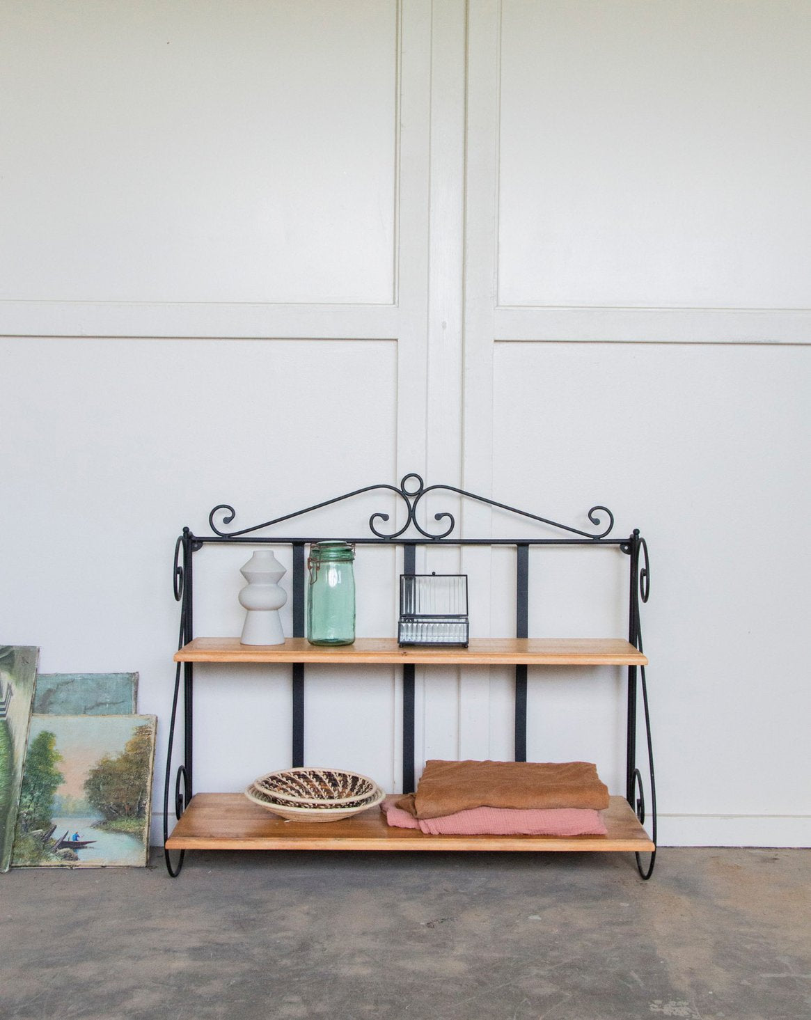 Apportez style et personnalité à votre intérieur avec cette étagère en bois clair et fer forgé noir. Ses deux étages de rangement offrent un espace pratique pour vos livres, plantes ou objets déco, tandis que le métal incurvé lui confère une élégance aérienne et originale. Alliant robustesse et légèreté visuelle, elle se fond aussi bien dans un intérieur moderne que dans un décor plus naturel ou industriel. Un meuble qui allie fonctionnalité et esthétisme pour sublimer vos espaces de vie. Peut s'accrocher au mur facilement.