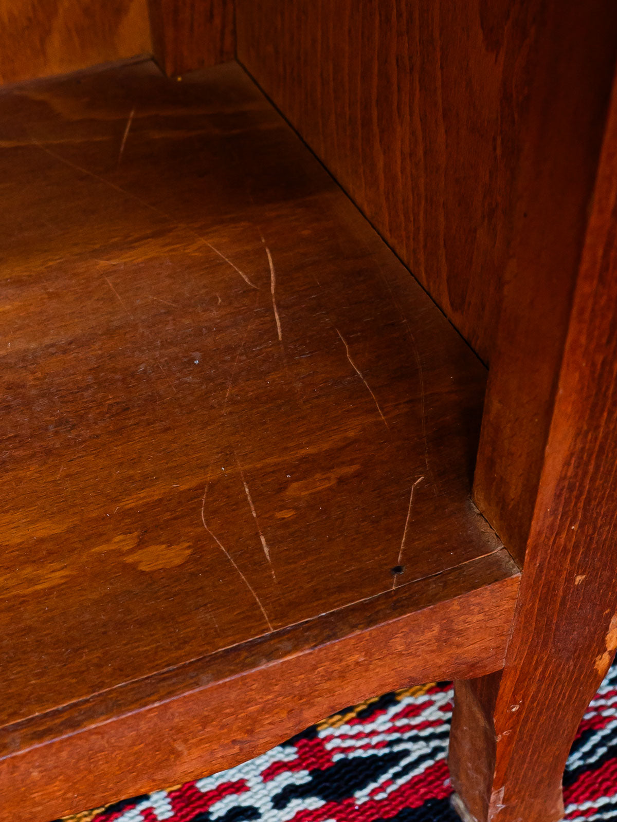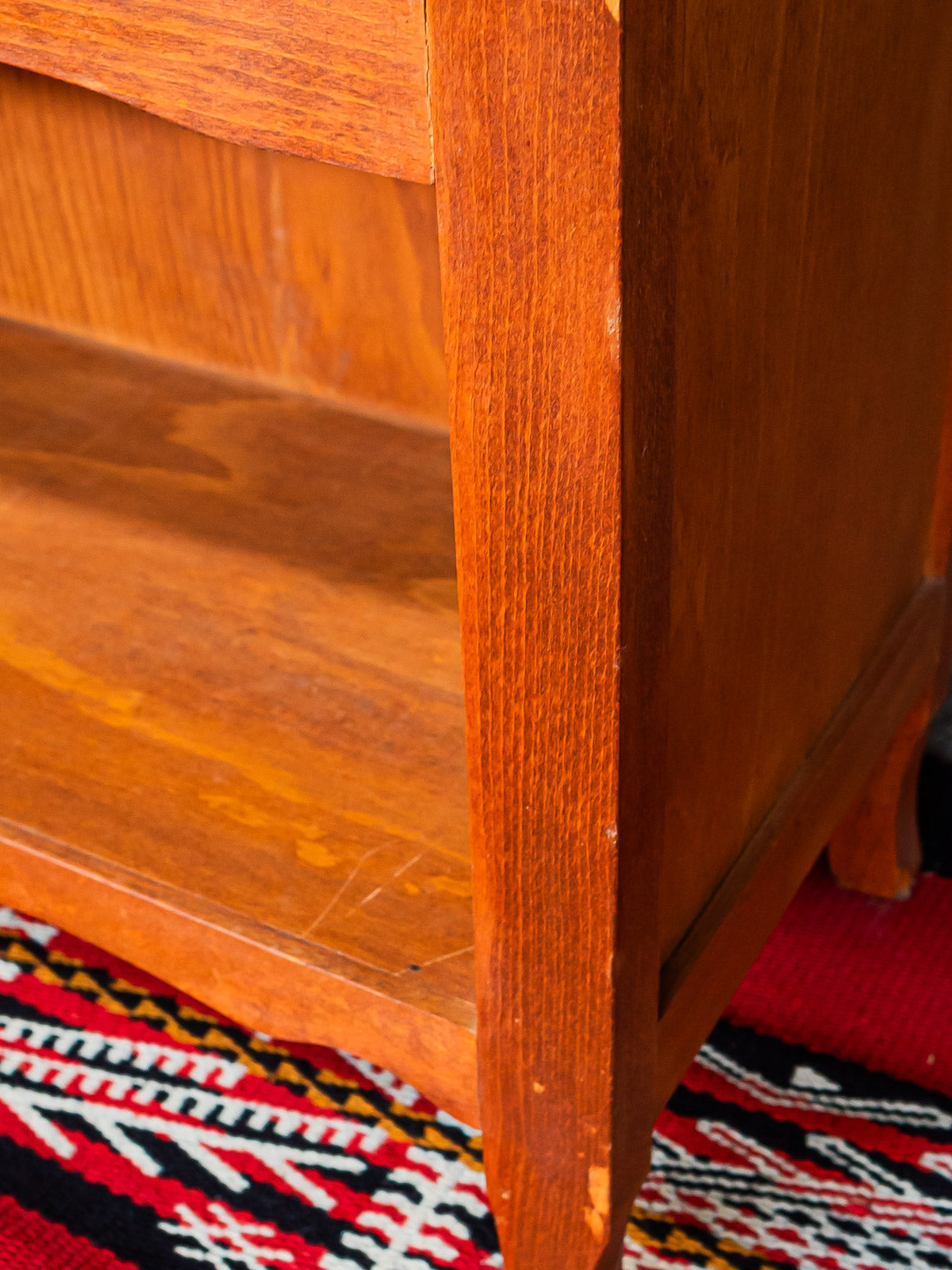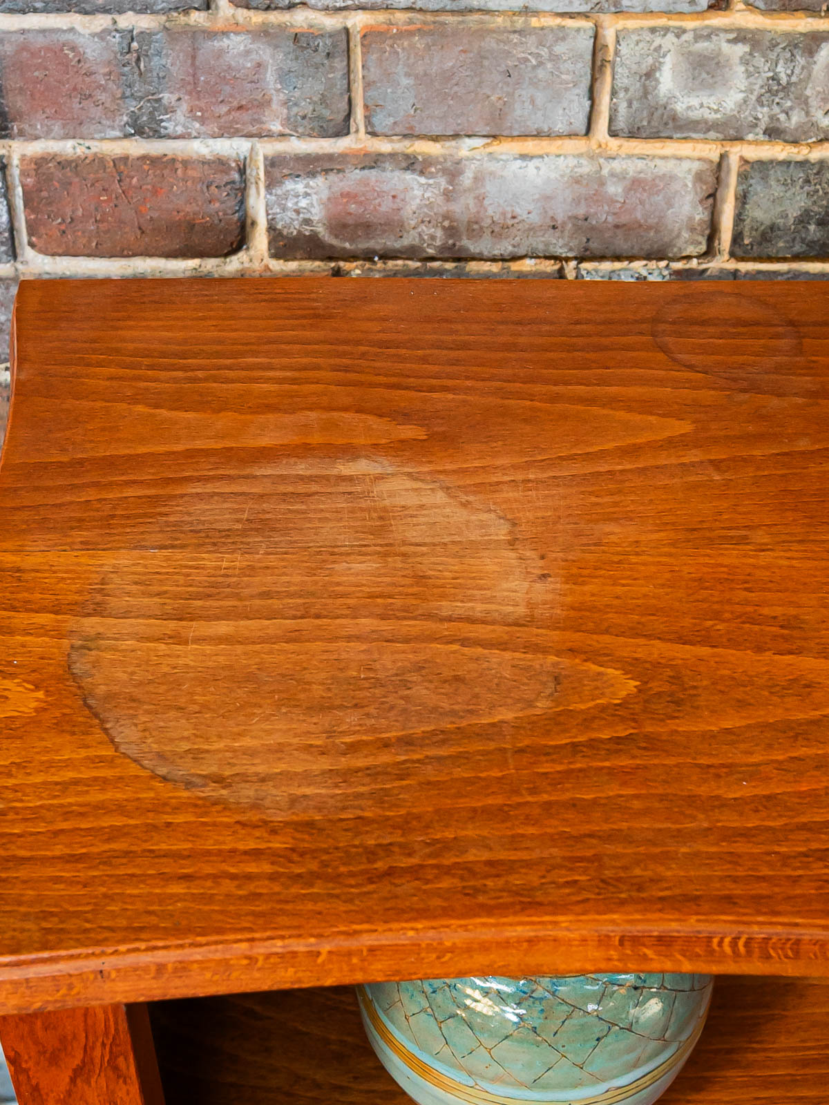 Découvrez notre petite bibliothèque dite "bibus", un charmant meuble de rangement issu des années 60. Fabriquée en bois plaqué hêtre, elle apportera une touche rétro à votre chambre ou pièce de vie. Bien que quelques traces d'usure témoignent de son histoire, son design intemporel et sa fonctionnalité en font un élément incontournable pour organiser vos livres et objets décoratifs avec style.