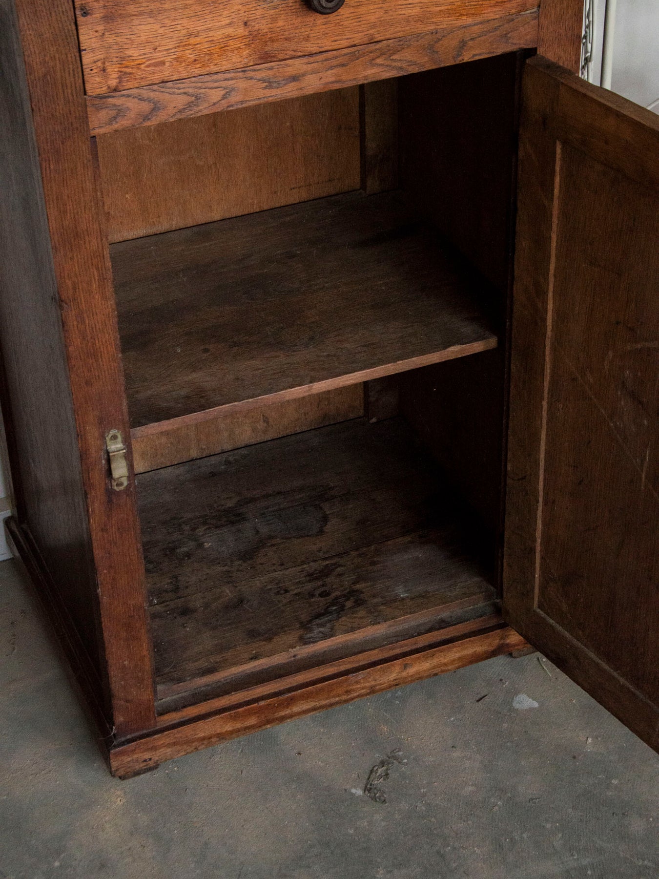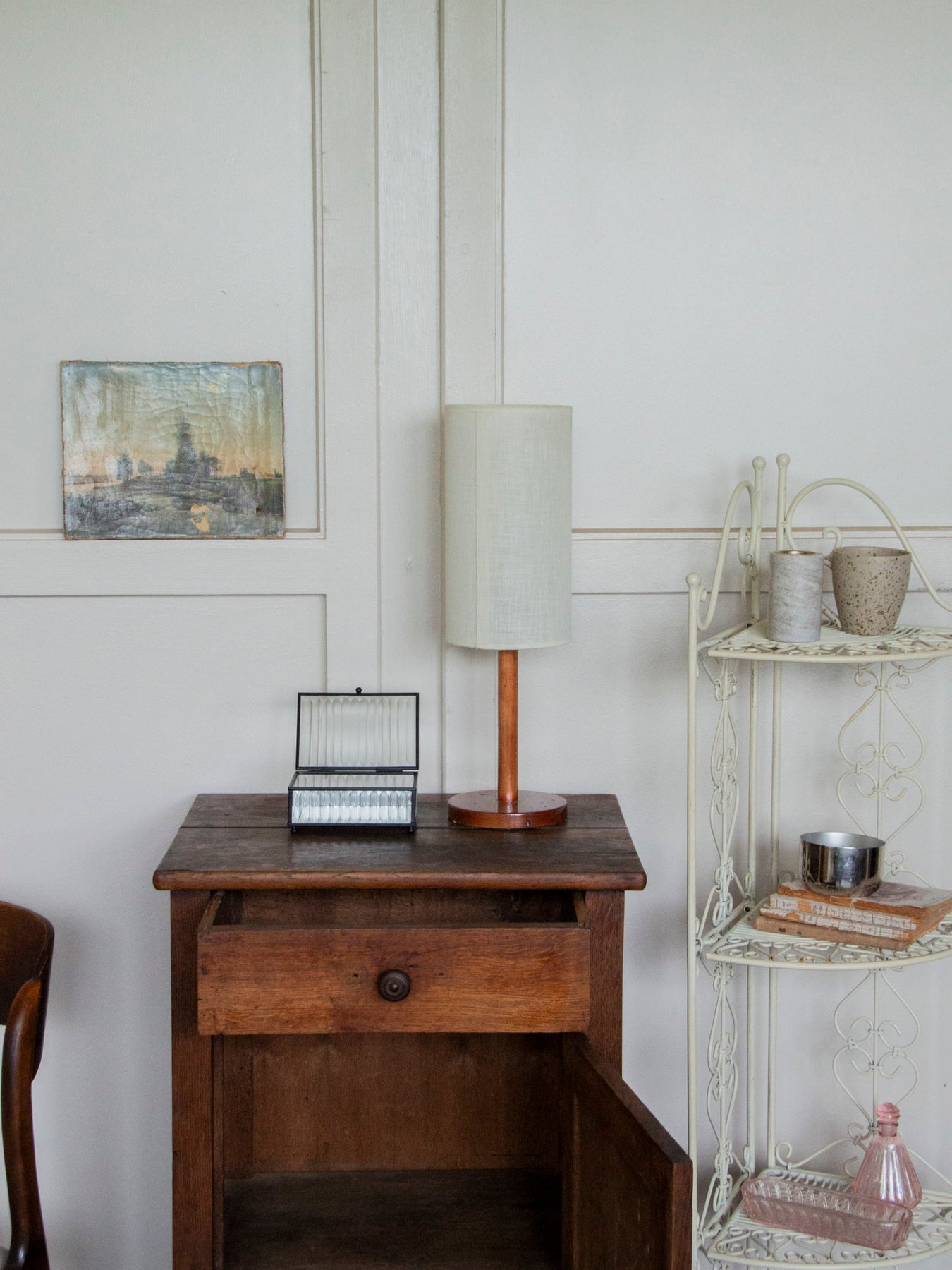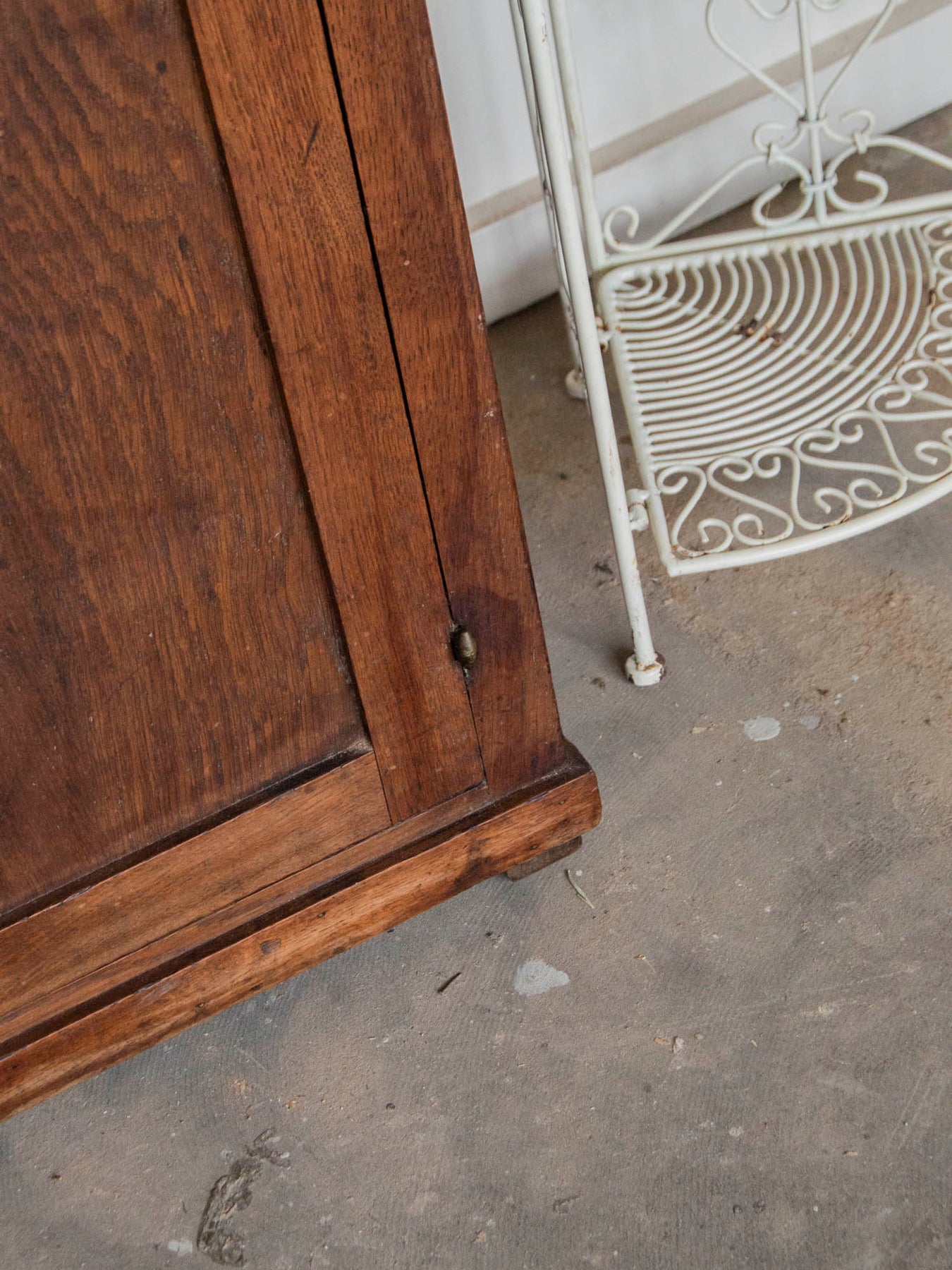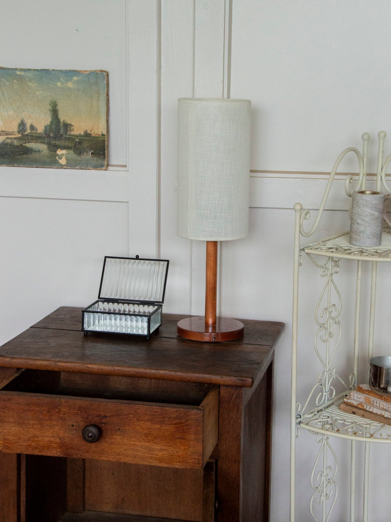 Buffet fin, aux dimensions d’un gros chevet, au style simple et fonctionnel. Il dispose d’un tiroir et d’un placard en bois foncé, offrant un rangement discret et pratique. La poignée ronde en bois apporte une touche naturelle et harmonieuse au meuble. Pièce de seconde main soigneusement sélectionnée, idéale pour compléter un intérieur avec charme et sobriété.