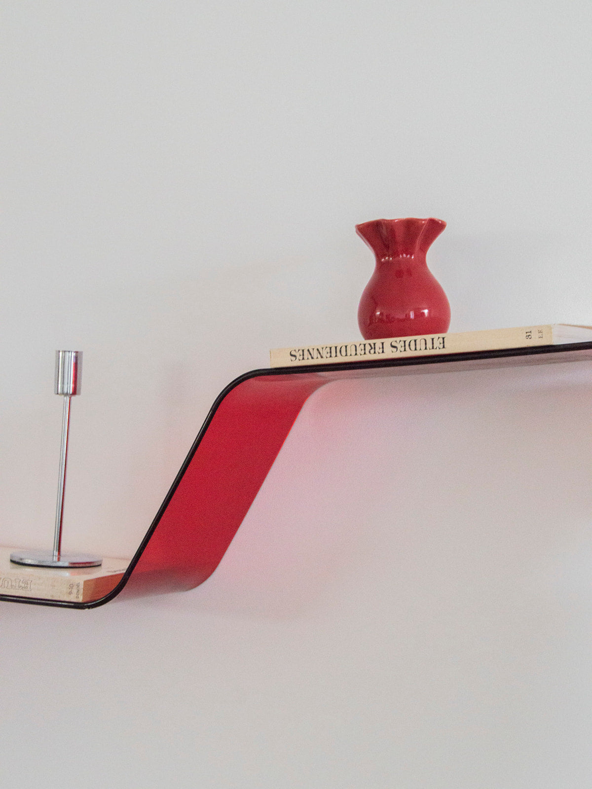 Apportez une touche d'originalité à votre intérieur avec notre étagère murale en plexi rouge. Son design contemporain et sa forme unique feront de cette étagère un véritable point focal dans n'importe quelle pièce. À fixer facilement avec des équerres (non fournies), elle offre une solution élégante et pratique pour afficher vos objets décoratifs. Légère et résistante, cette étagère est idéale pour sublimer vos murs tout en ajoutant une note de couleur.