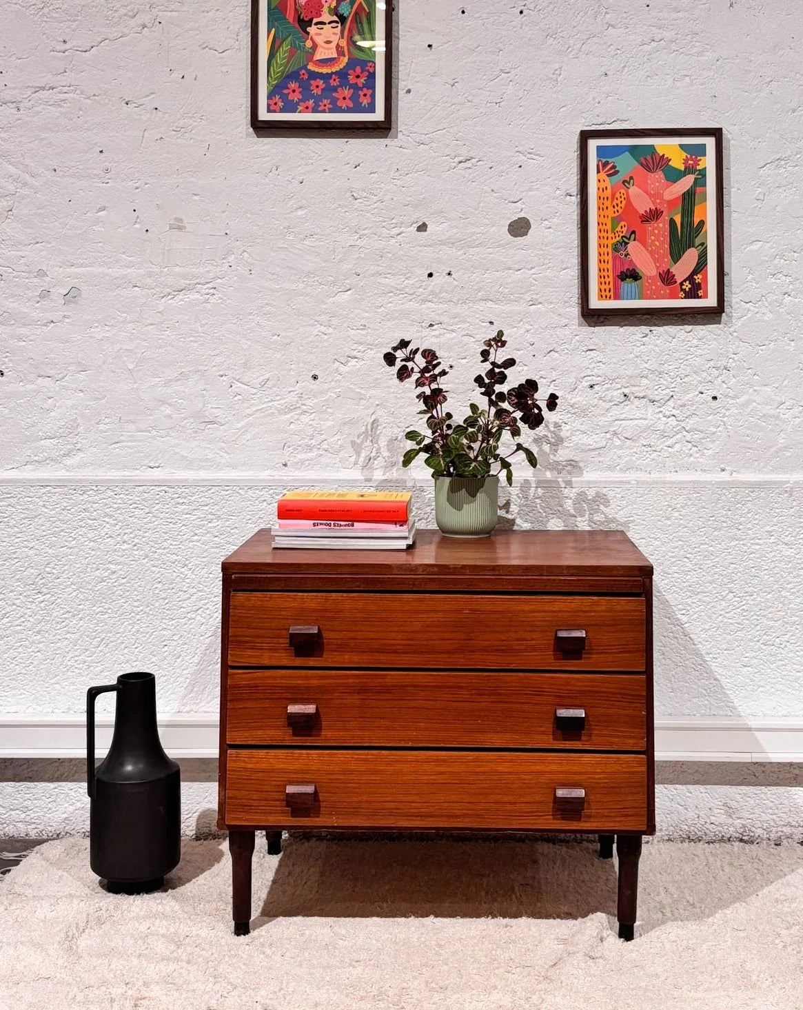 Découvrez cette élégante commode en teck, un véritable atout pour votre intérieur. Avec son plateau coulissant, elle offre à la fois fonctionnalité et style. Ses trois tiroirs vous permettent de garder vos essentiels à portée de main, tandis que ses poignées en bois ajoutent une touche naturelle. Fabriquée en Italie, cette pièce se distingue par ses pieds en bois stables et raffinés. Idéale pour une décoration chaleureuse et moderne.