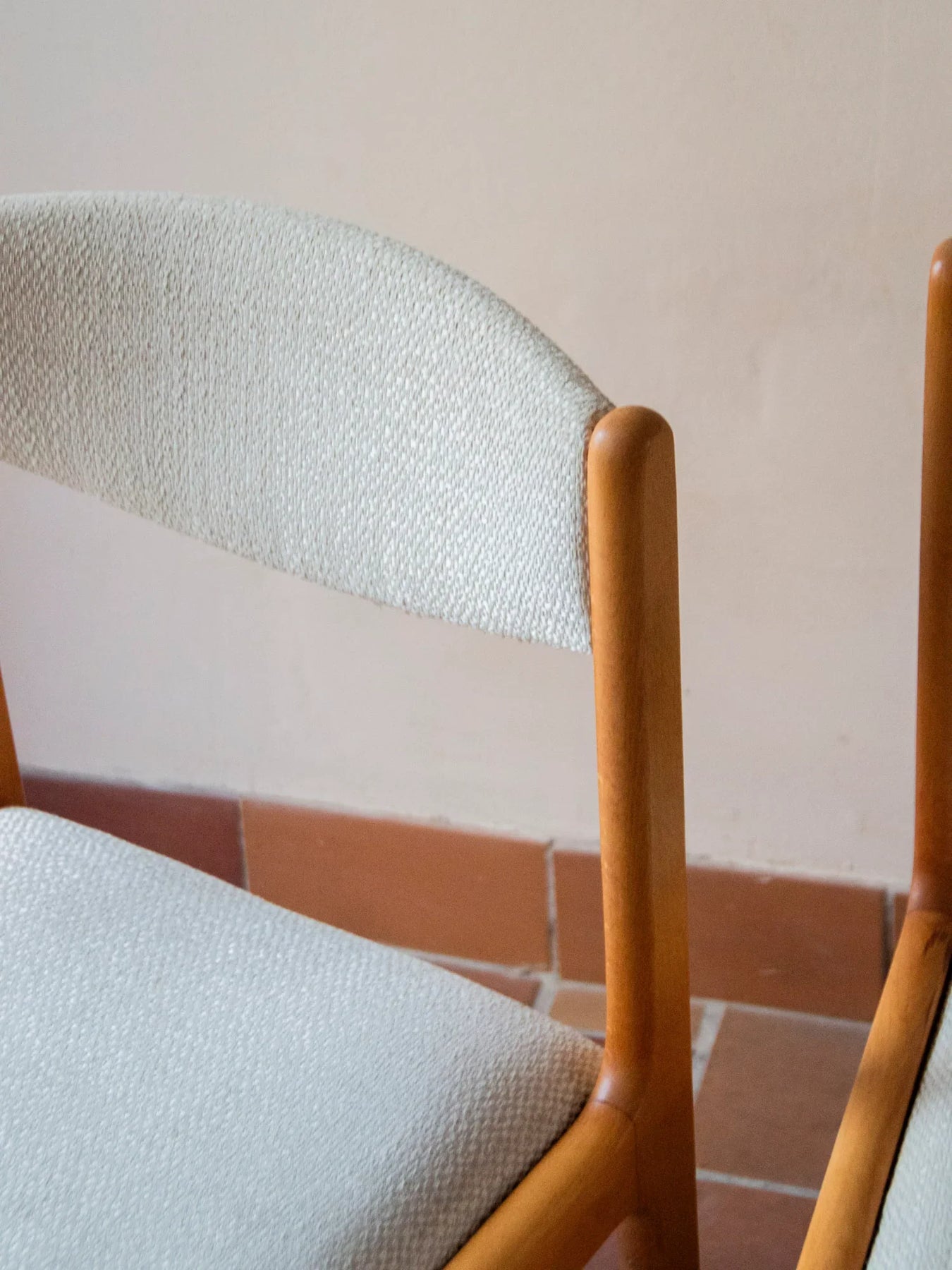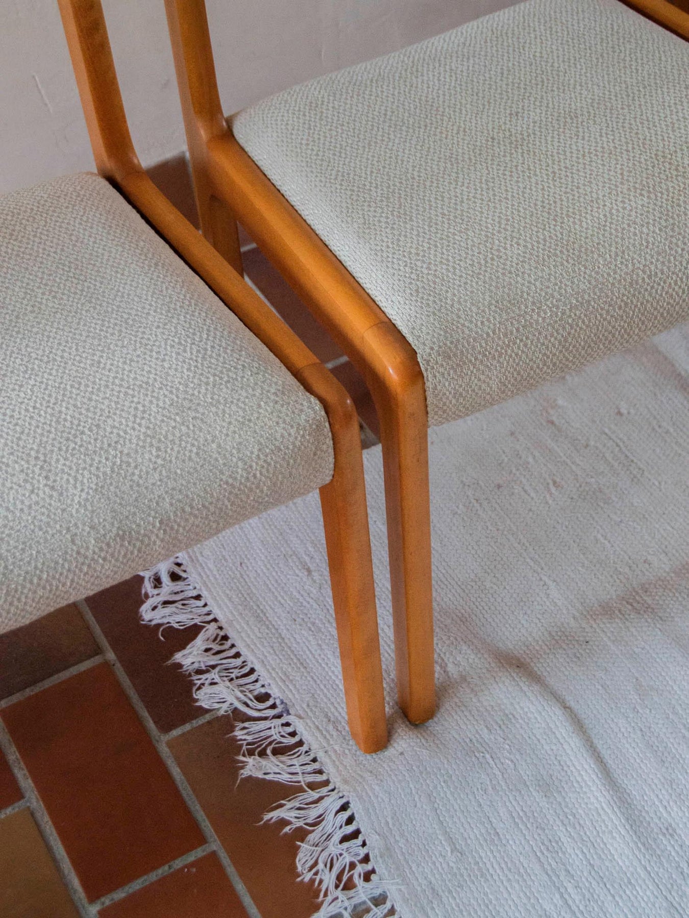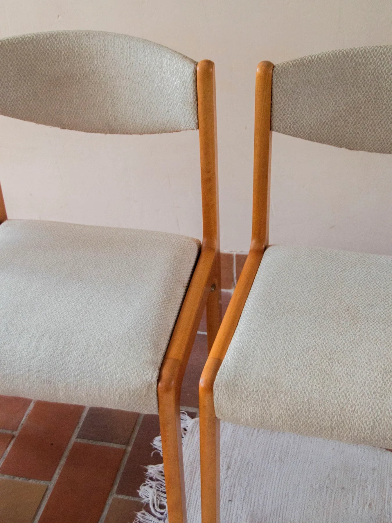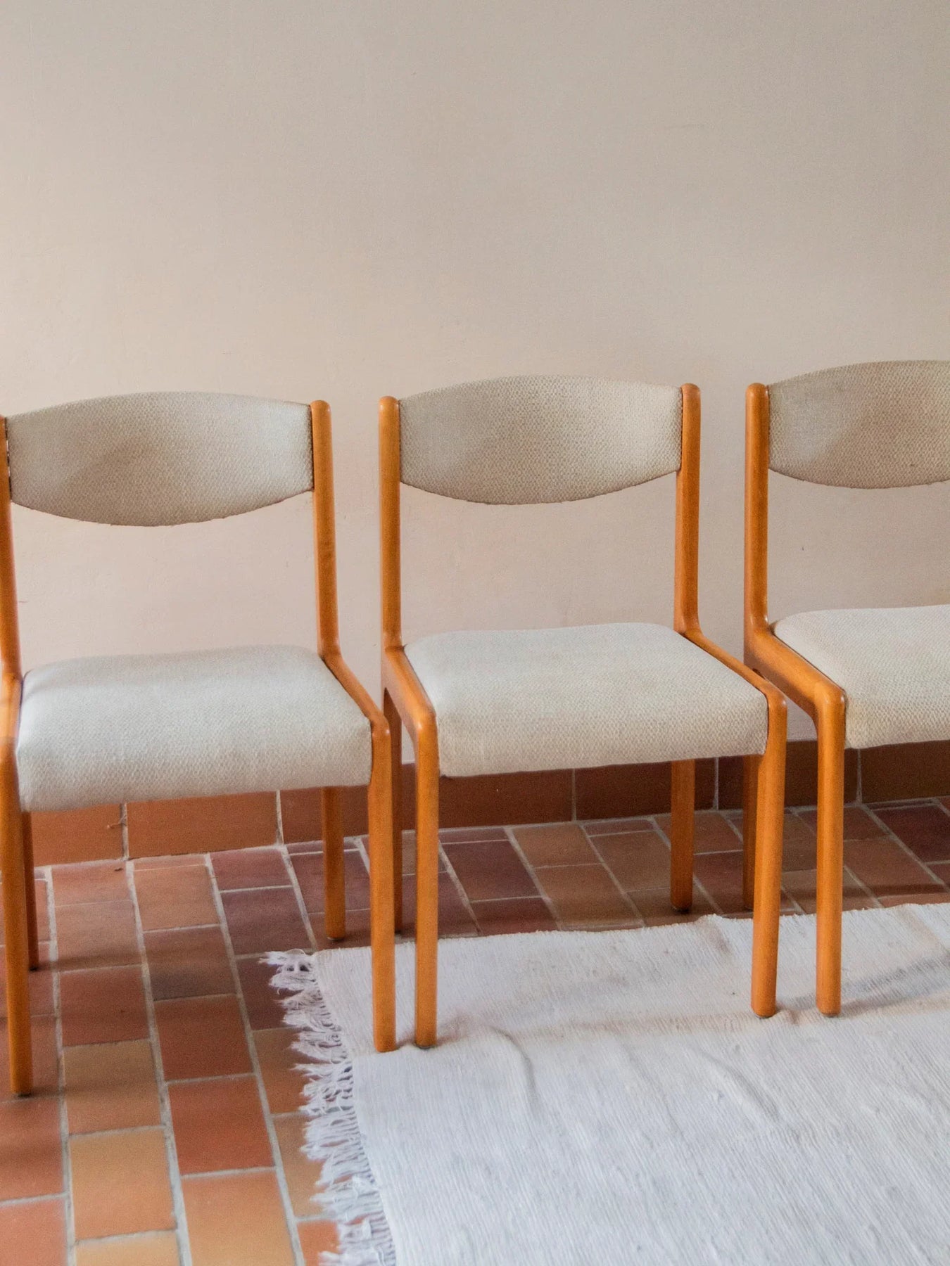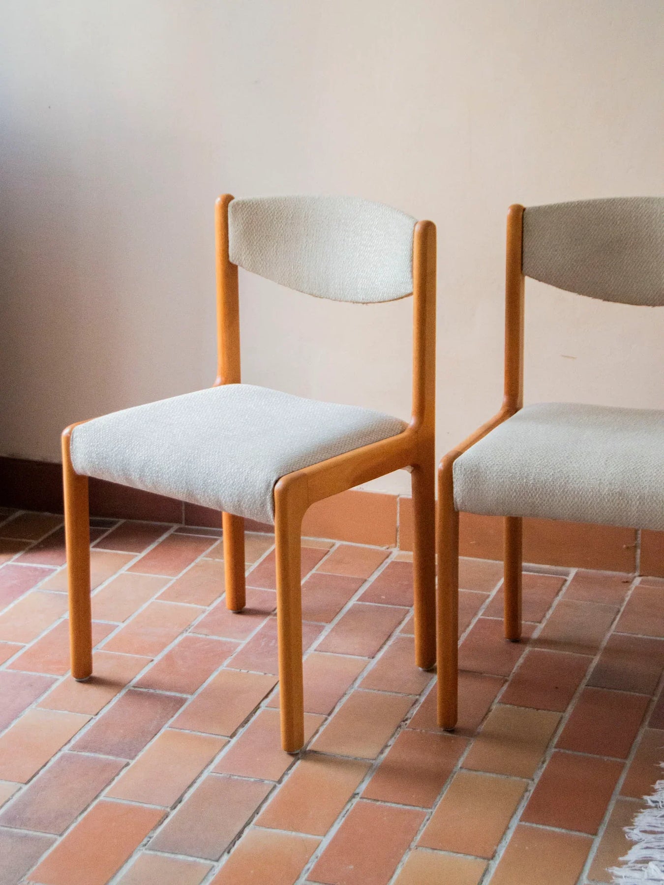 Apportez une touche authentique à votre intérieur avec ce lot de 4 chaises vintage scandinaves en hêtre clair. Leur design minimaliste, allié à une assise en tissu beige, crée un équilibre parfait entre confort et élégance. Idéales pour agrémenter une salle à manger ou une cuisine, ces chaises invitent à la convivialité tout en ajoutant une note chaleureuse à votre décoration. Bien que des traces d'usure soient présentes sur le tissu, elles demeurent en très bel état général et prêtes à embellir votre espace.