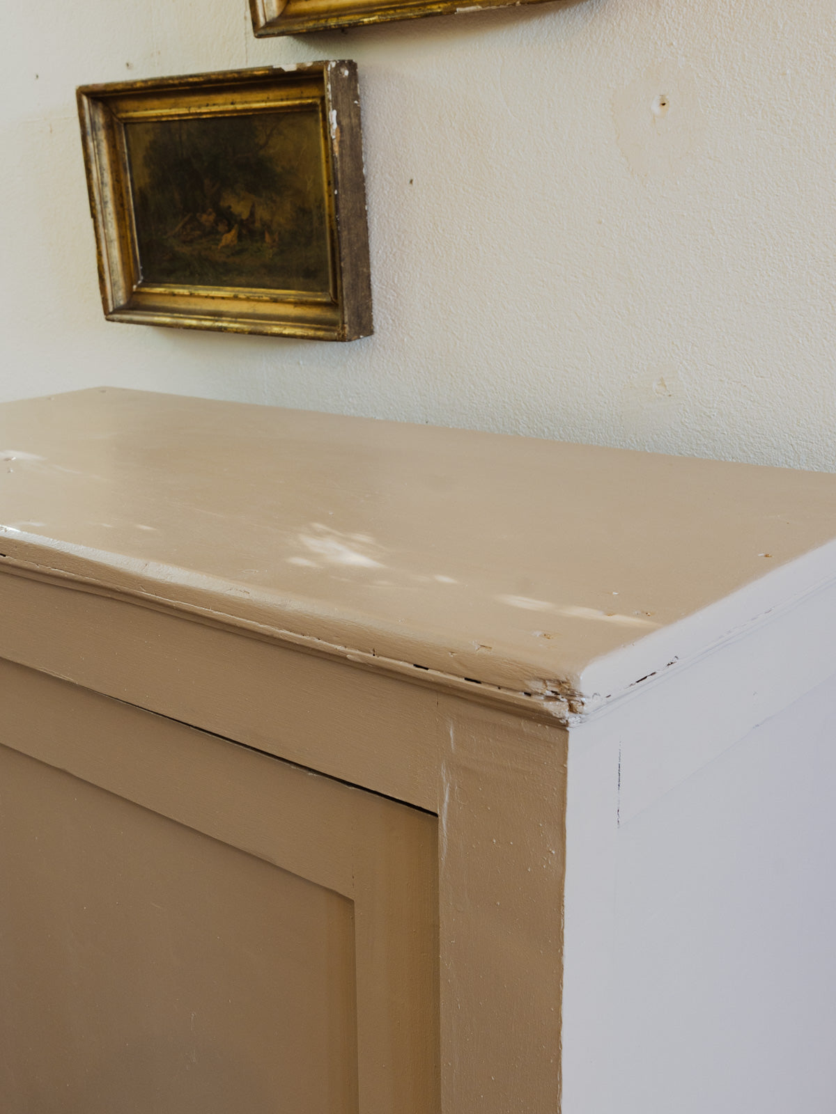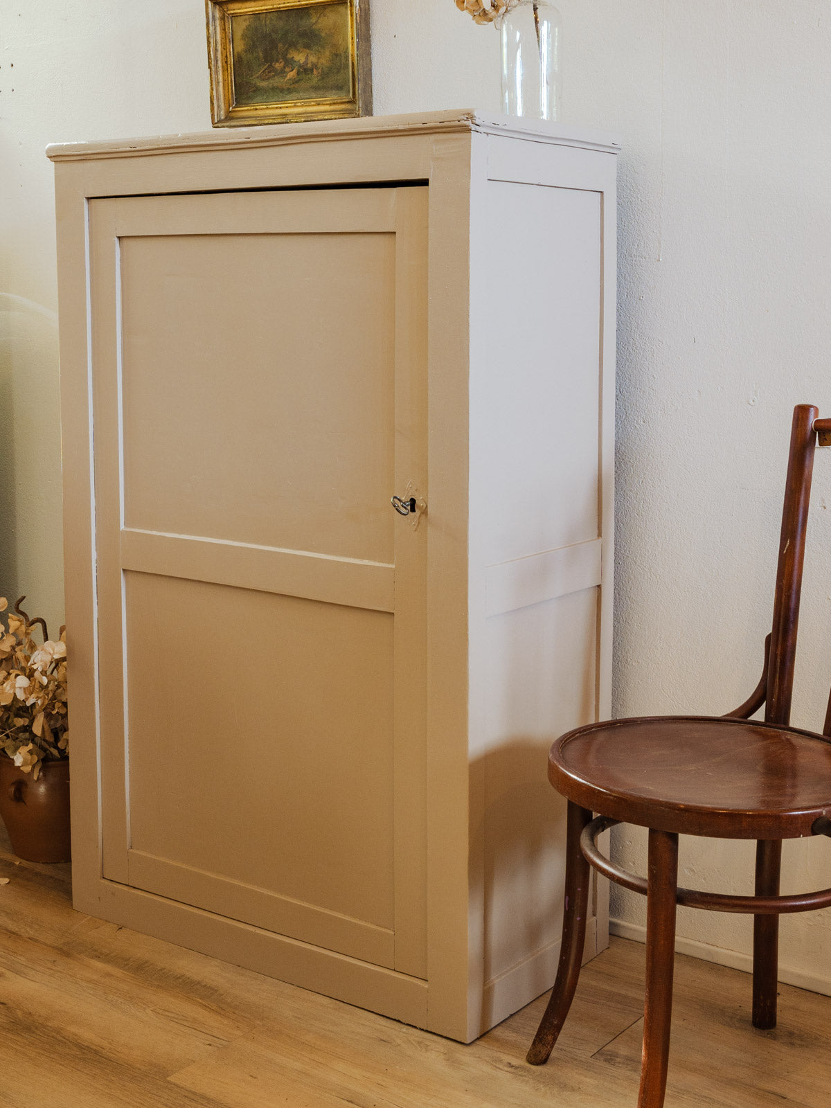Découvrez notre magnifique armoire parisienne ancienne, peinte dans une douce teinte vieux rose beige qui apporte une touche de charme intemporel à votre intérieur. Dotée d'une clé d'origine, elle révèle trois étagères pratiques pour un rangement élégant. Sa porte, légèrement rabotée, laisse entrevoir un jour qui n’enlève rien à son caractère unique, enrichi de traces du temps racontant son histoire. Parfaite pour les amateurs de vintage, cette pièce allie fonctionnalité et esthétique avec raffinement.