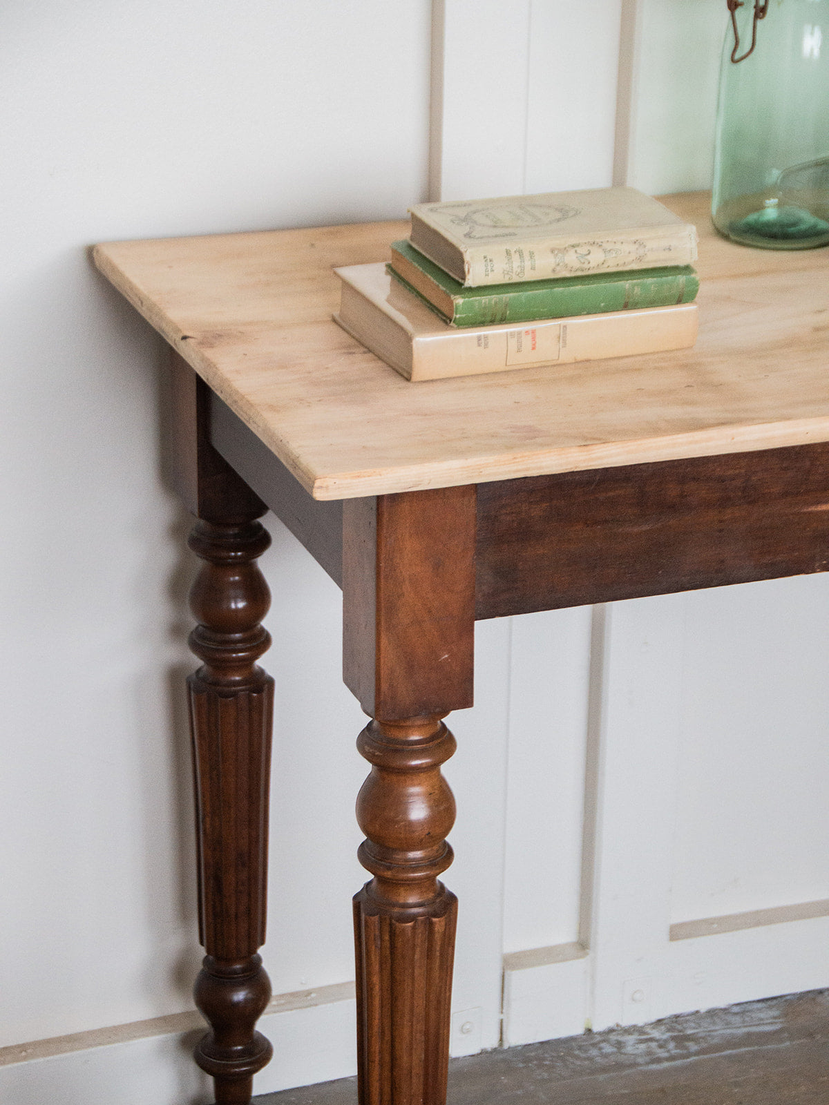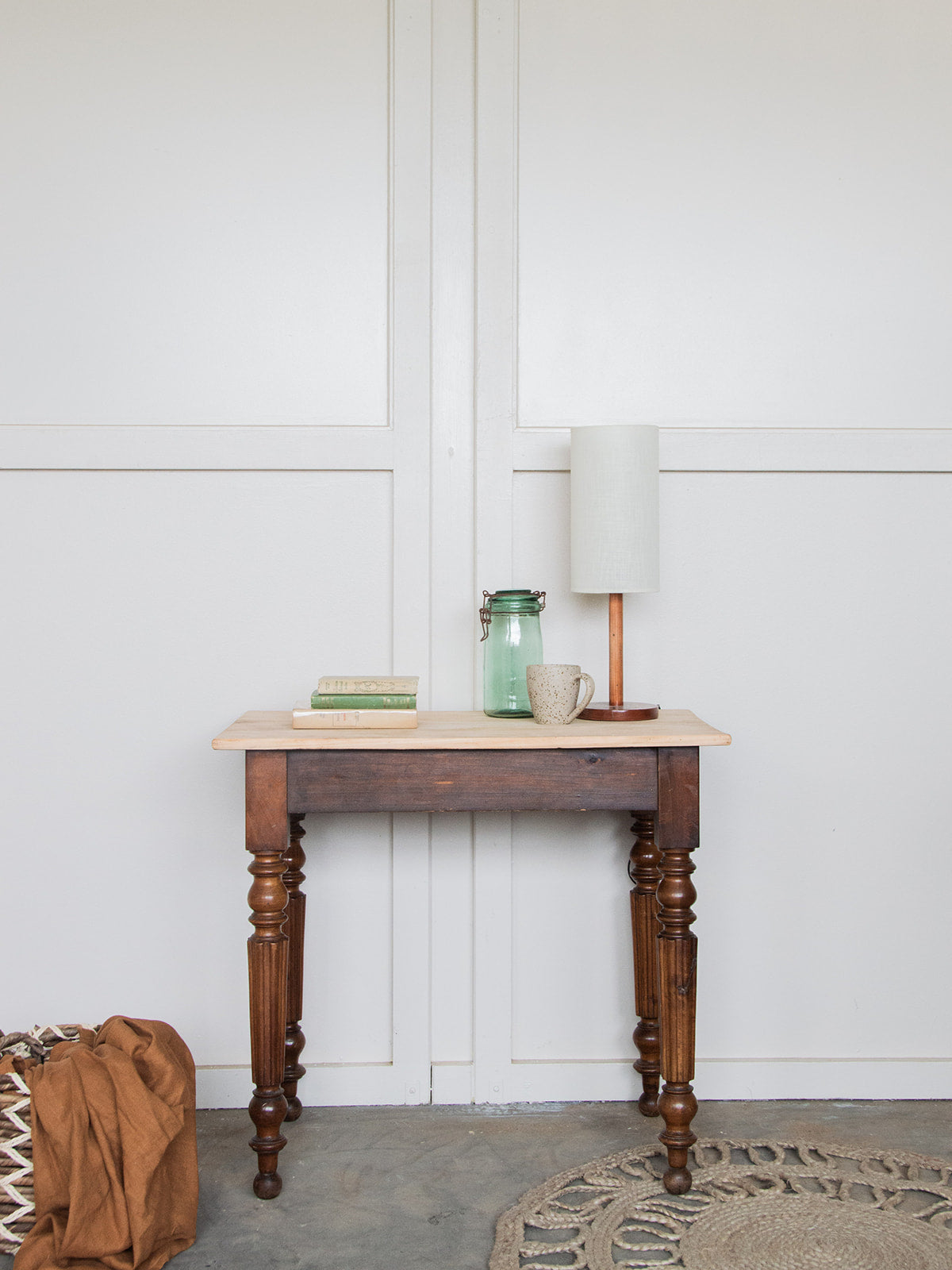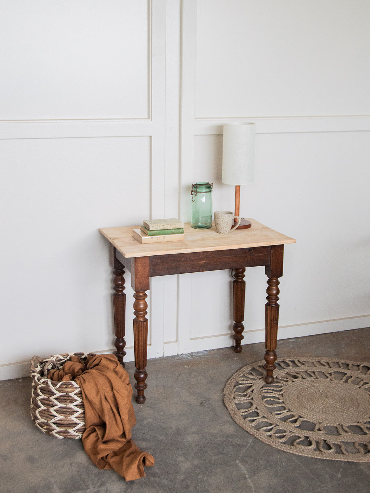 Élégant et polyvalent, ce petit bureau étroit s’intègre parfaitement dans les espaces restreints. Avec son plateau en bois clair et ses pieds sculptés foncés, il apporte une touche de raffinement à votre intérieur. Sans tiroir pour un design épuré, il peut également servir de table d’appoint dans un salon, une entrée ou une chambre !