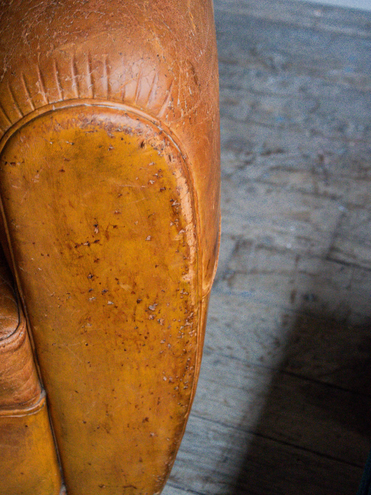 Découvrez ce superbe gros fauteuil en cuir camel, qui allie charme et caractère. Bien que présentant quelques usures sur les accotoirs et dossier, il conserve une allure élégante et chaleureuse. Sa structure massive garantit une excellente durabilité, tandis que les clous à l'arrière ajoutent une touche vintage raffinée. Un pièce idéale pour apporter du style à votre intérieur tout en bénéficiant d'un confort inégalé.