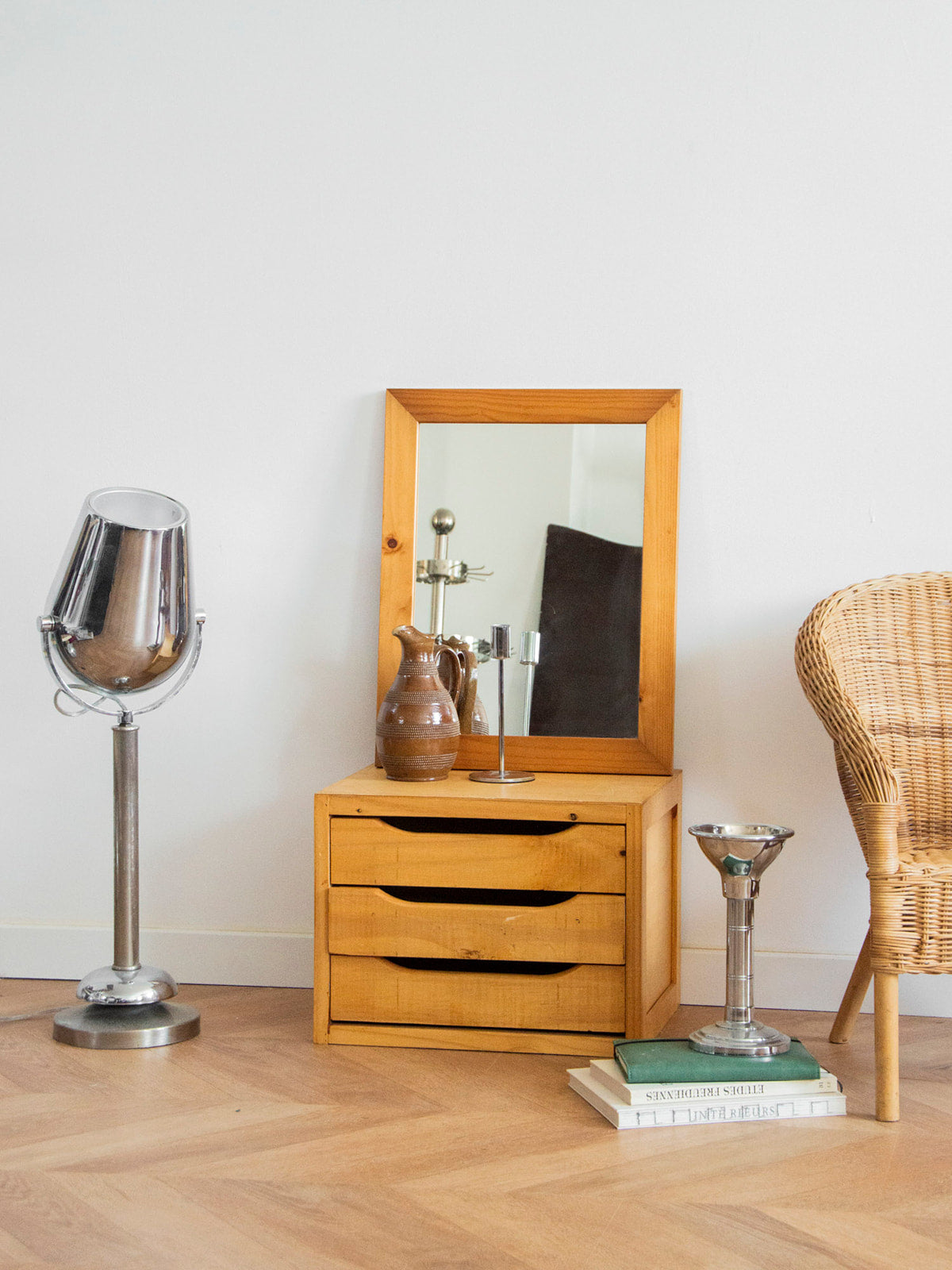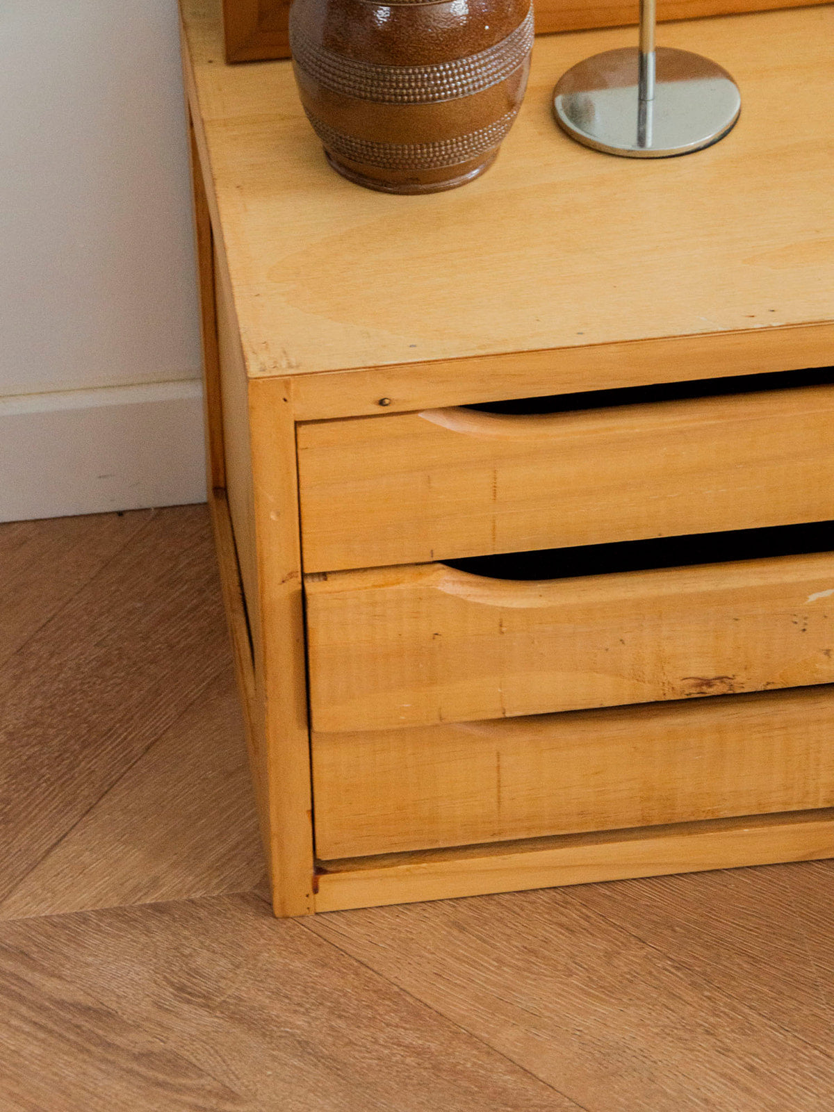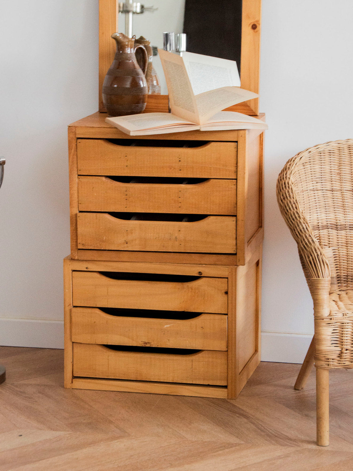 Découvrez le Casieer à 3 tiroirs, une pièce en bois clair empreinte de charme et de caractère. Ses marques du temps lui confèrent une allure authentique et chaleureuse, parfaite pour embellir votre intérieur. Fonctionnel et esthétique, il offre un espace de rangement optimal tout en ajoutant une touche vintage à votre décoration. Laissez-vous séduire par son design intemporel qui saura s’adapter à tous les styles !