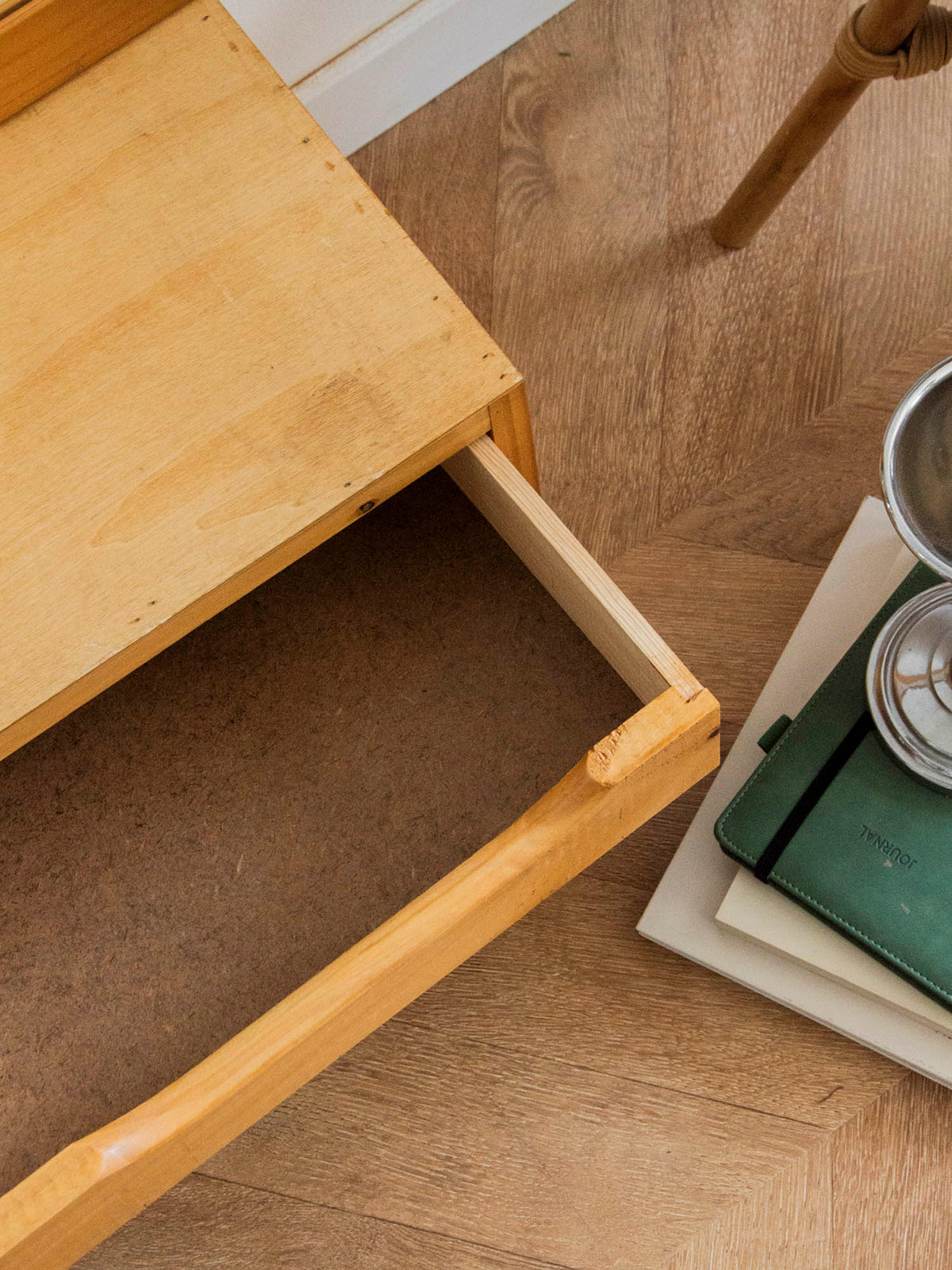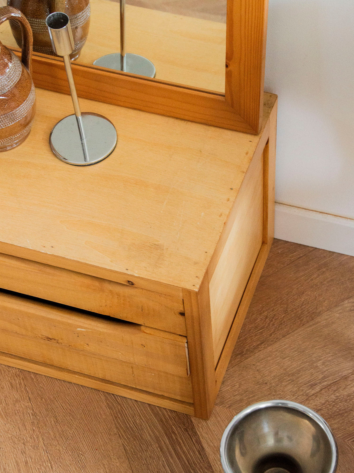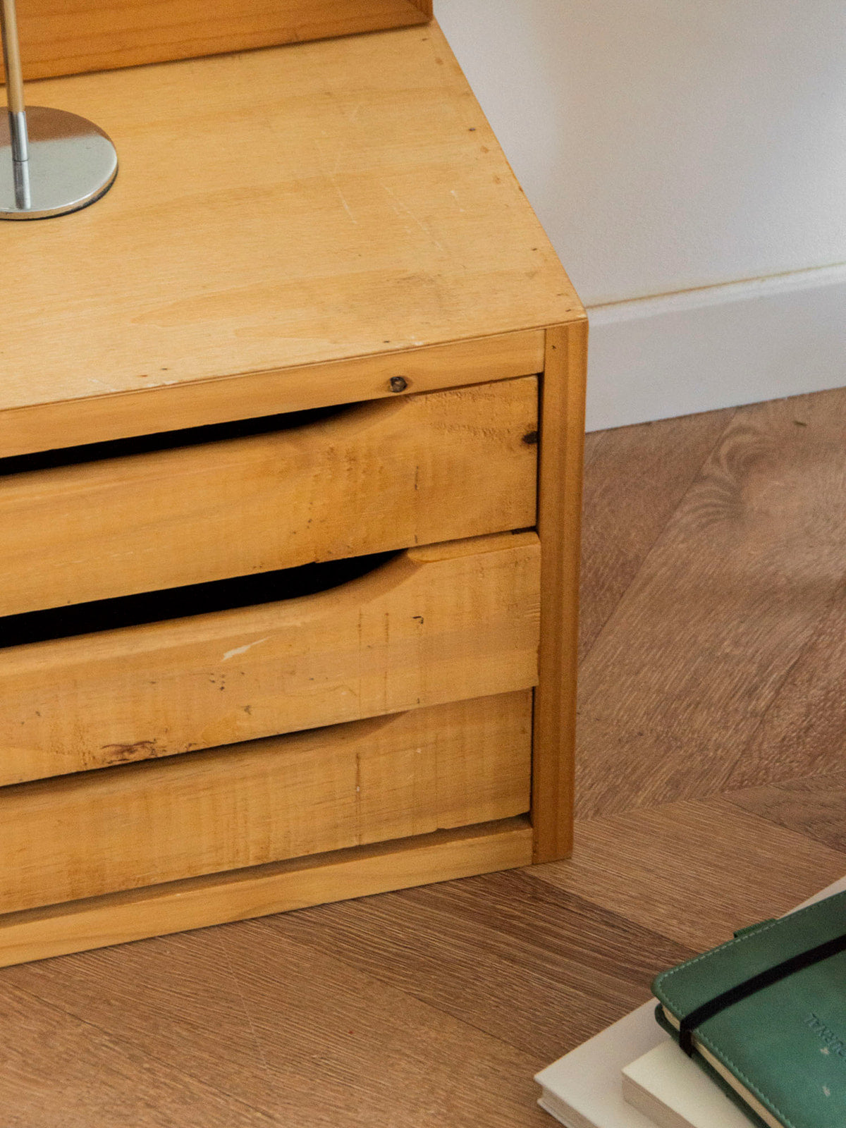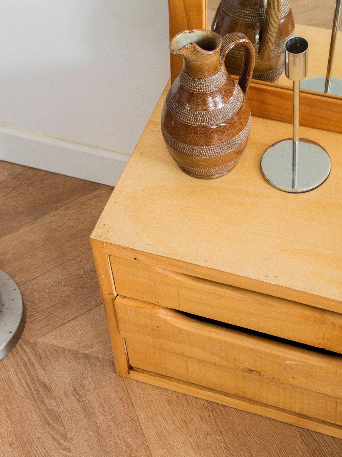 Découvrez le Casieer à 3 tiroirs, une pièce en bois clair empreinte de charme et de caractère. Ses marques du temps lui confèrent une allure authentique et chaleureuse, parfaite pour embellir votre intérieur. Fonctionnel et esthétique, il offre un espace de rangement optimal tout en ajoutant une touche vintage à votre décoration. Laissez-vous séduire par son design intemporel qui saura s’adapter à tous les styles !