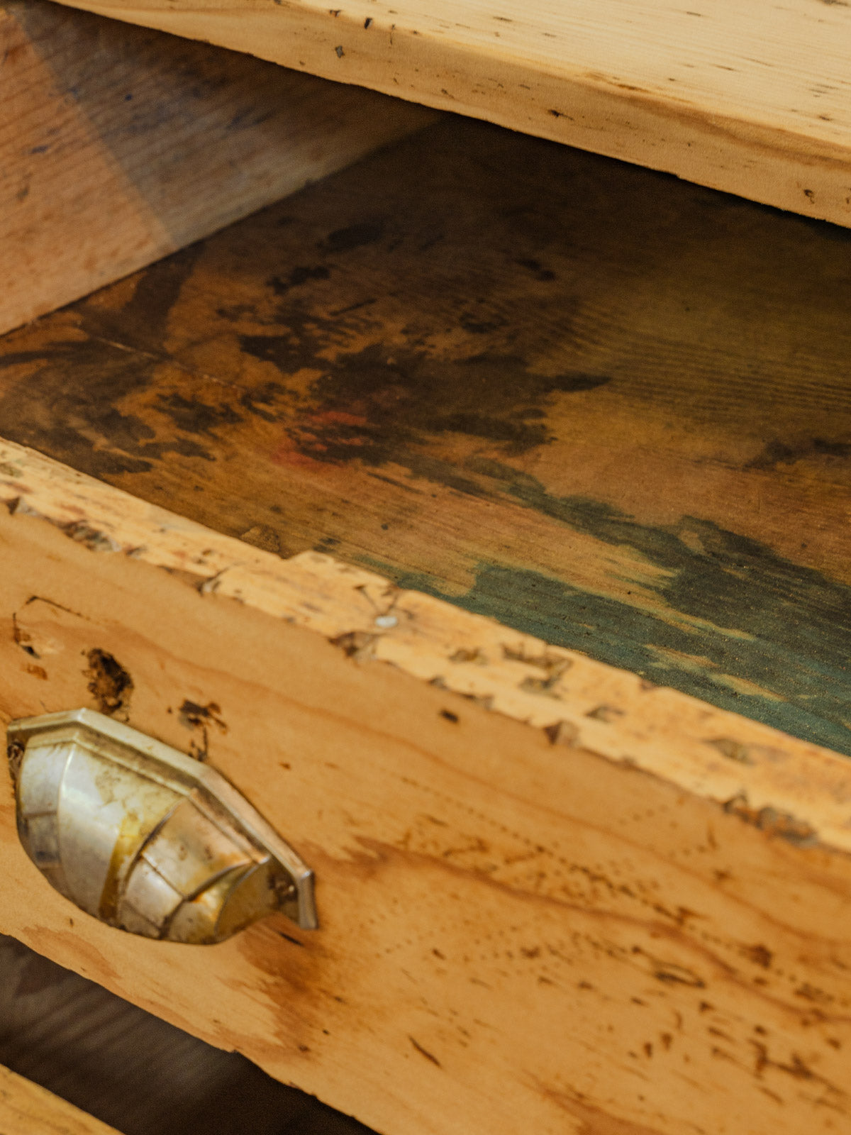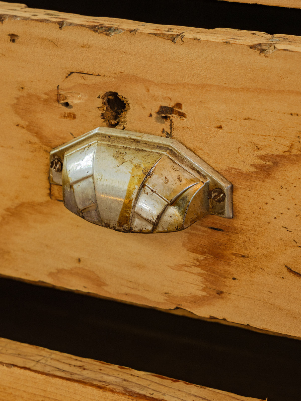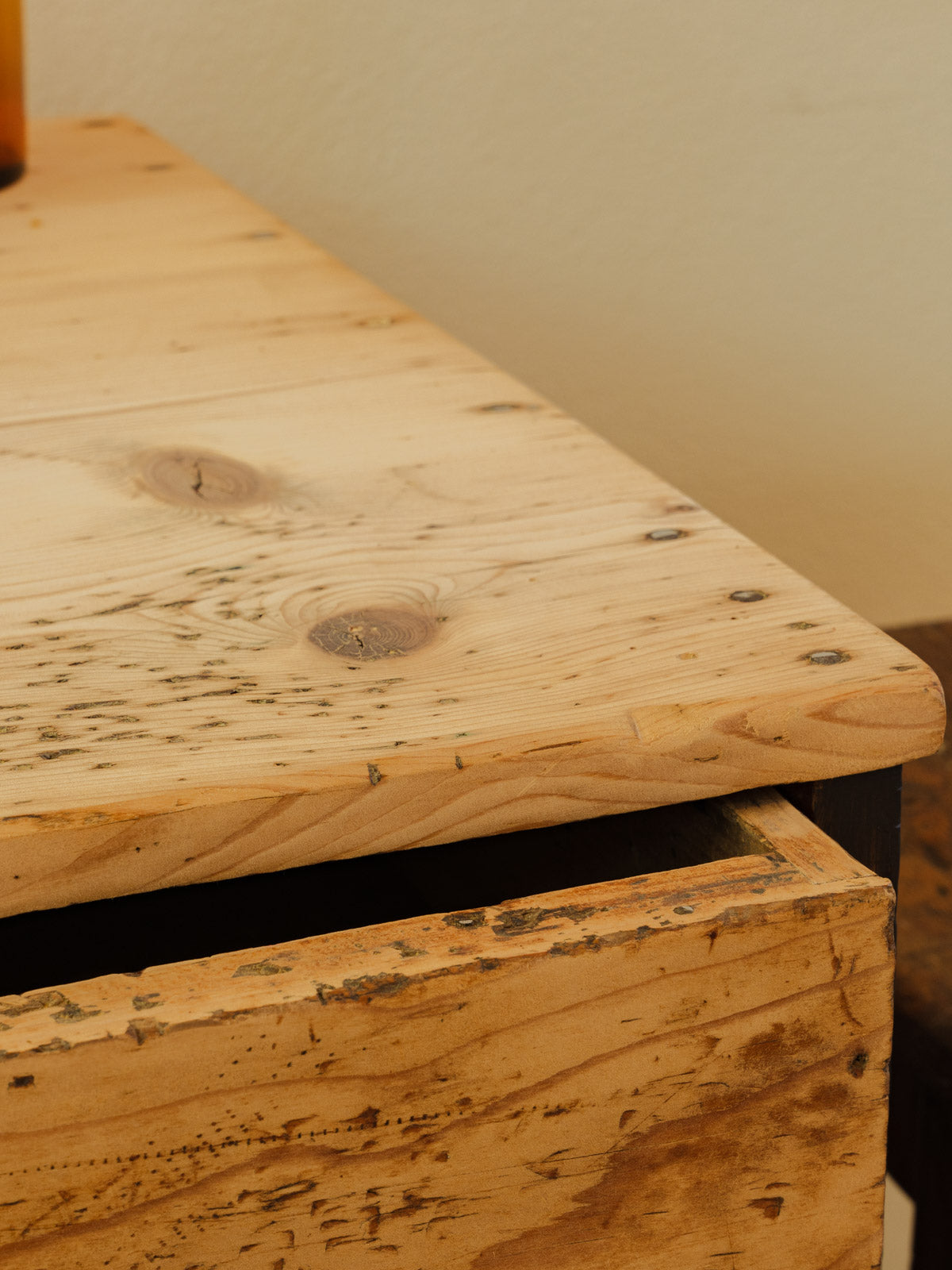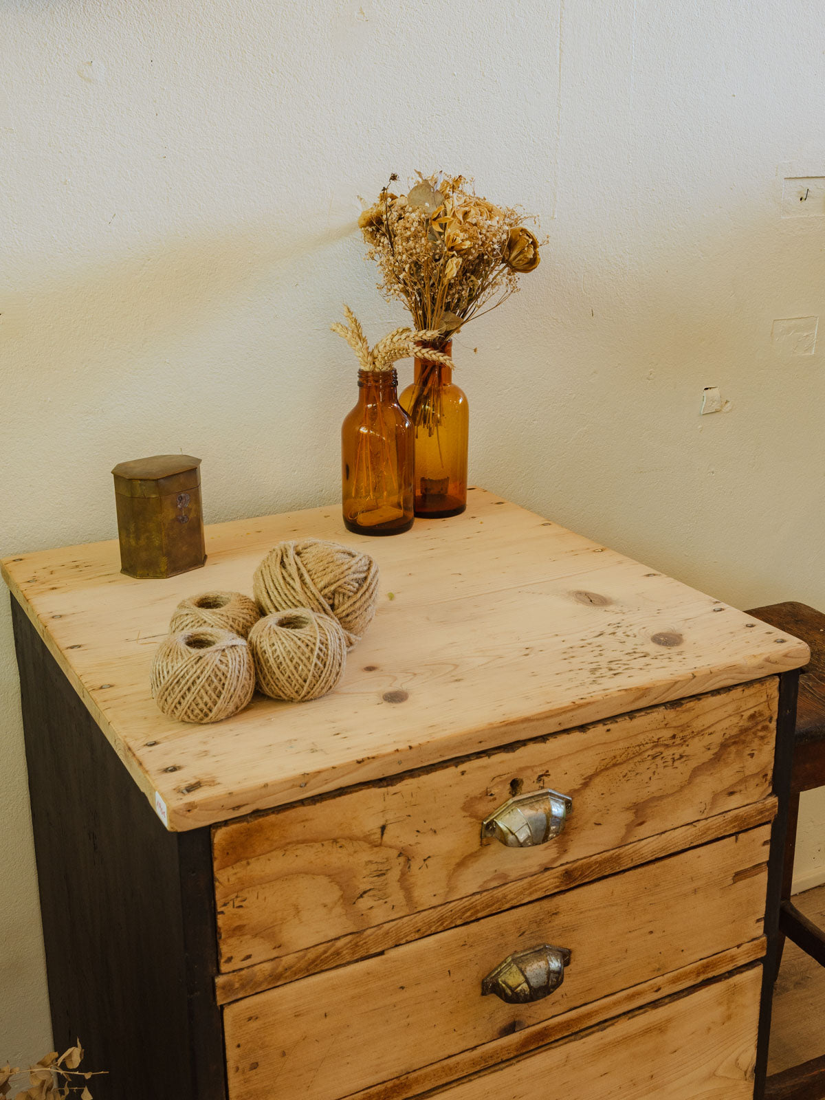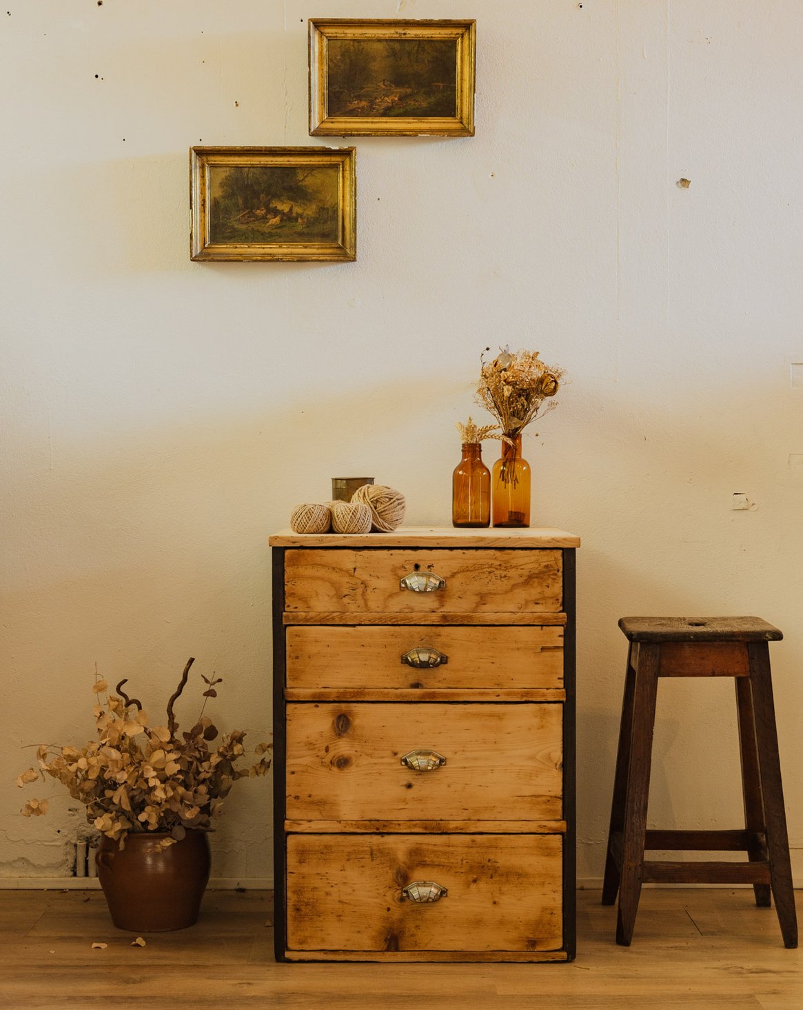 Découvrez cet ancien meuble de rangement d'atelier en pin, idéal pour apporter une touche d'authenticité à votre intérieur. Doté de quatre tiroirs spacieux, il offre un généreux espace de stockage tout en conservant son charme vintage avec ses taches d'usage qui racontent une histoire. Parfait pour une entrée, un bureau ou une cuisine, ce meuble allie fonctionnalité et esthétique rustique. Offrez-lui une seconde vie dans votre décor et laissez-le sublimer vos objets du quotidien.