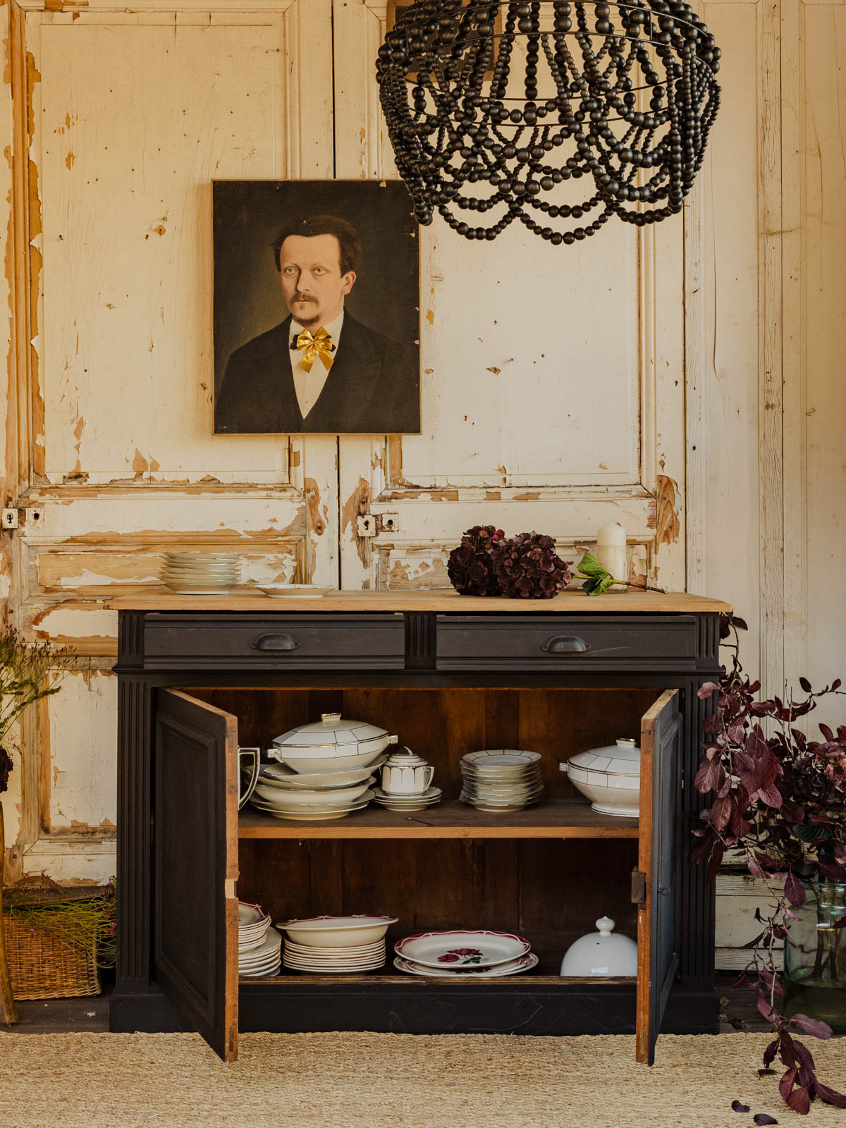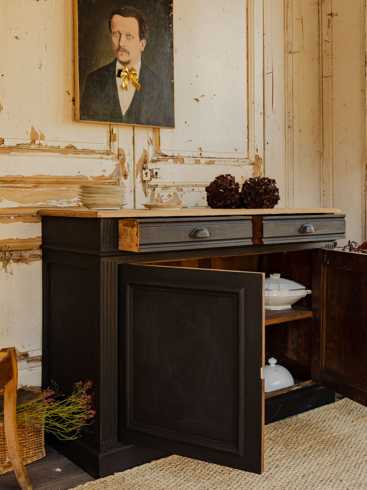 Découvrez notre buffet vintage en merisier, au charme authentique. Peint en noir, il se distingue par ses lignes épurées et son plateau brut qui ajoutent une touche de caractère à votre intérieur. Doté de deux tiroirs et de deux portes, ce meuble fonctionnel offre un espace de rangement optimal, complété par une étagère intérieure. Livré avec sa clé, il rappelle le style classique tout en s'intégrant parfaitement dans une décoration moderne. Un choix parfait pour allier esthétique et praticité !
