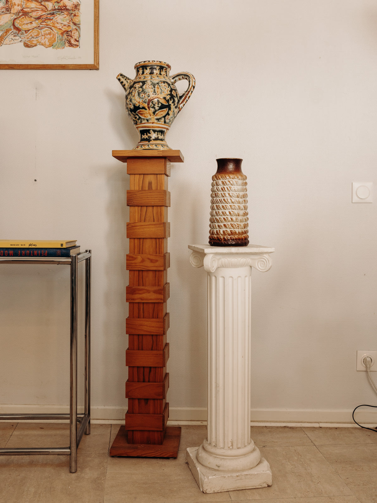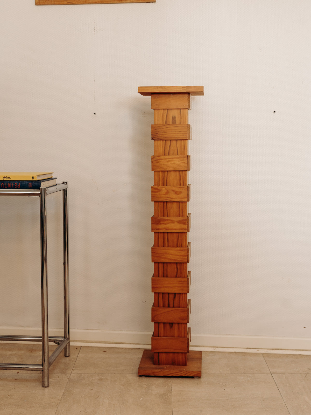 Apportez une touche rétro à votre intérieur avec cette colonne porte-plantes en bois massif au style vintage. Son design graphique et ses blocs superposés créent un jeu de volumes captivant, idéal pour mettre en valeur une plante, une lampe ou une sculpture. Avec sa silhouette élancée et une belle patine du bois, cet élément décoratif des années 70 se marie parfaitement avec tous les styles. Découvrez également d'autres modèles pour jouer sur les hauteurs et sublimer votre décoration.