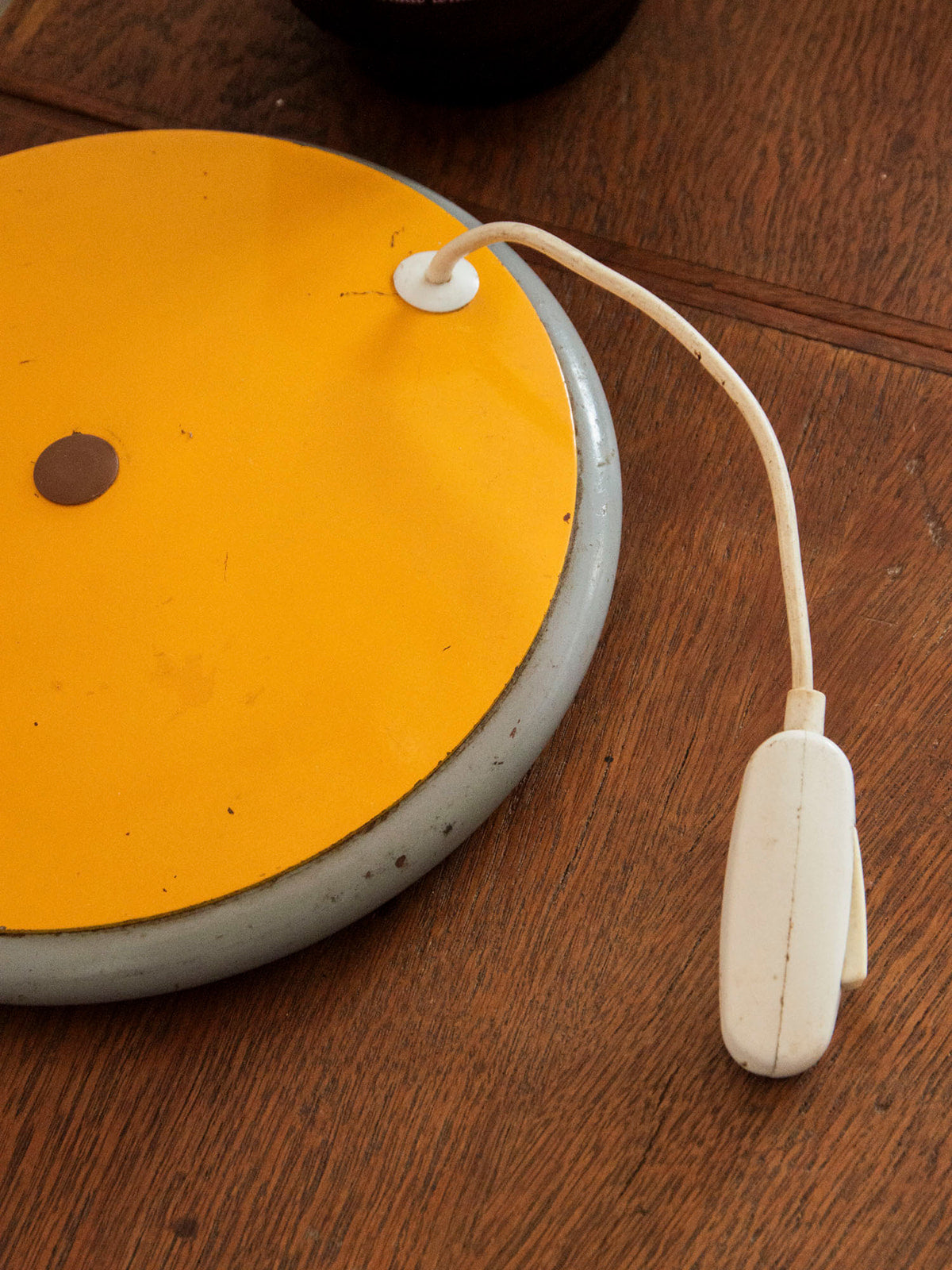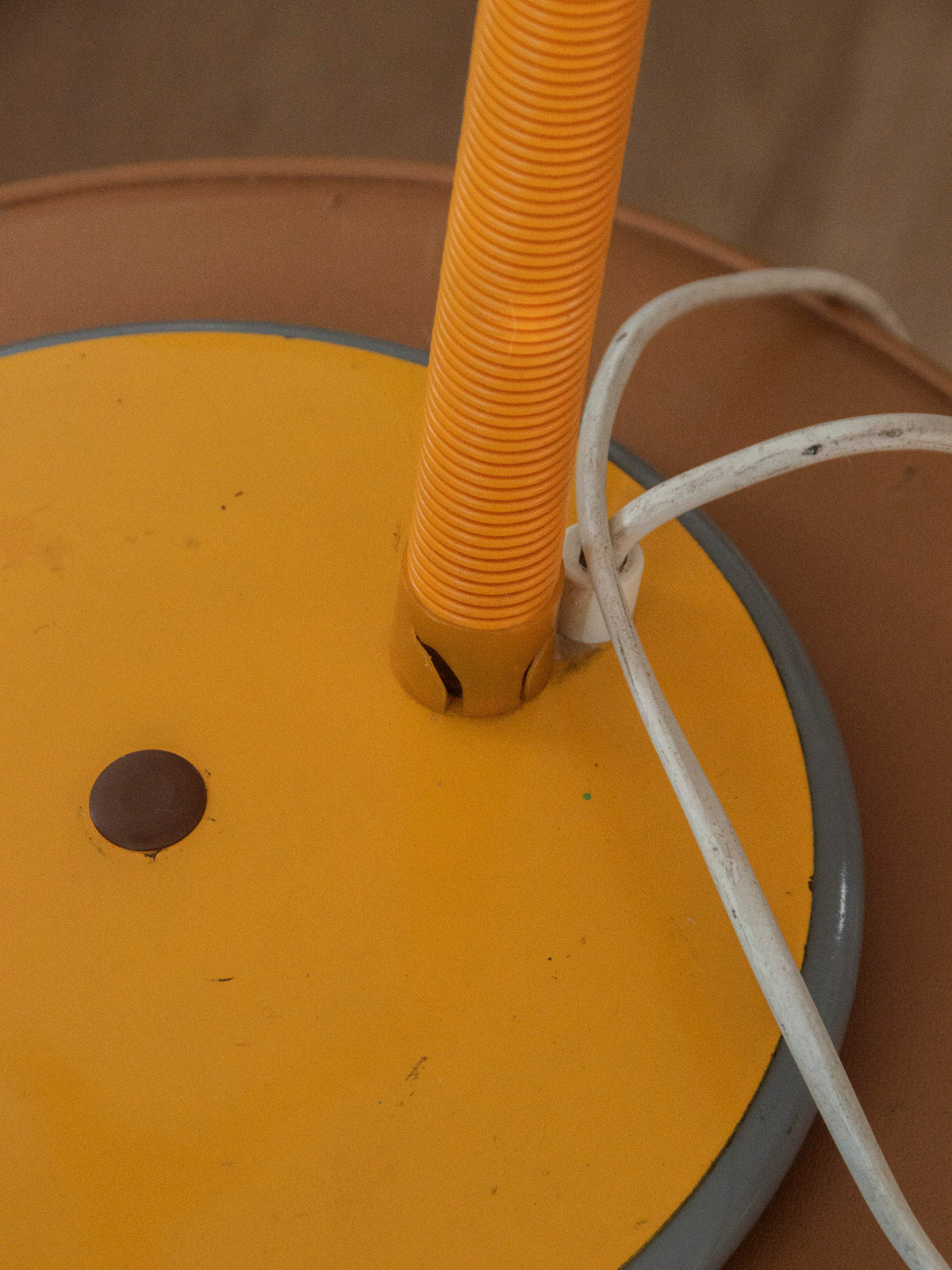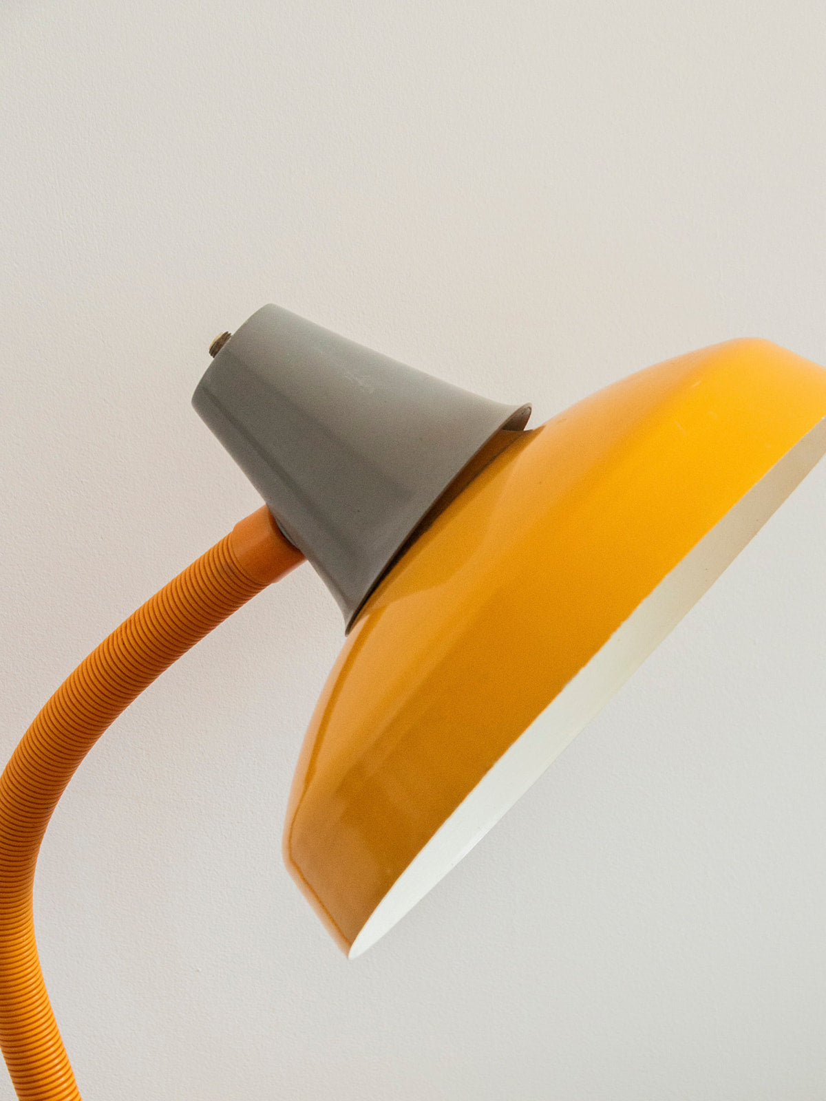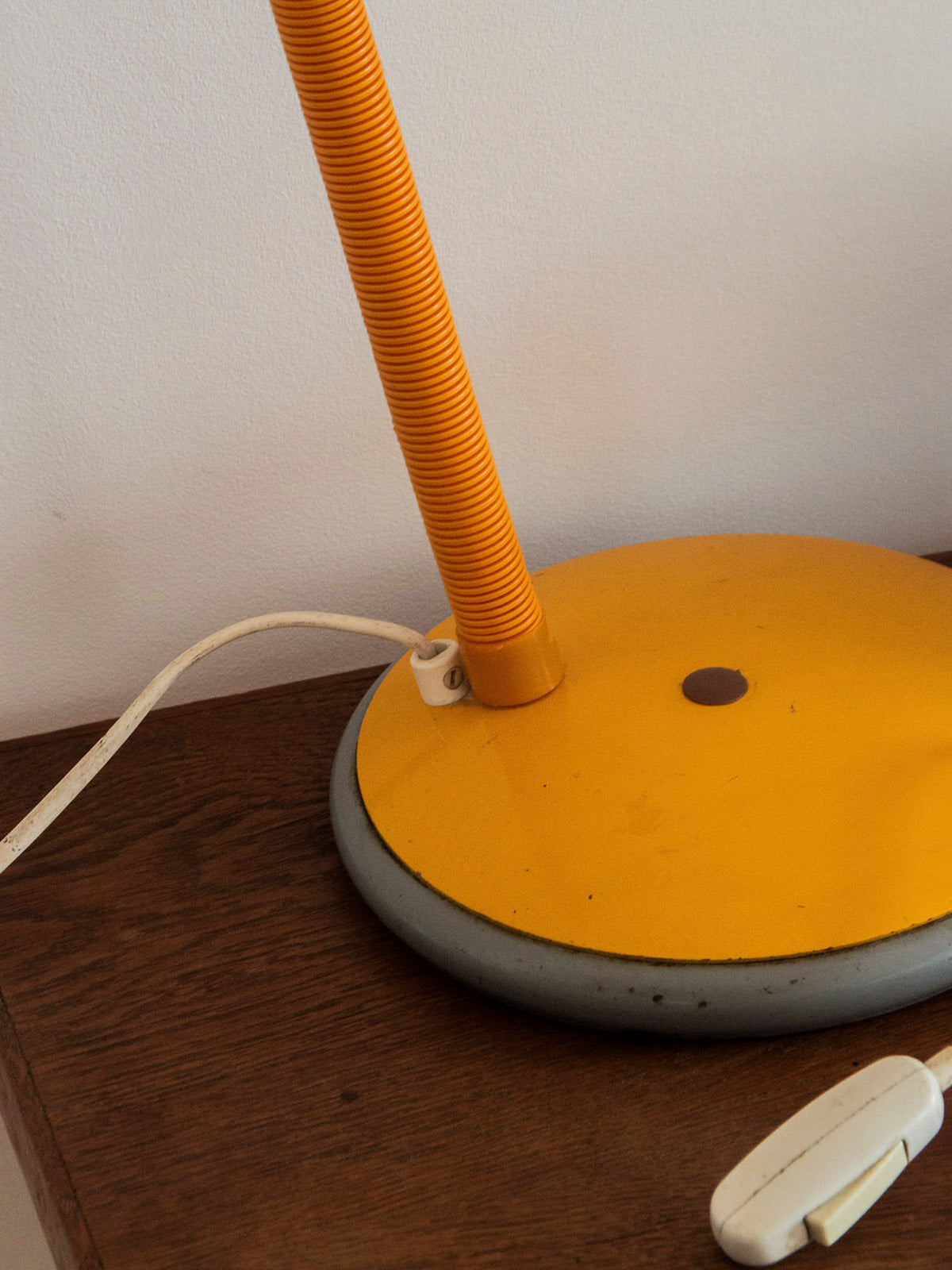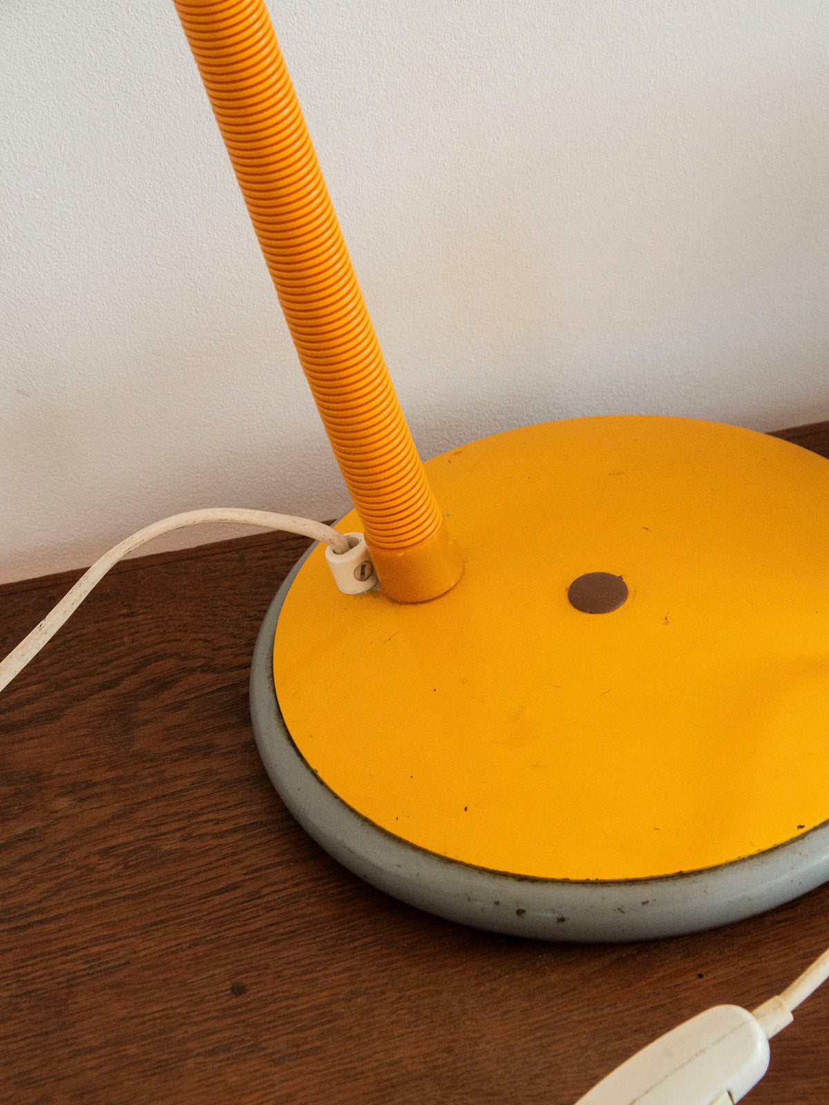 Ajoutez une touche de charme rétro à votre décoration avec cette lampe jaune en métal, dotée d'un pied rond articulable. Son interrupteur innovant offre une facilité d'utilisation, tandis que les marques du temps sur le pied en métal témoignent de son histoire unique. Bien qu'elle présente quelques imperfections, telles que des marques sur le pied et un accro visible sur la photo, elle reste un éclairage fonctionnel et élégant, idéal pour apporter une ambiance chaleureuse à n'importe quelle pièce. Branchez-la et laissez-la illuminer vos soirées !