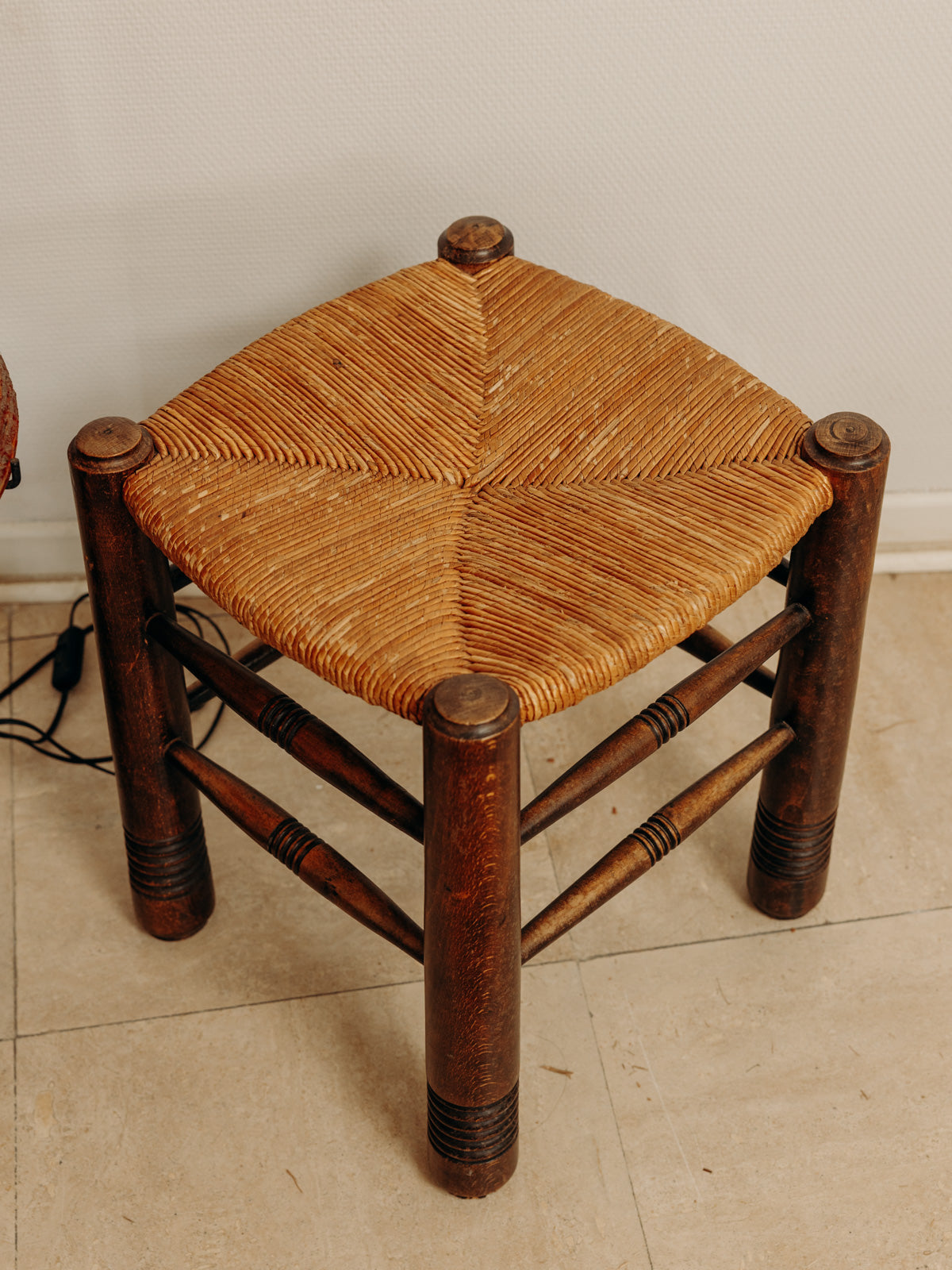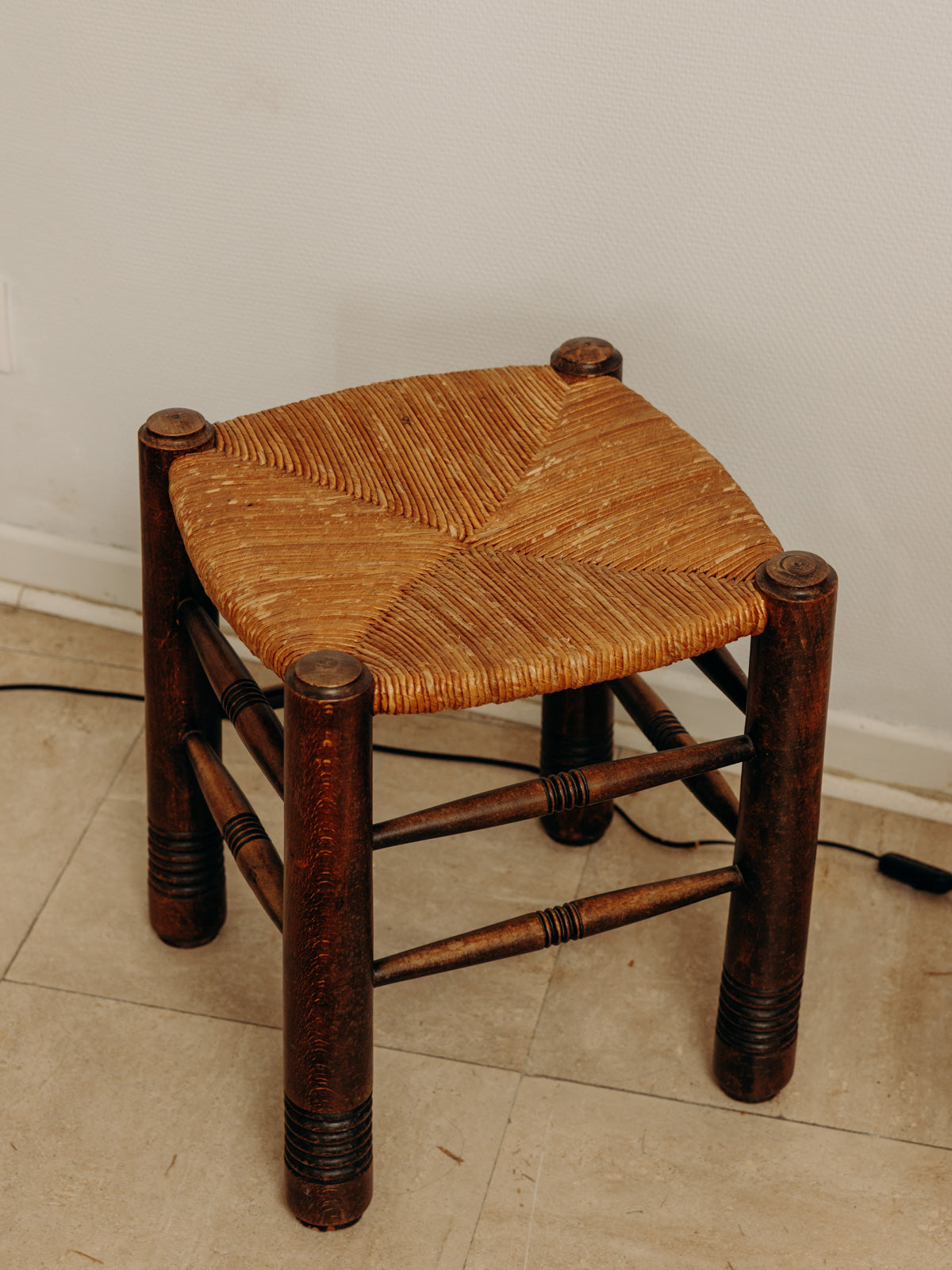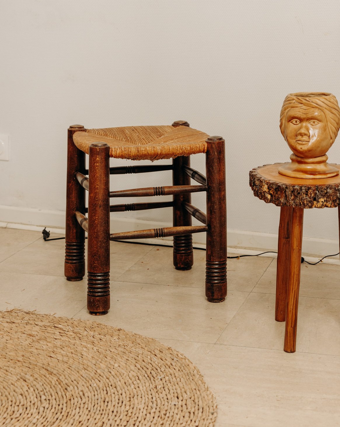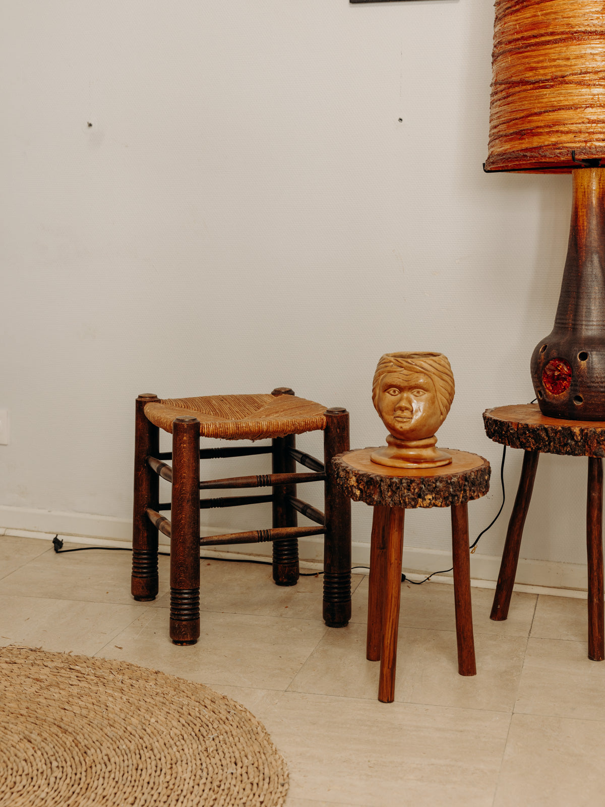 Découvrez ce superbe tabouret vintage en paille et bois des années 1970, qui allie authenticité et élégance. Fabriqué en bois massif avec une assise en paille tressée à la main, il apporte une touche de charme rustique à votre intérieur. Idéal comme assise d'appoint, chevet ou support déco, ce tabouret s'intègre parfaitement dans un style campagne chic, bohème ou wabi-sabi. Avec sa belle patine et sa structure solide, il est dans un bon état vintage, prêt à sublimer votre décoration.