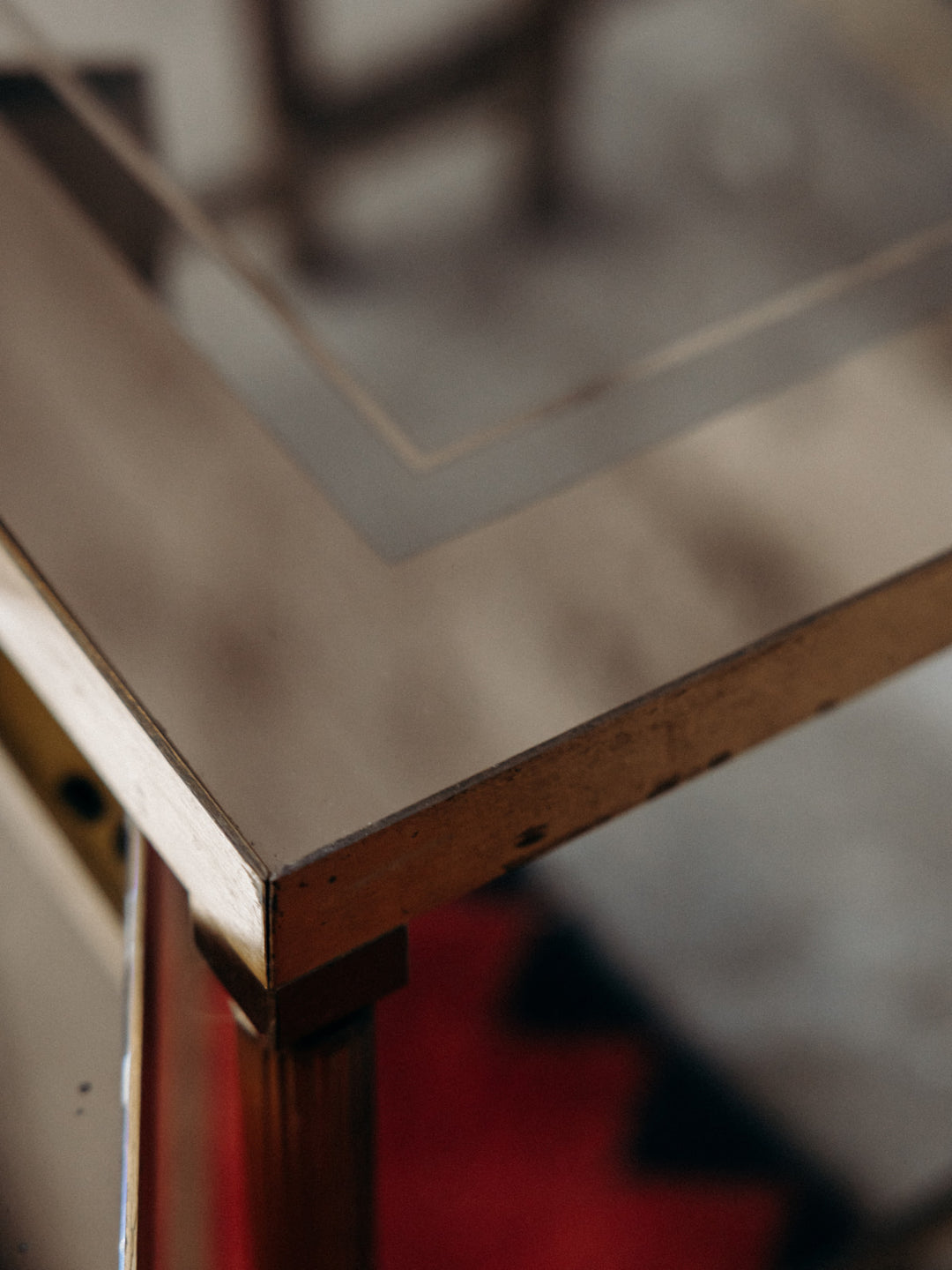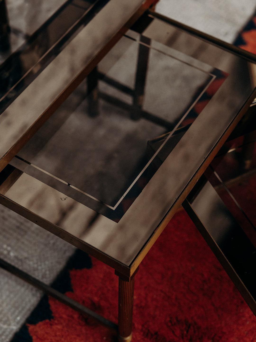 Découvrez ce joli trio de tables gigognes au style raffiné, associant laiton doré et verre fumé pour une touche élégante et vintage. Leurs pieds ronds et les barres centrales apportent équilibre et légèreté à l’ensemble. Idéales pour moduler l’espace dans un salon, elles se rangent facilement les unes sous les autres. Elles présentent quelques traces d’usure discrètes, cohérentes avec leur âge. Une pièce pratique et décorative au charme intemporel.