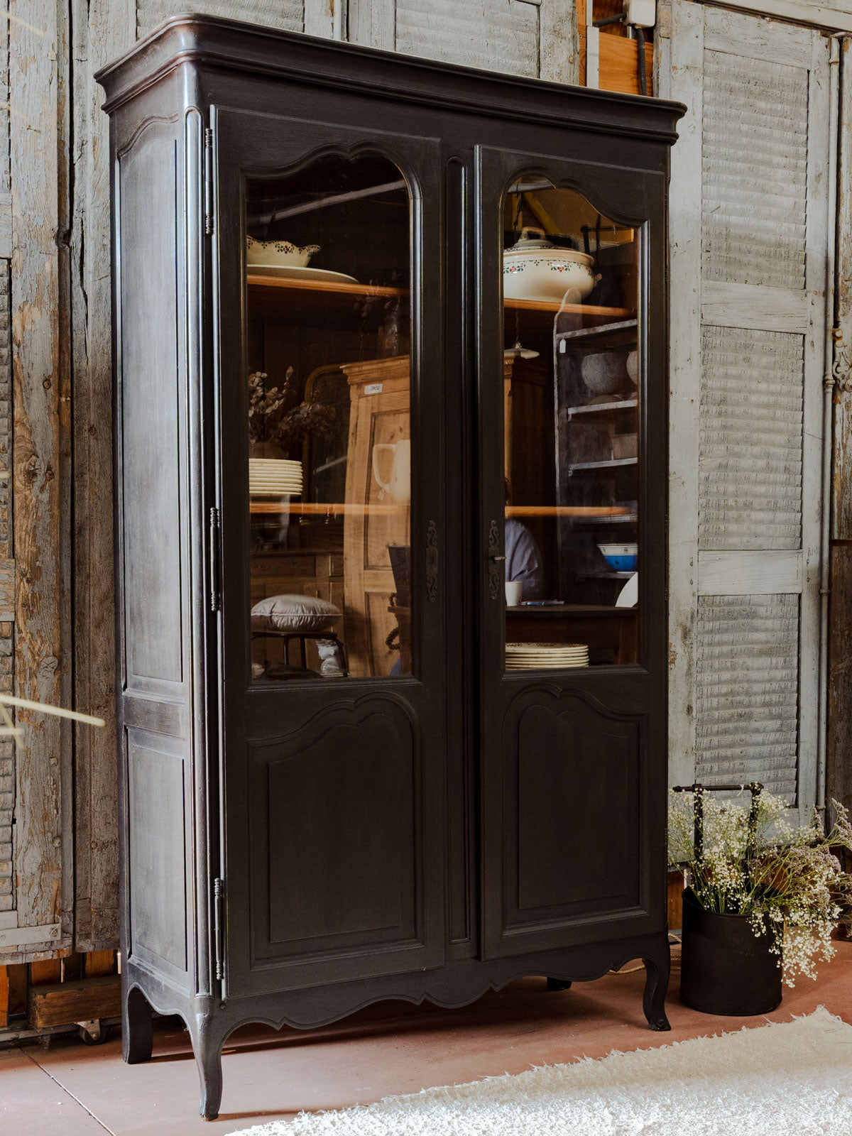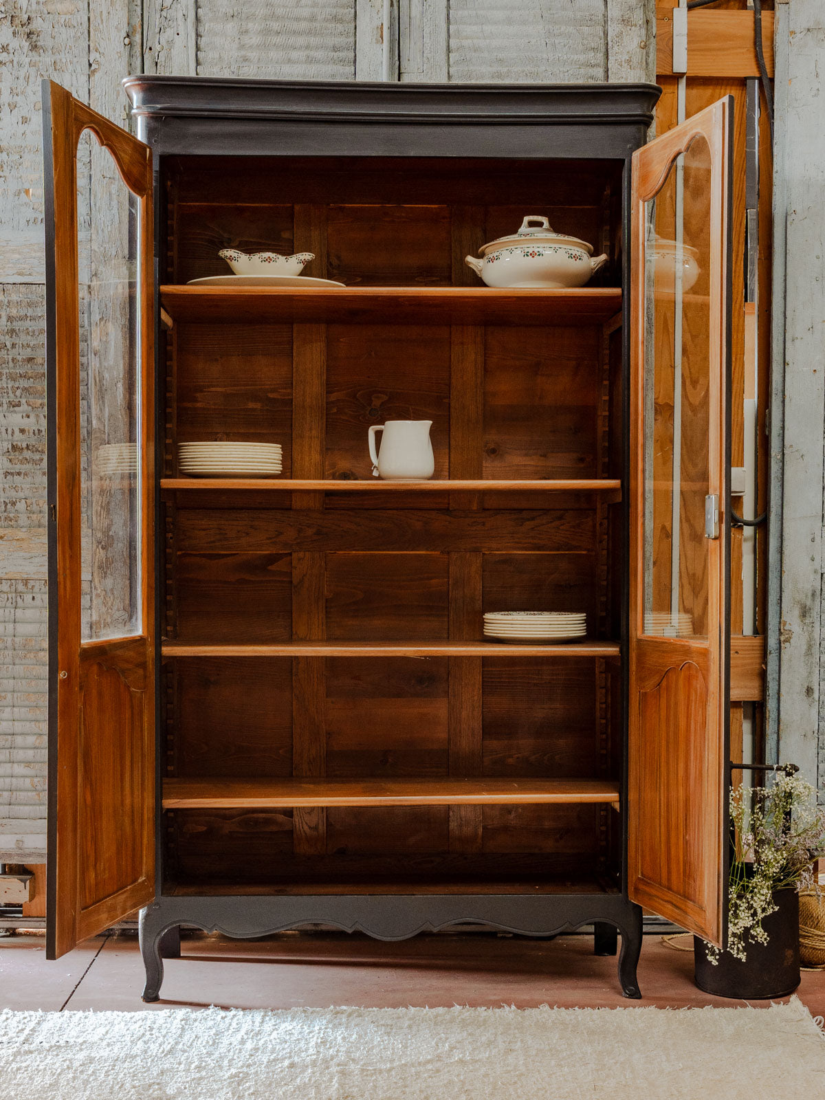 Découvrez notre élégante armoire en merisier, soigneusement repeinte en noir, offrant un contraste saisissant avec son intérieur aux teintes naturelles du bois. Dotée de quatre étagères à hauteur réglable grâce à un système de crémaillère, cette armoire allie fonctionnalité et esthétique. Parfaite pour organiser vos espaces tout en ajoutant une touche de sophistication à votre décoration intérieure. Apportez une note de charme et de praticité à votre maison avec ce meuble intemporel.