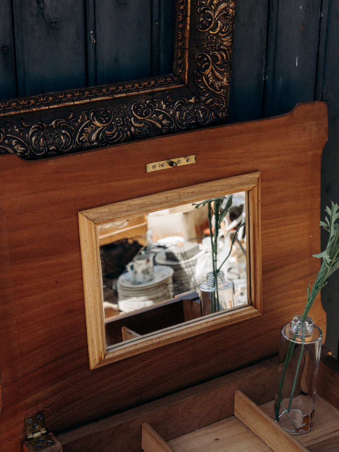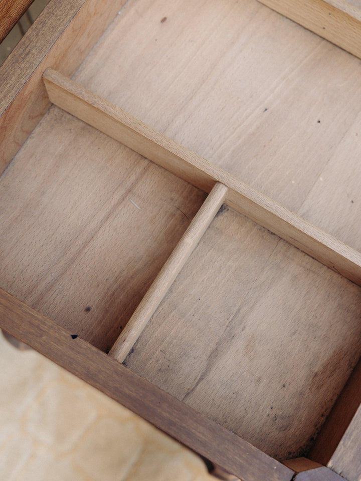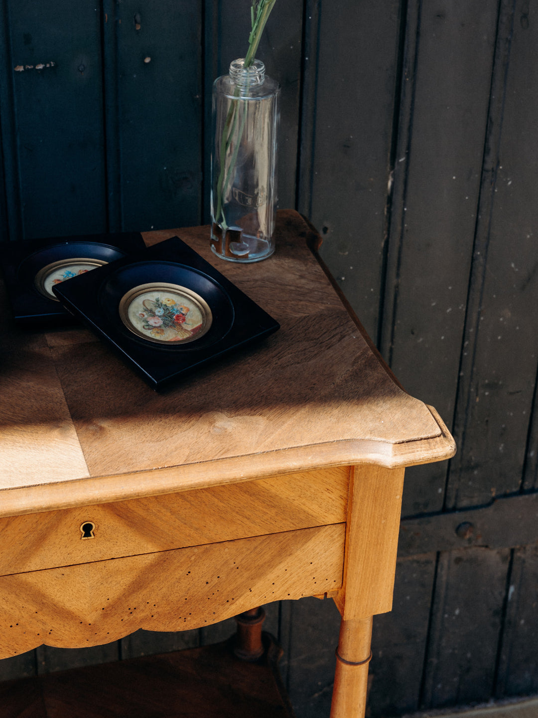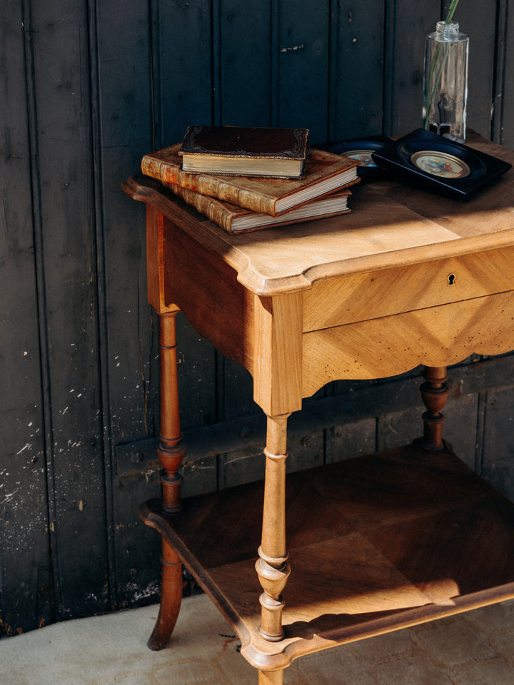 Découvrez notre élégante travailleuse en bois, un meuble alliant fonctionnalité et style. Dotée d'un tiroir spacieux, elle offre un plateau qui s'ouvre pour révéler un espace de rangement pratique et un petit miroir. Son bois piqué apporte une touche d’authenticité et de charme à votre intérieur. Idéale pour créer un coin beauté ou un espace de travail intime, cette travailleuse saura s’intégrer parfaitement à tous les styles de décoration.