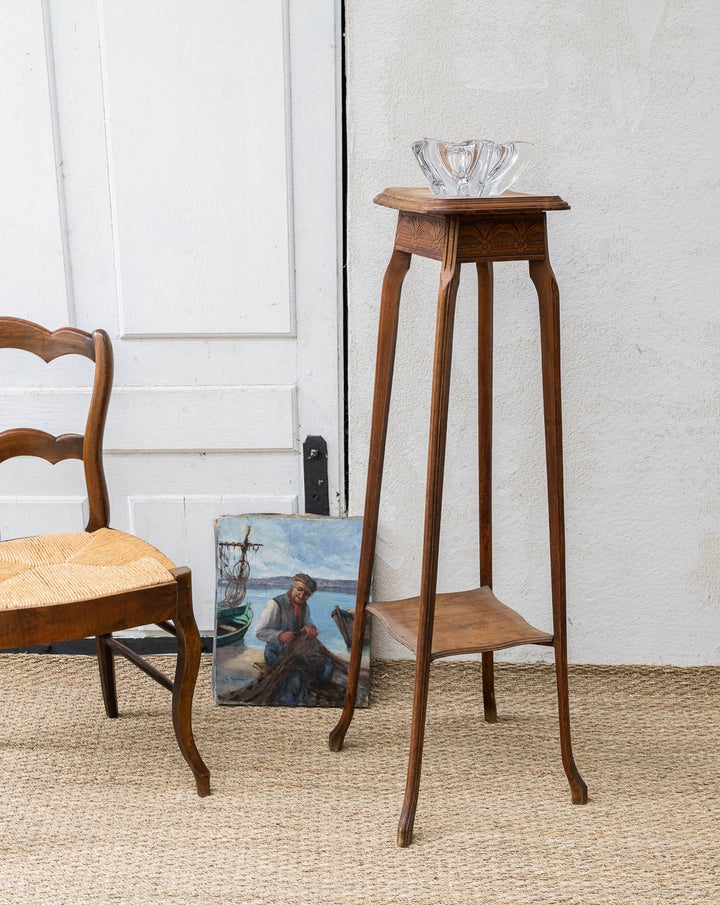 Découvrez cette magnifique sellette ancienne en bois, idéale pour apporter une touche d'élégance à votre intérieur. Ornée de motifs sculptés délicats sur ses contours, elle allie charme et sophistication. Son sous-plateau pratique vous permettra d’exposer vos objets décoratifs préférés tout en mettant en valeur son design raffiné. Un véritable bijou qui fera sensation dans votre salon ou votre entrée.