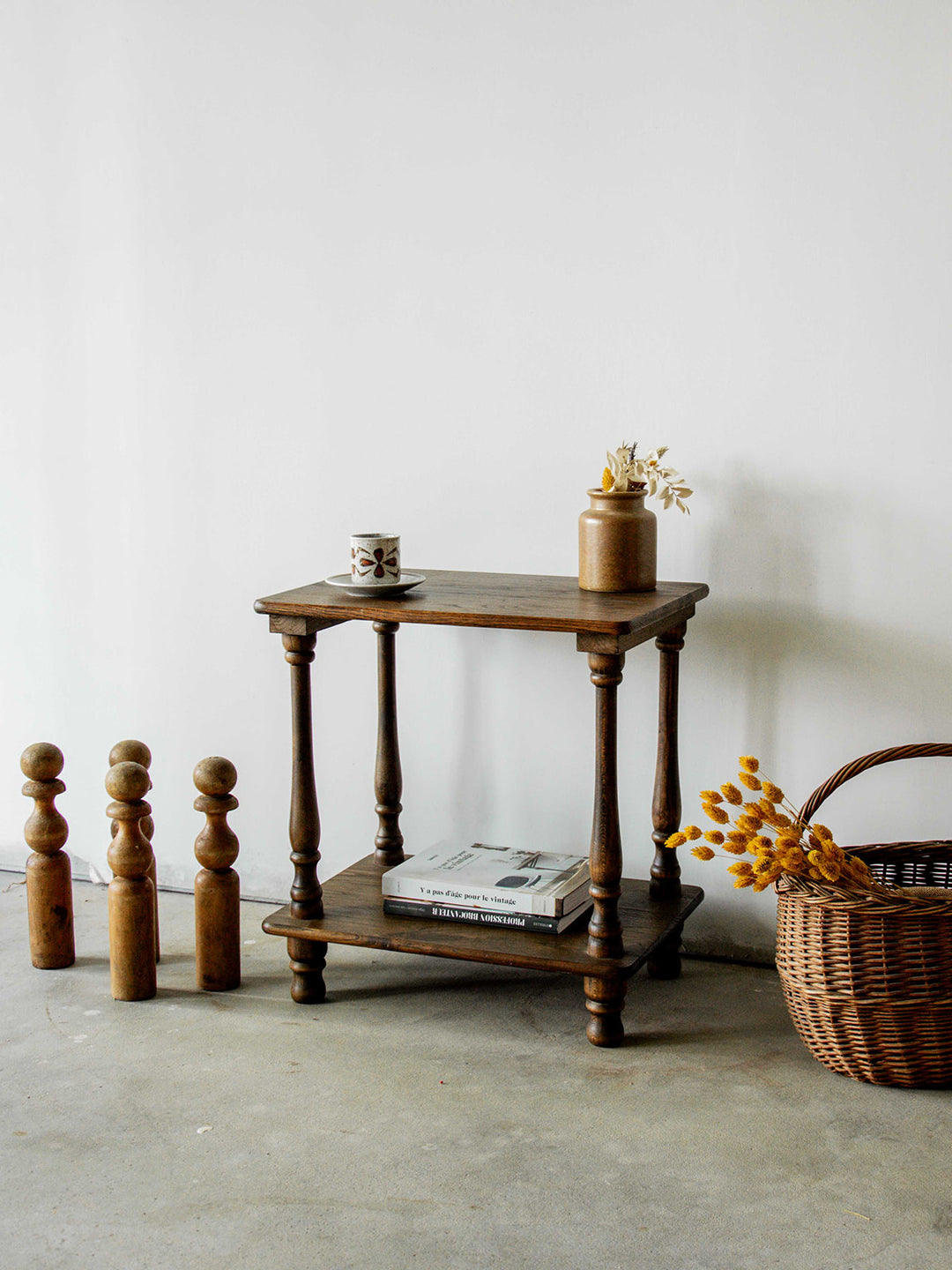 Apportez une note raffinée à votre décoration avec cette table d’appoint en bois. Ses pieds sculptés et ses deux plateaux superposés allient élégance et fonctionnalité, parfaits pour y disposer vos essentiels du quotidien. Facile à intégrer dans tous les espaces, elle se glisse avec style près d’un canapé, d’un lit ou dans un coin lecture. Une pièce discrète et pleine de charme.