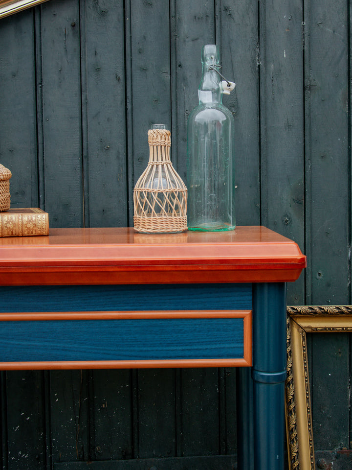 Découvrez cette table de appoint portefeuille en bois bicolore, un véritable bijou de design signé Gautier. Son élégant mélange de bleu vert et de bois teinté orangé apporte une touche contemporaine à votre intérieur. Avec son plateau pivotant, cette table allie praticité et esthétisme, idéale pour les petits espaces. Offrez-vous un meuble qui combine fonctionnalité et style, parfait pour compléter votre décoration.