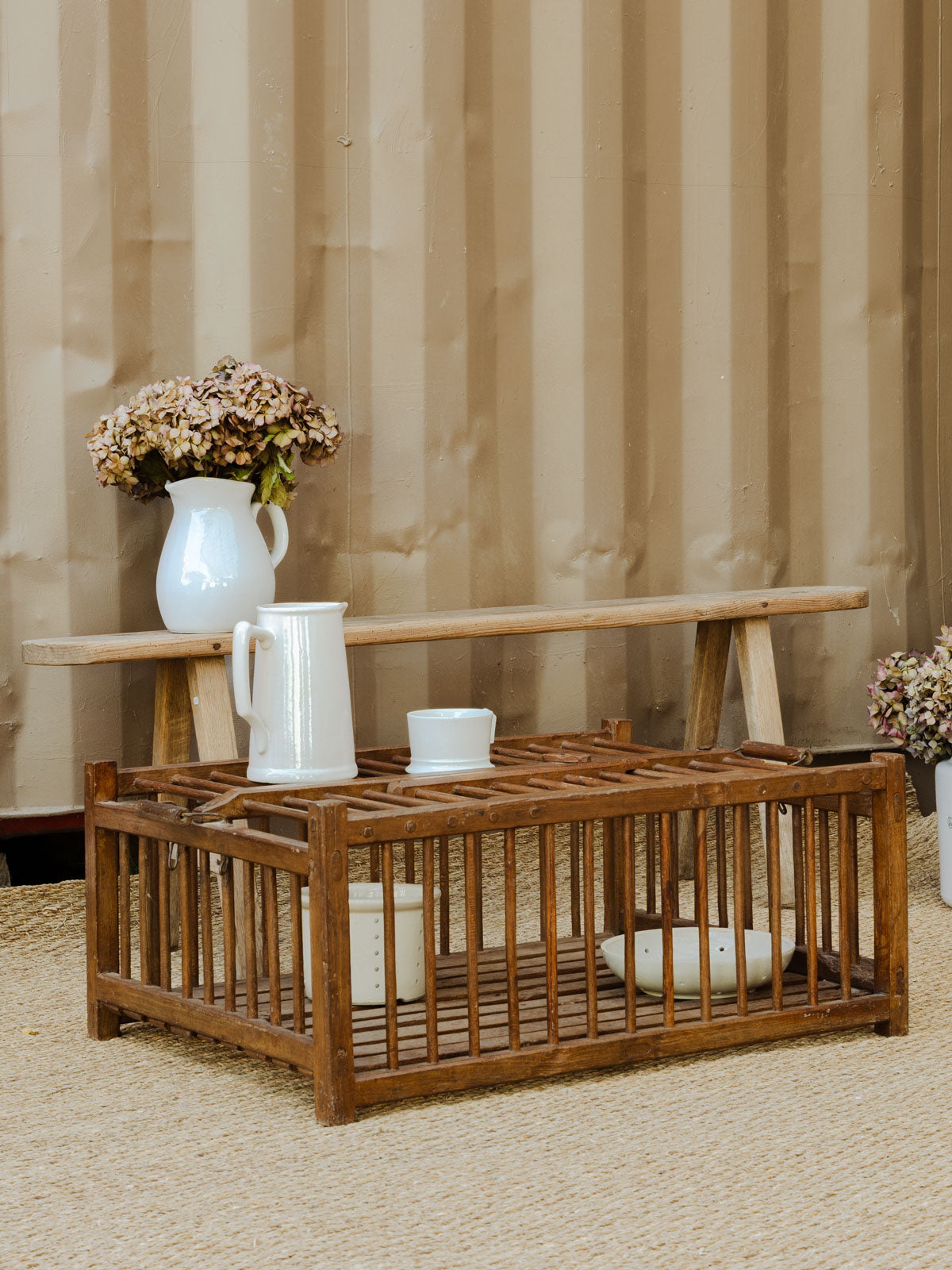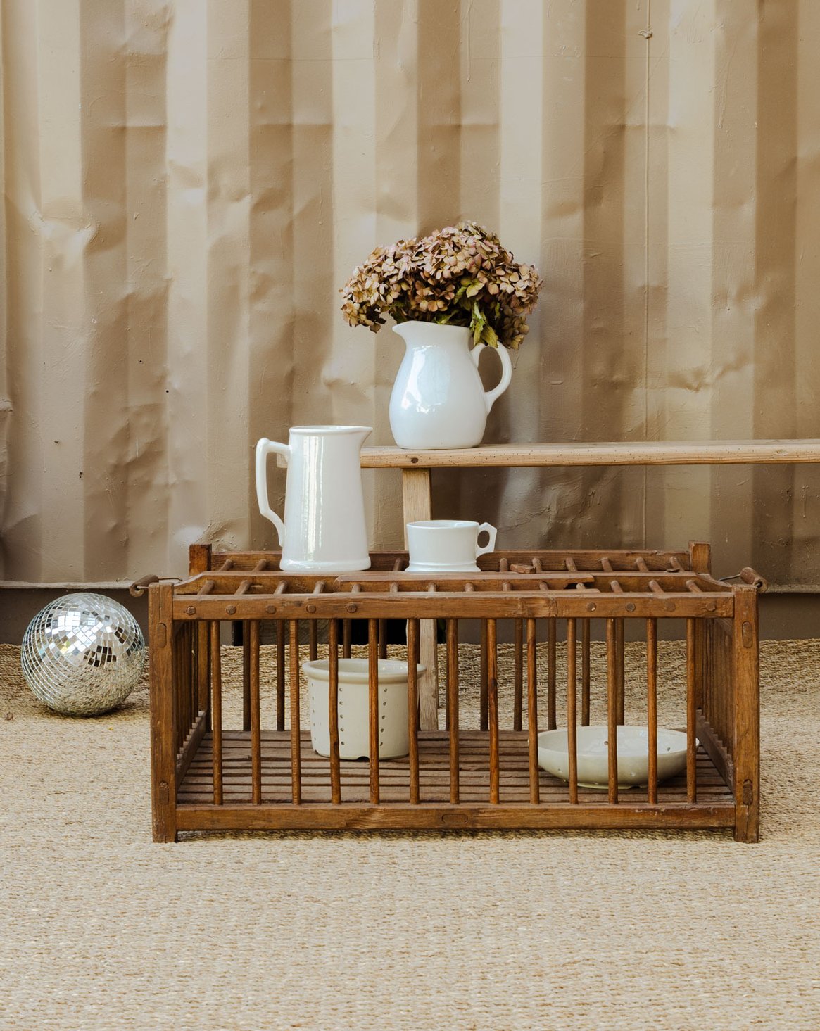 Découvrez notre élégante cage à poules en bois, alliant fonctionnalité et charme rustique. Dotée d'une poignée en métal et en bois, elle se transforme aisément en table basse, apportant une touche unique à votre intérieur. Son clapet sur le dessus facilite l'accès tout en ajoutant un aspect pratique à cet objet déco. Un choix parfait pour les amateurs de design vintage et convivial !