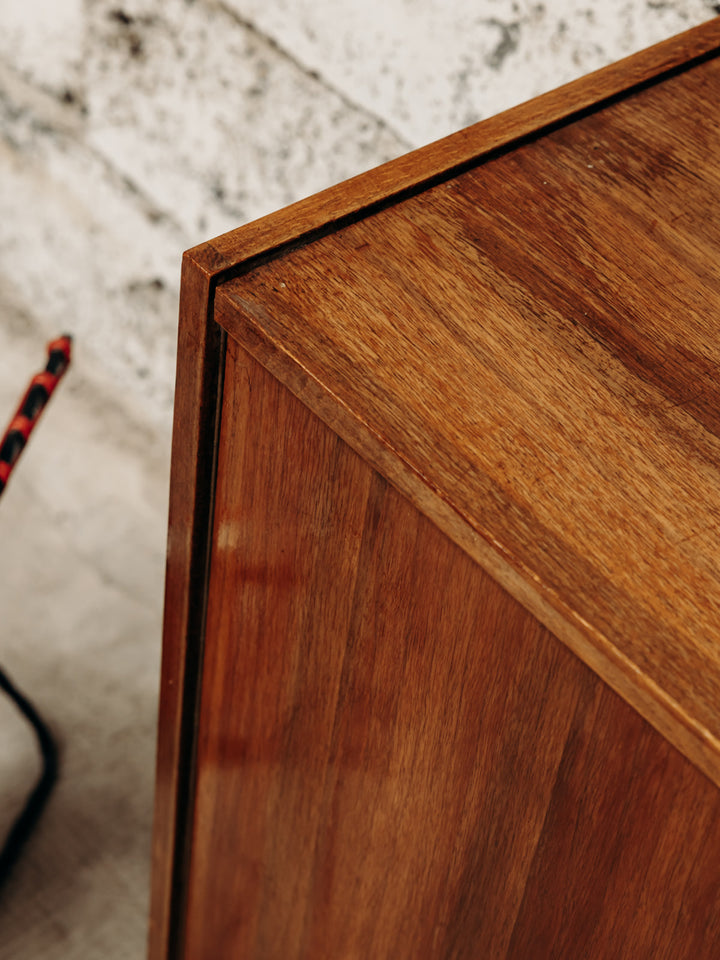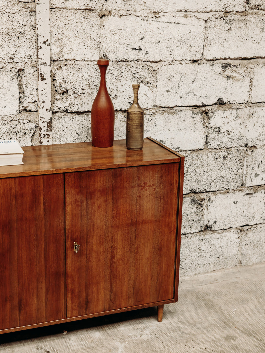 Découvrez ce meuble de rangement en contreplaqué bois foncé, alliant esthétisme et fonctionnalité. Doté de deux portes de placard, il offre un espace de rangement optimal pour vos objets du quotidien. Ses deux étagères vous permettent d'organiser facilement vos affaires, tandis que sa clé assure une sécurité supplémentaire. Ses petits pieds apportent une touche d'élégance, faisant de ce meuble un incontournable pour votre intérieur.