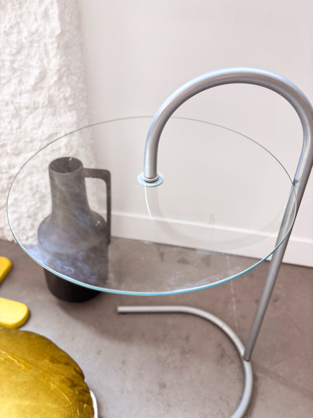 Découvrez ce guéridon des années 80 d'Ikea, un classique intemporel qui allie élégance et fonctionnalité. Doté d'une tablette en verre et d'une structure en métal, il apportera une touche retro-chic à votre intérieur. Disponible en deux exemplaires, ce guéridon se prête parfaitement à un usage en table d’appoint ou en chevet. Une pièce vintage qui saura séduire les amateurs de design !
