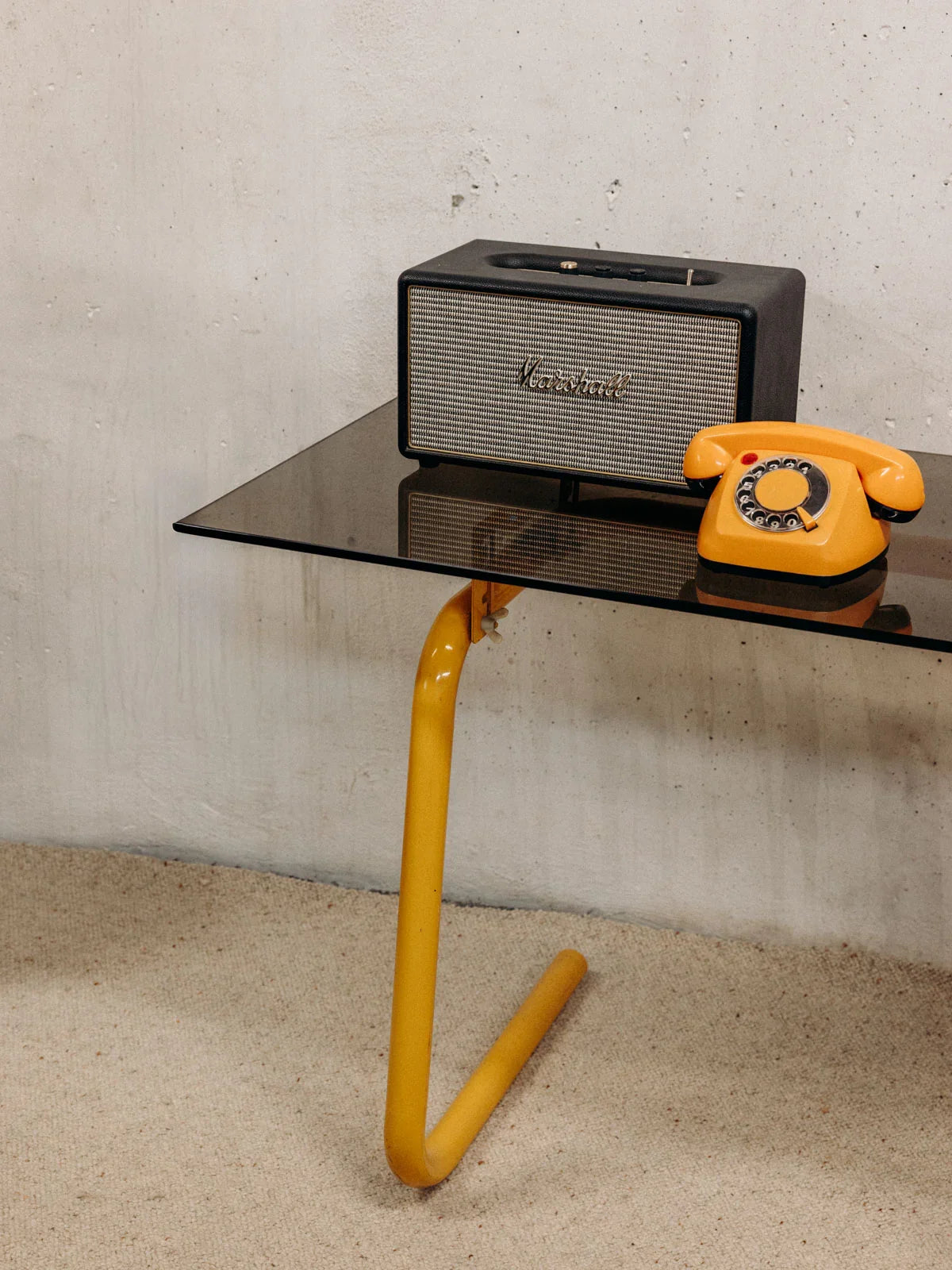 Découvrez la console emblématique signée Marc Berthier, alliant élégance et modernité avec sa finition jaune éclatante et son plateau en verre fumé. Cette pièce unique se distingue par sa hauteur réglable sur 4 niveaux, offrant une fonctionnalité adaptative pour tous vos espaces. Parfaite pour apporter une touche de design à votre intérieur, cette console se marie aisément avec divers styles de décoration. Un incontournable pour les amateurs de mobilier contemporain !