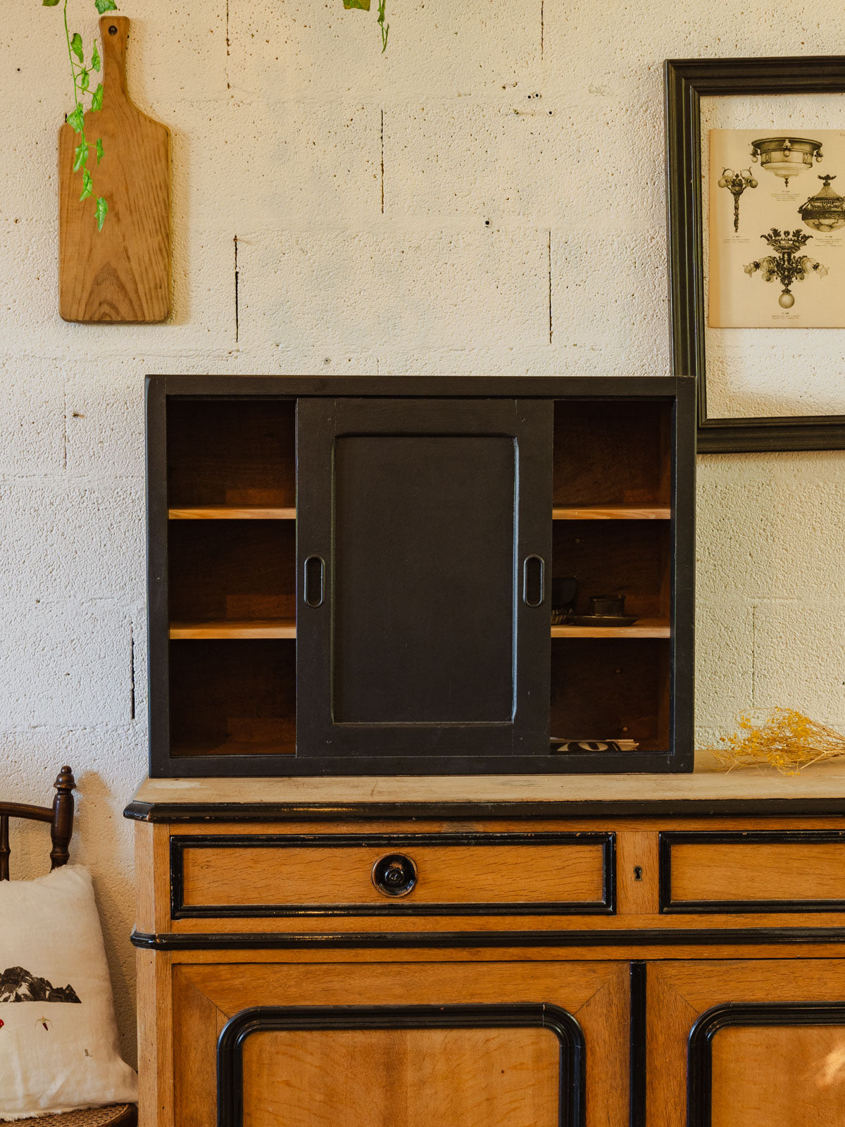 Apportez une touche de charme vintage à votre intérieur avec ce meuble à poser en pin, soigneusement peint en noir. Équipé de deux étagères spacieuses et de deux portes coulissantes, il allie fonctionnalité et esthétisme. Parfait pour ranger vos livres, objets de décoration ou accessoires, ce meuble se fond harmonieusement dans tout type d’espace. Son design épuré et intemporel en fera un incontournable de votre décoration intérieure.