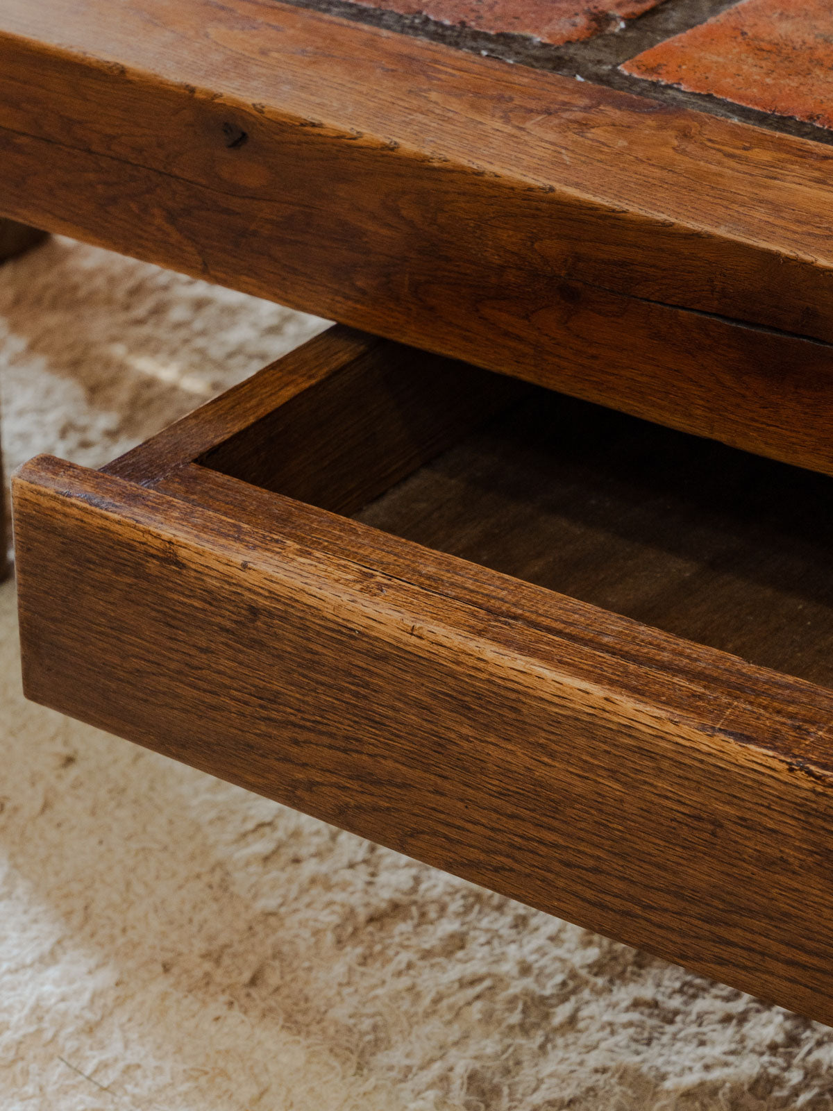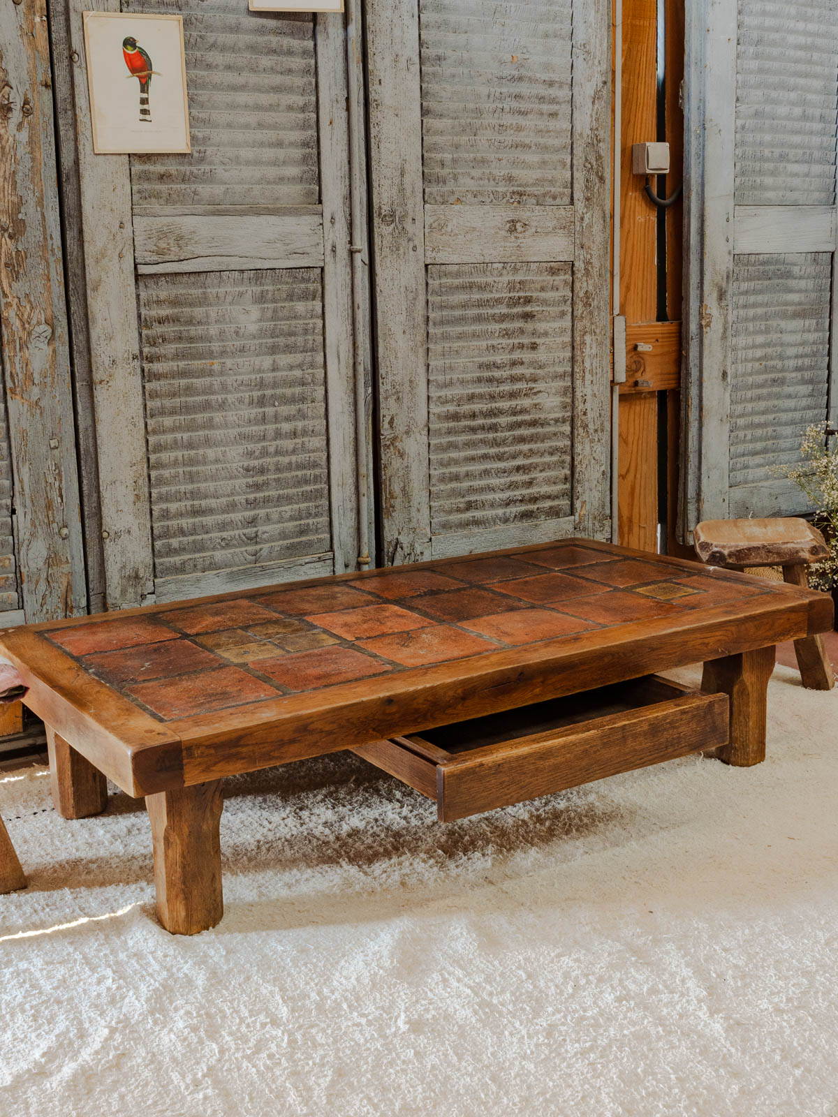 Découvrez cette table basse vintage des années 1970, fabriquée en chêne massif, qui apportera une touche rétro à votre intérieur. Elle se distingue par son élégant dessus en tomette, alliant esthétique et praticité grâce à son tiroir intégré pour un rangement optimal. Avec ses dimensions et une patine authentique, elle sera le meuble idéal pour compléter votre salon avec charme et caractère. Un incontournable à ne pas manquer !