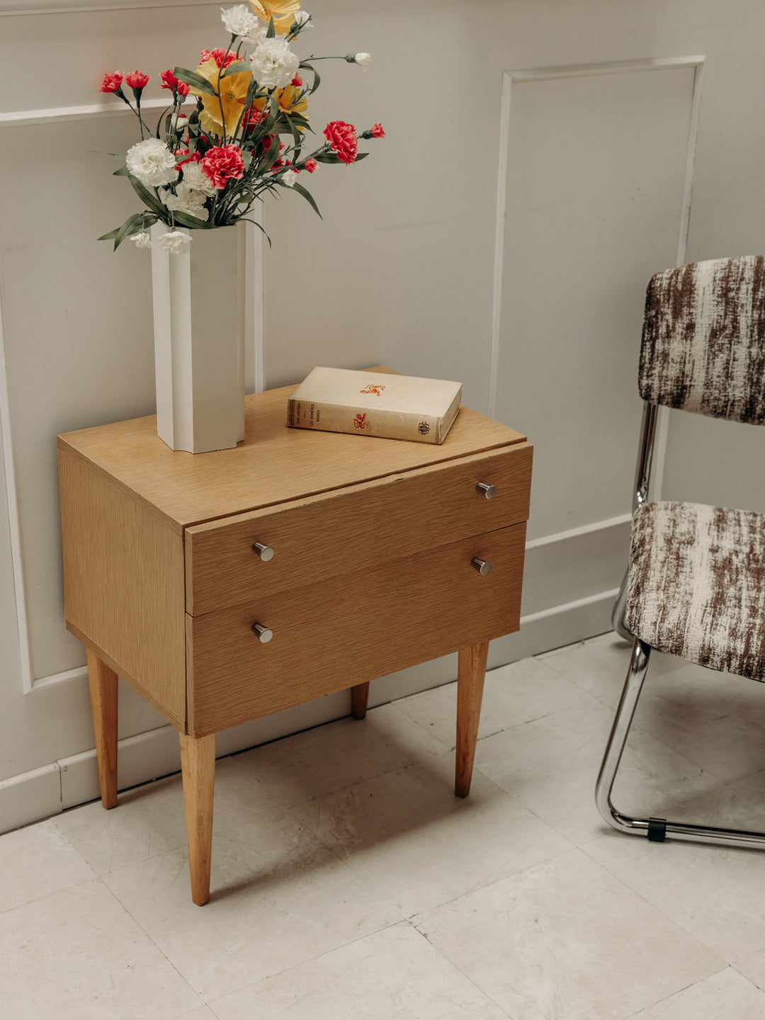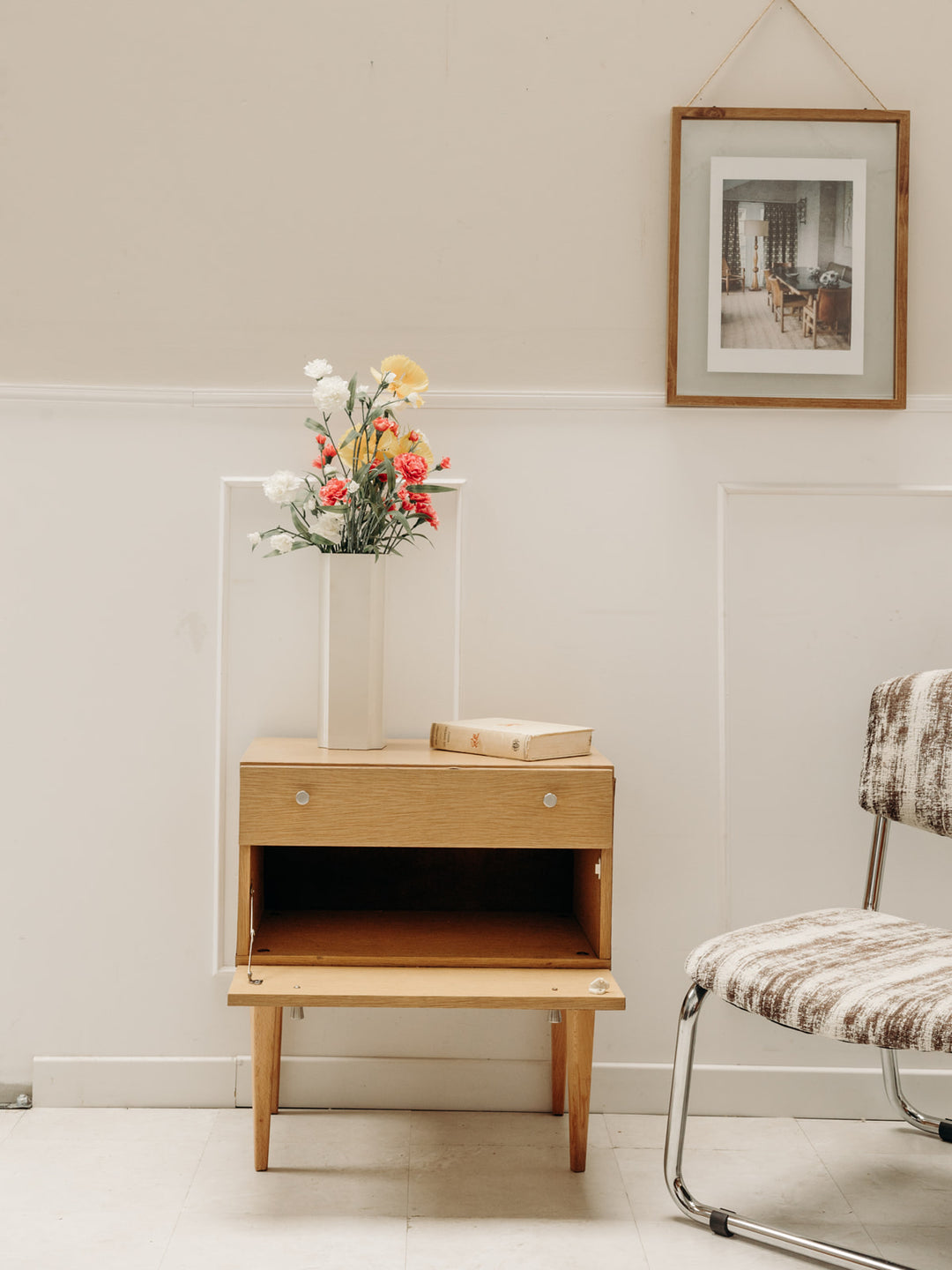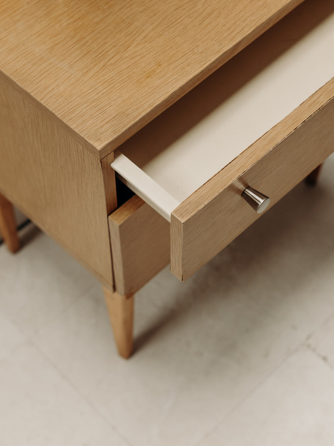 Le terme "chevet" désigne depuis le Moyen Âge un petit meuble placé à côté du lit. Initialement conçu comme support pour une lampe ou des objets personnels, le chevet évolue avec le temps pour inclure des tiroirs et des étagères. Essentiel dans la chambre à coucher, il allie aujourd'hui fonctionnalité et design, s’adaptant à tous les styles d'intérieur.