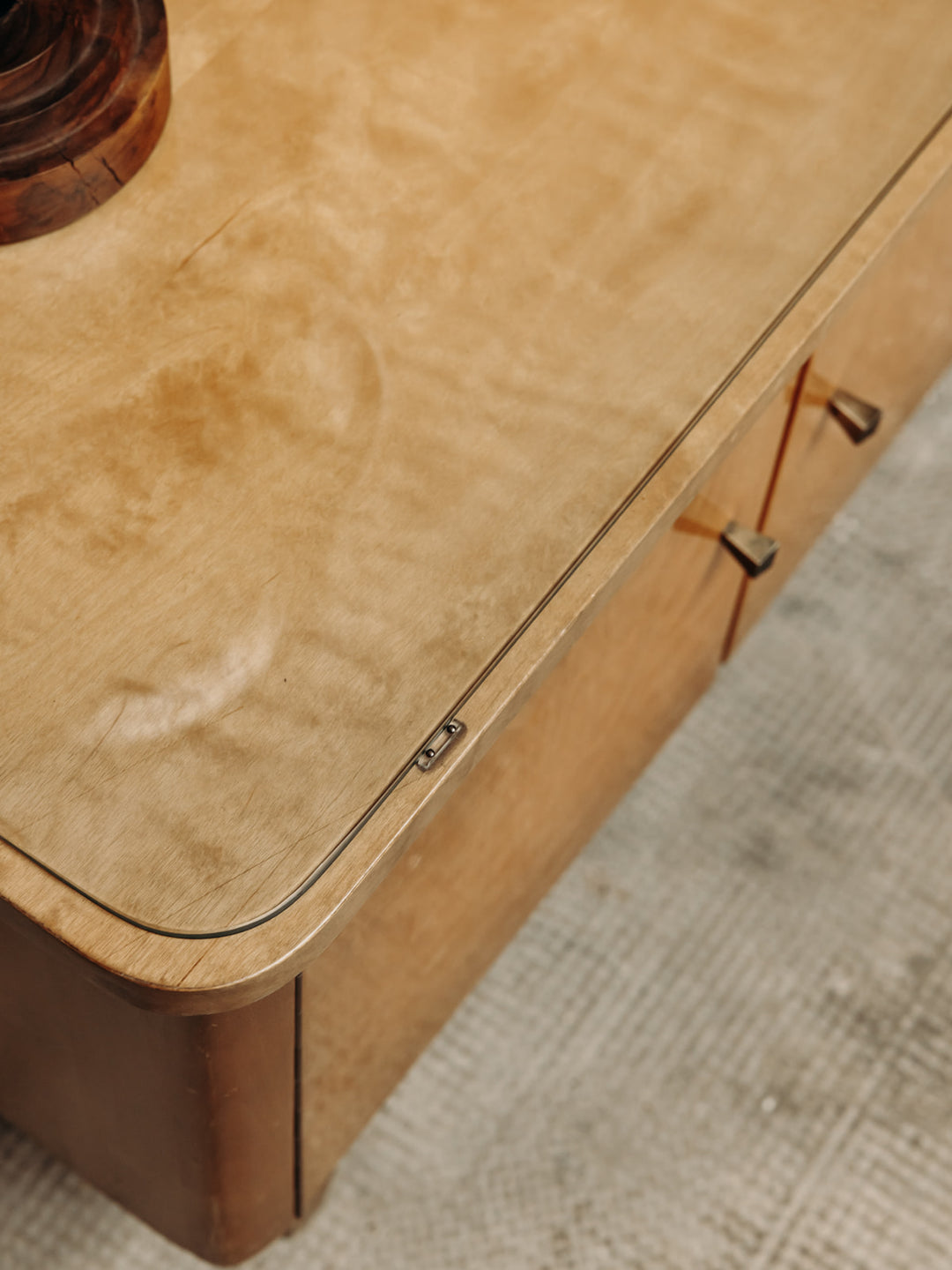 Découvrez ce charmant petit meuble de rangement en bois clair, alliant élégance et fonctionnalité. Équipé de trois tiroirs pratiques et d'un placard à deux portes, il offre un espace de rangement optimal pour tous vos essentiels. Ses poignées en métal ajoutent une touche contemporaine, tandis que ses pieds compas apportent une note rétro et chaleureuse à votre intérieur. Idéal pour le salon, la chambre ou l'entrée, ce meuble s'intégrera harmonieusement dans votre décoration.