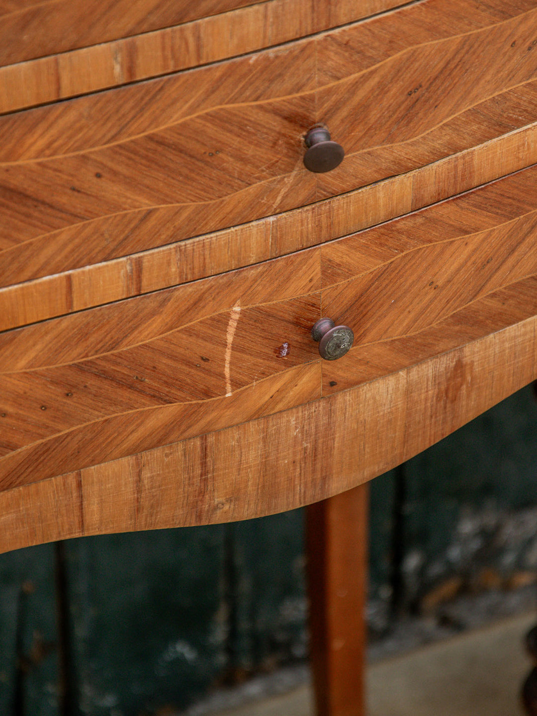 Apportez une touche d'élégance à votre chambre avec ce chevet en bois clair au design intemporel. Son pied de biche délicat et ses trois tiroirs pratiques offrent à la fois style et fonctionnalité. Le rebord ondulé ajoute une note de sophistication, tandis que la petite décoration dorée illuminera votre espace. Un meuble parfait pour allier rangement et esthétique.