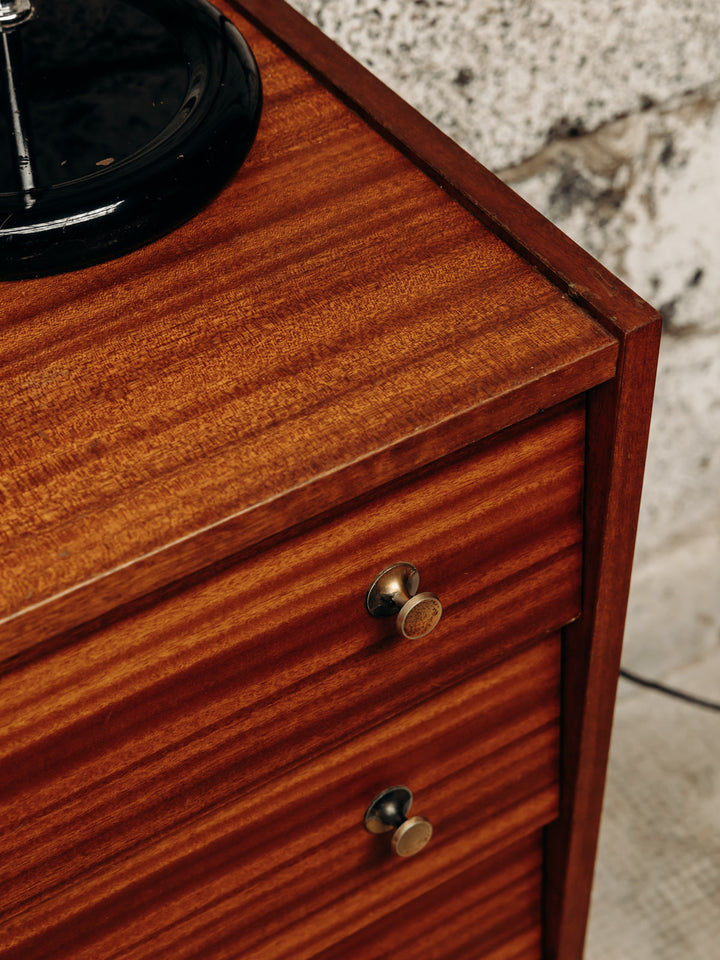 Ajoutez une touche d'élégance à votre intérieur avec cette commode en bois foncé, dotée de stries raffinées et de trois tiroirs spacieux. Ses petits boutons dorés apportent une note délicate et lumineuse, tout en facilitant l'ouverture de chaque tiroir. Parfaite pour optimiser votre espace de rangement avec style, cette commode saura s'intégrer parfaitement dans n'importe quelles décorations, du classique au contemporain. Transformez votre intérieur avec ce meuble alliant praticité et esthétisme.