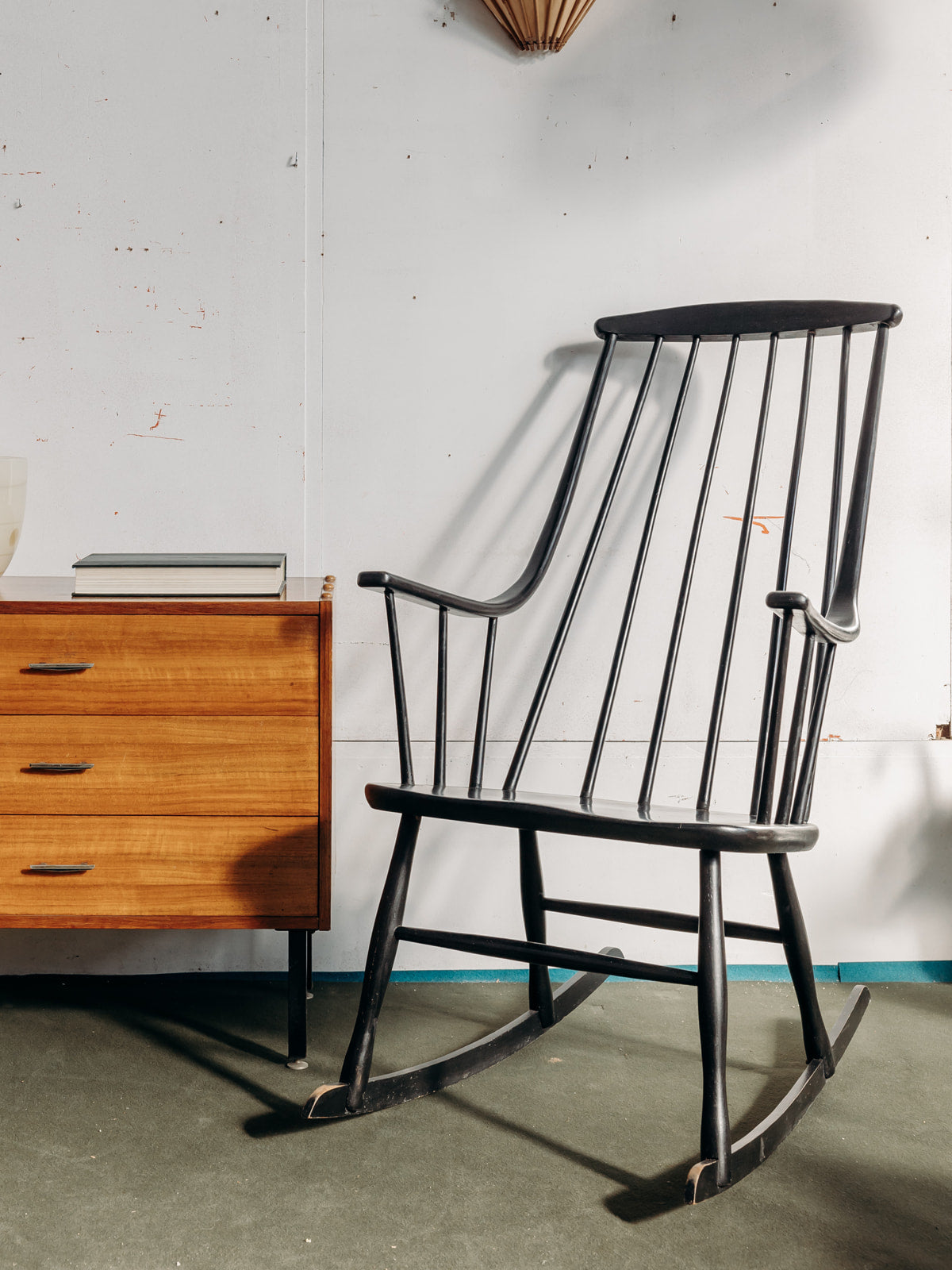 Offrez-vous une pièce emblématique du design scandinave avec ce rocking chair Grandessa noir, signé Lena Larsson pour Nesto. Réalisé en hêtre dans les années 1960, ce fauteuil arbore des accoudoirs incurvés qui allient confort et esthétique. Son style Mid-Century, teinté d'une patine authentique, témoigne de son histoire et de son charme vintage. Bien que quelques traces d'usure soient présentes, elles n'altèrent en rien l'élégance de ce mobilier unique. Un véritable incontournable pour les amateurs de designs d'exception.