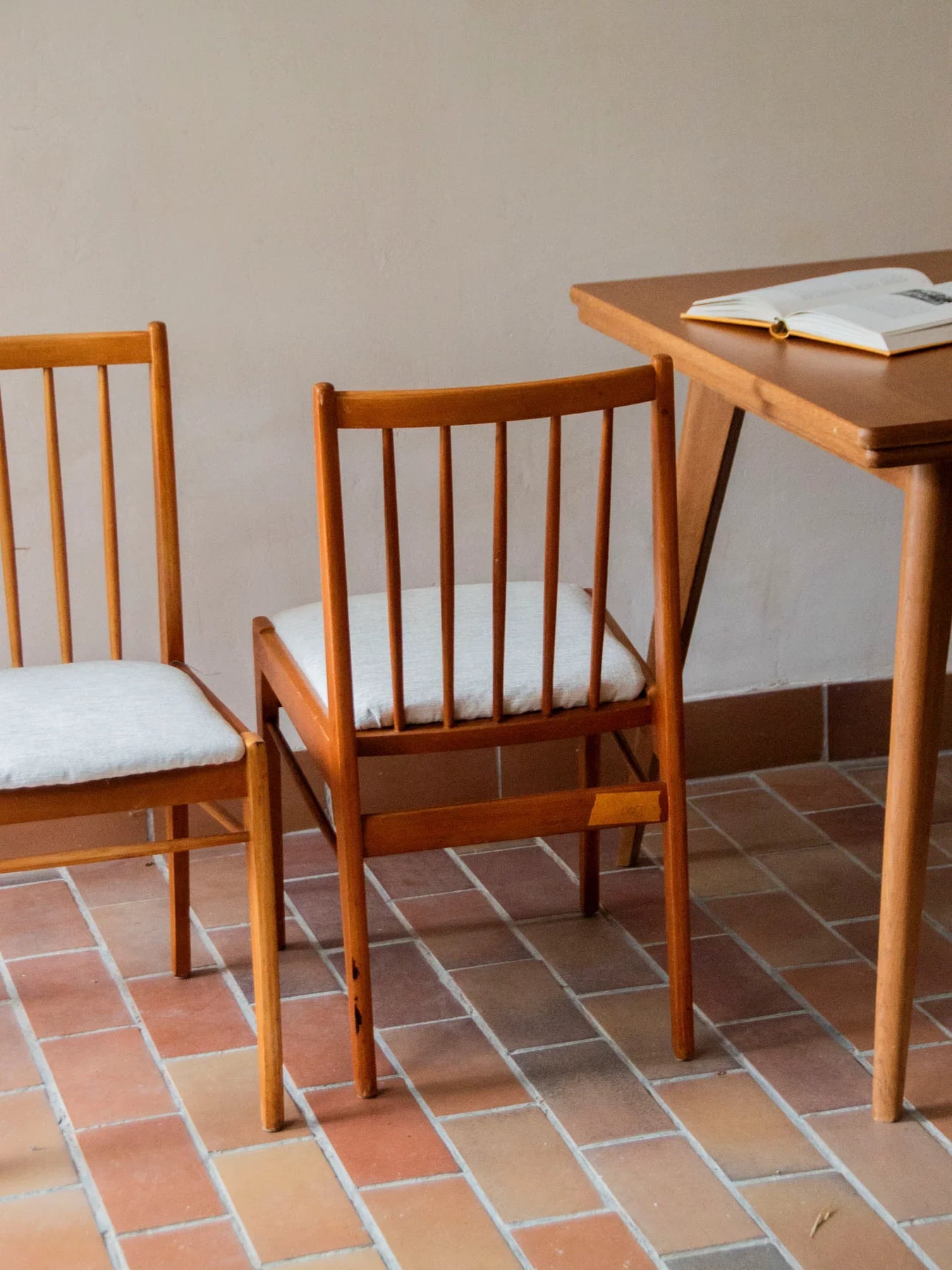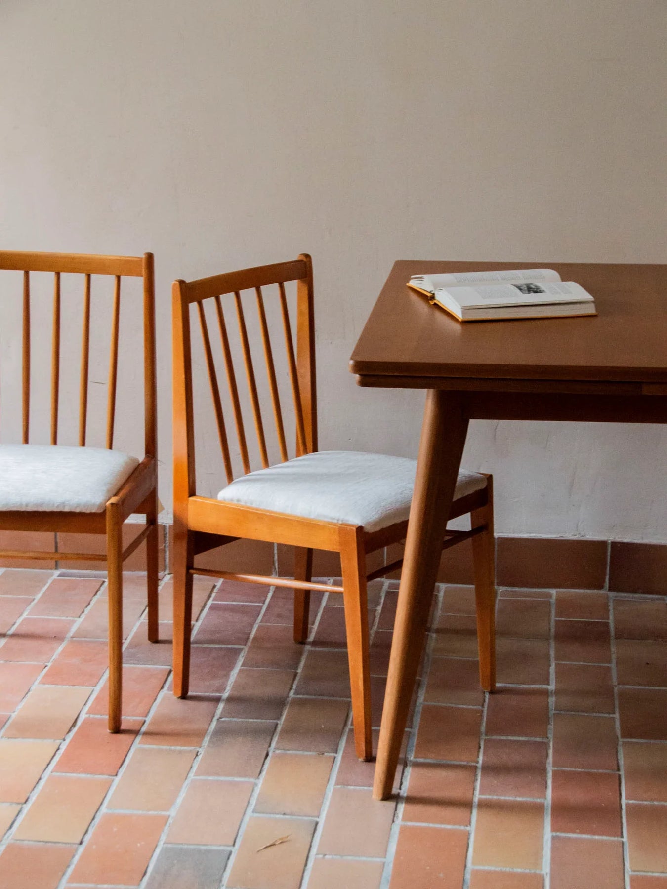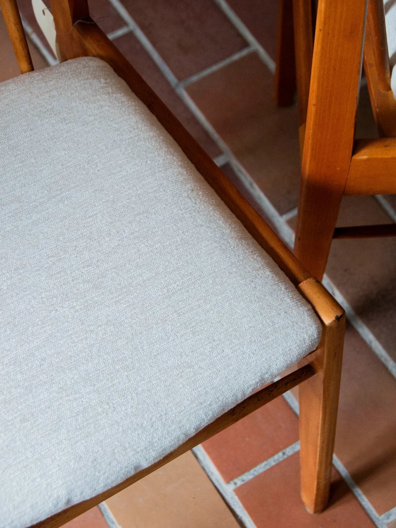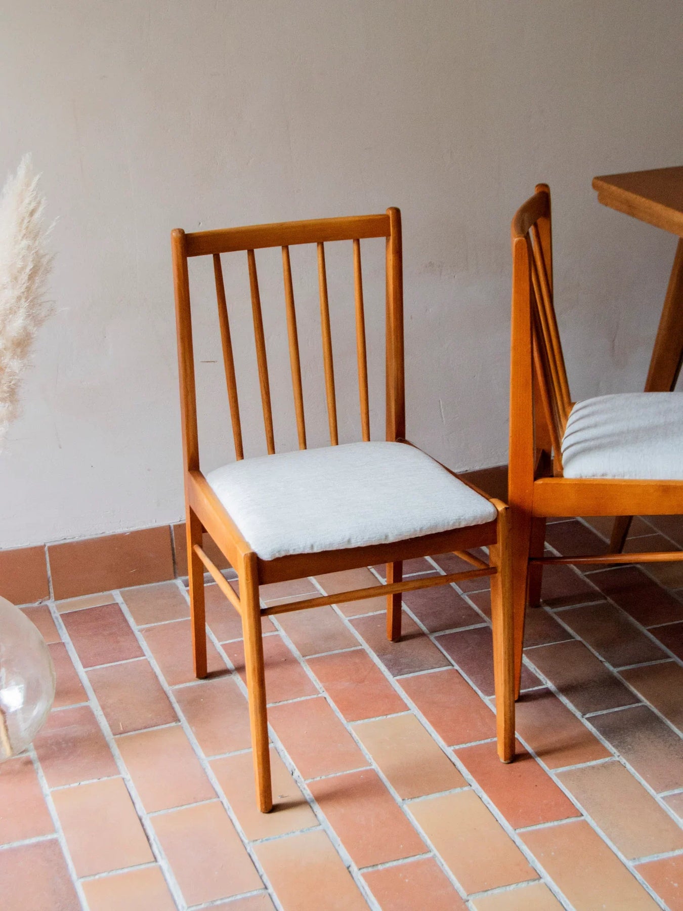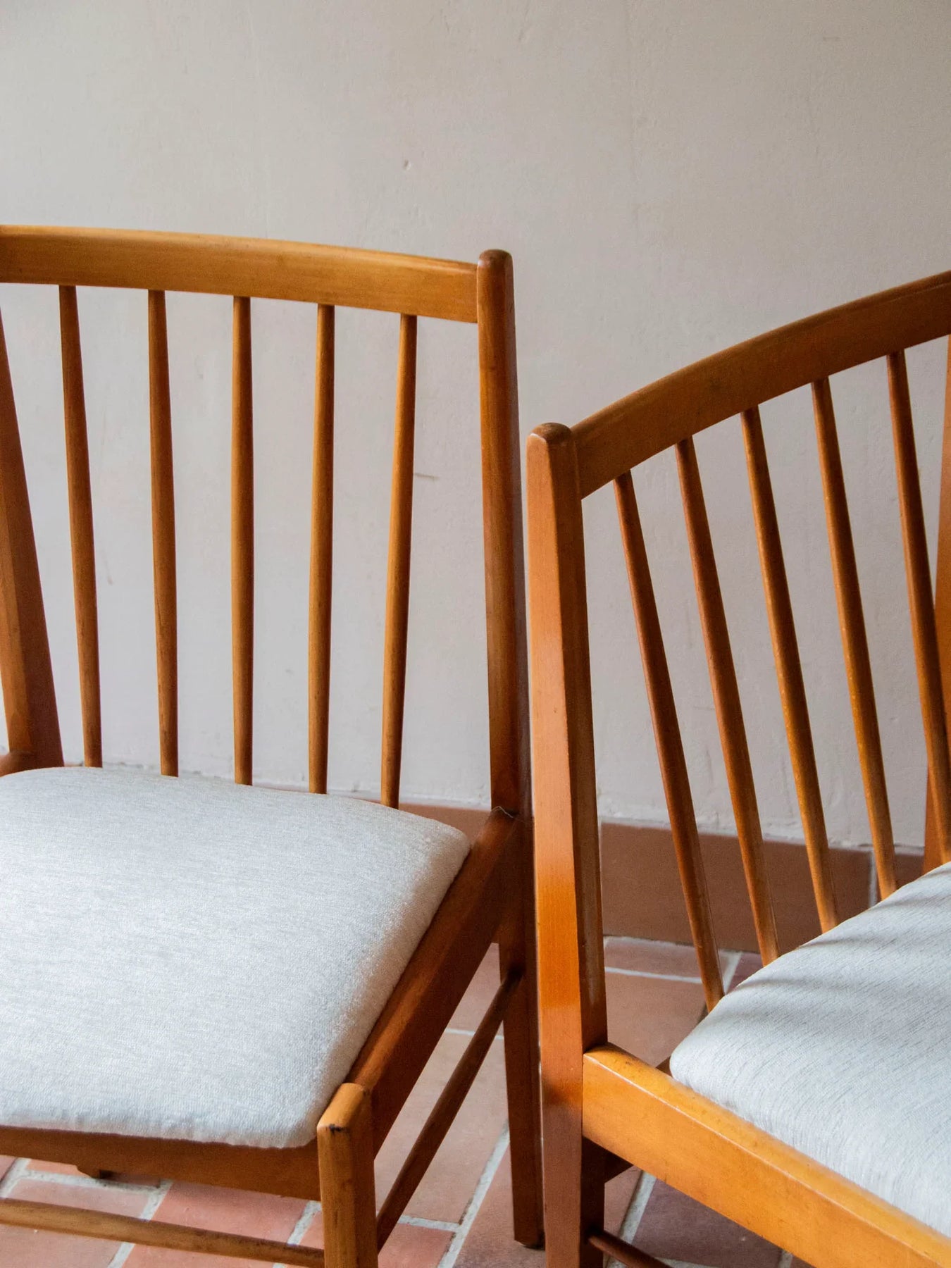 Découvrez cette paire de chaises de style scandinave, fabriquée par le réputé tchèque Drevospoj Breclav dans les années 60. Leur structure en hêtre, associée à des assises en velours blanc soigneusement re-tapissées, offre une élégance intemporelle. Avec leur ligne épurée et leur dossier travaillé, ces chaises sont des pièces robustes qui sauront embellir votre espace repas. Bien que quelques traces d'usure soient présentes, l'ensemble est en bon état général et assure une stabilité parfaite.