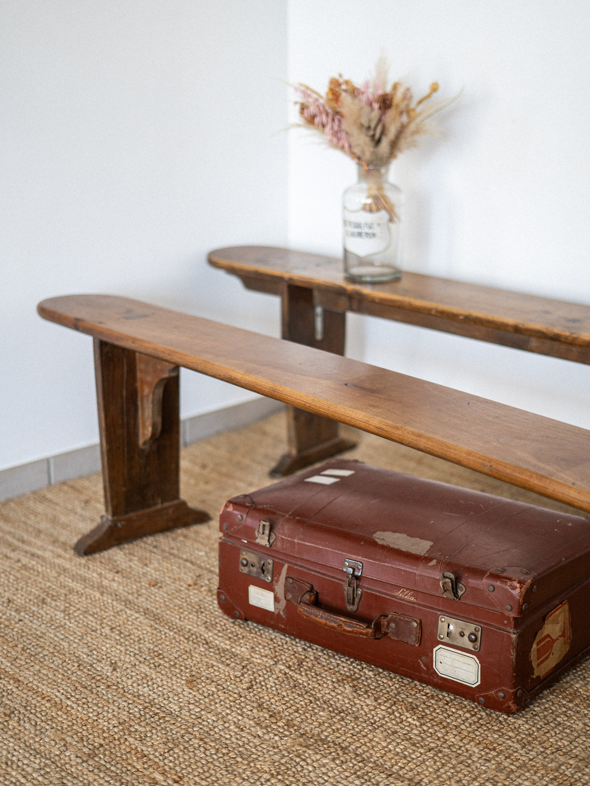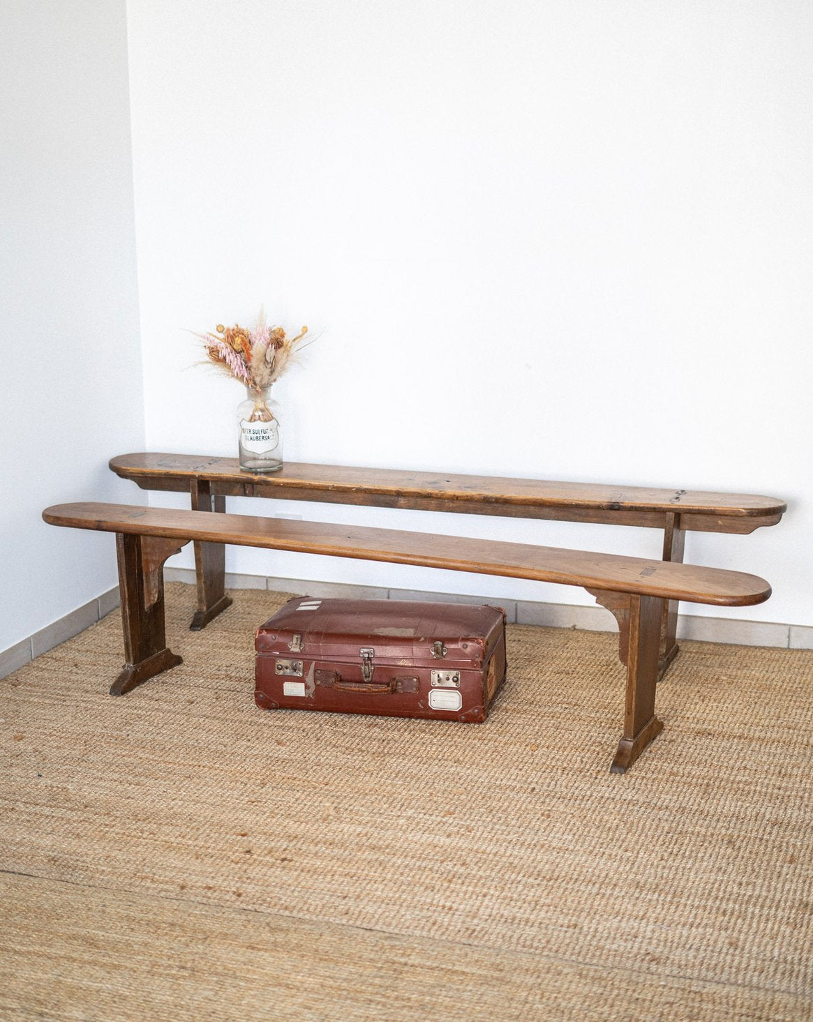 Découvrez cette paire de bancs en bois, délicatement arrondis, qui apportera une touche d’authenticité à votre intérieur. Avec leur patine ancienne, ces bancs de ferme évoquent le charme des campagnes d’antan tout en offrant un confort optimal. Chaque banc présente des différences subtiles, ajoutant une dimension unique à cet ensemble qui s'intégrera parfaitement dans une décoration vintage ou contemporaine. Idéaux pour partager des moments conviviaux en famille ou entre amis.