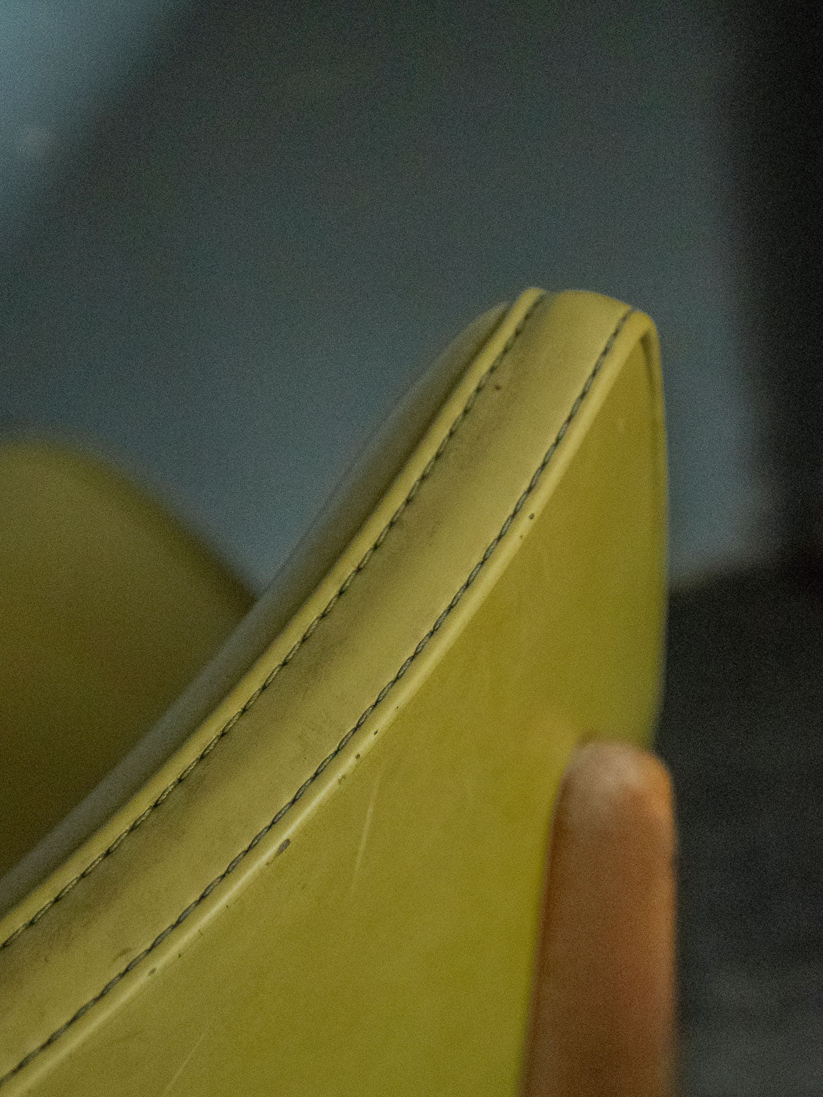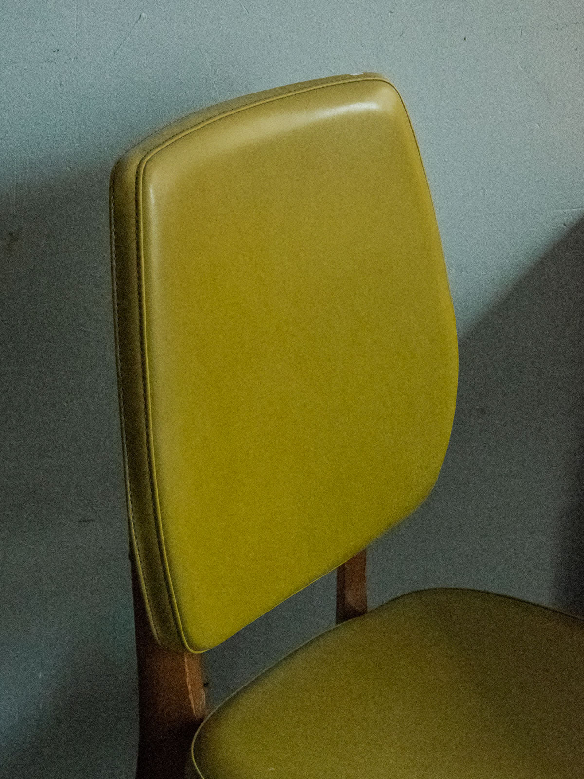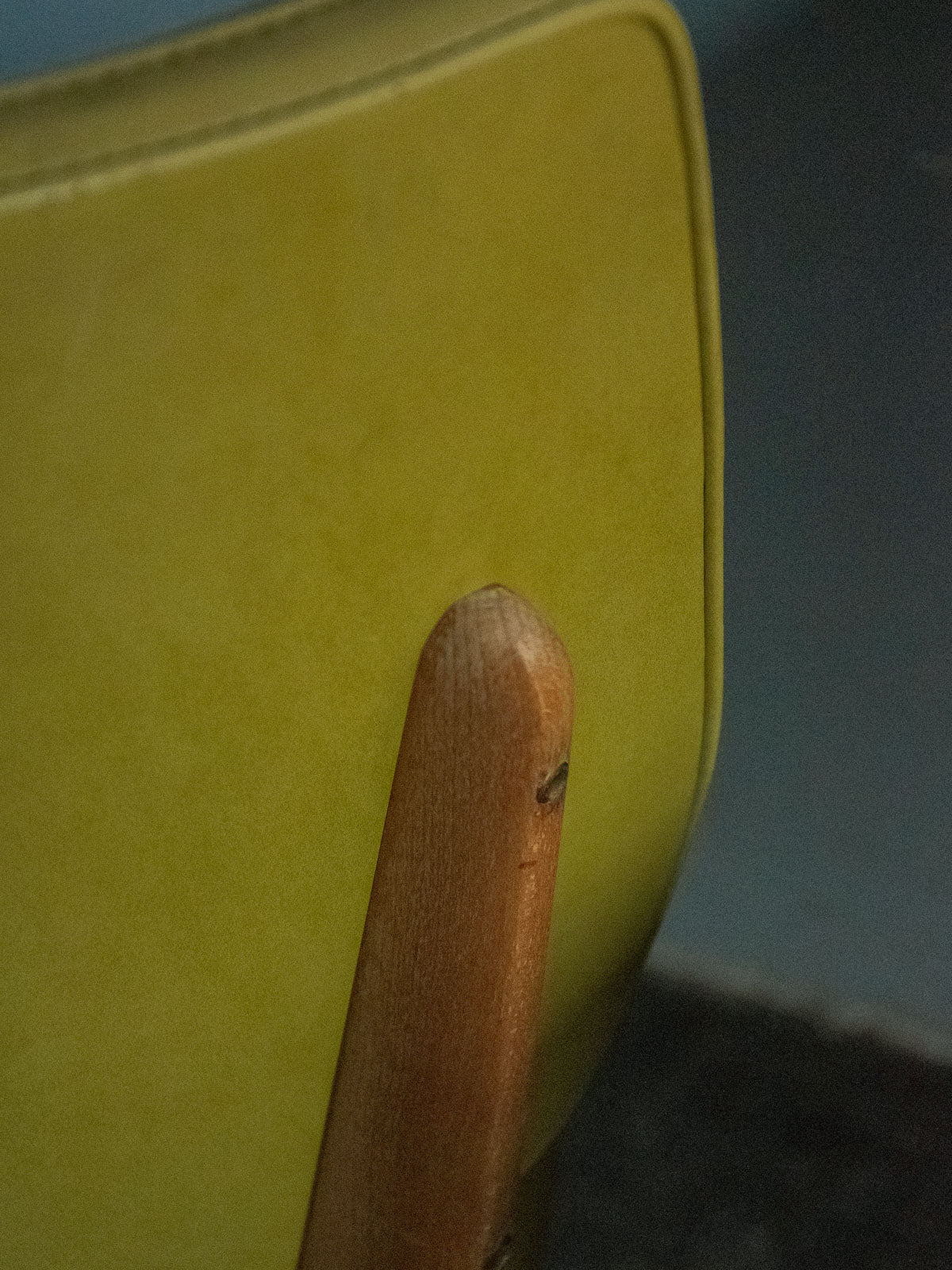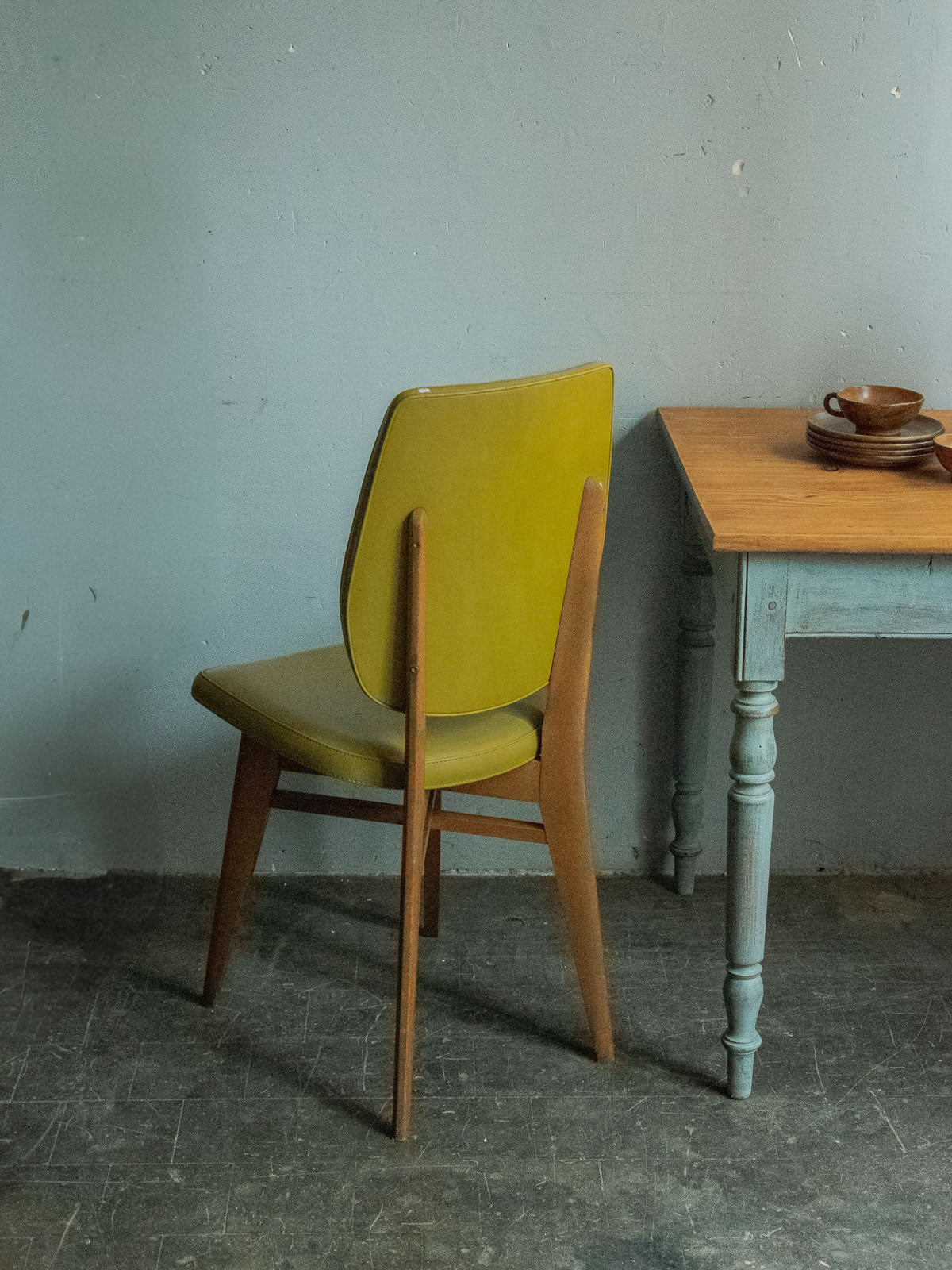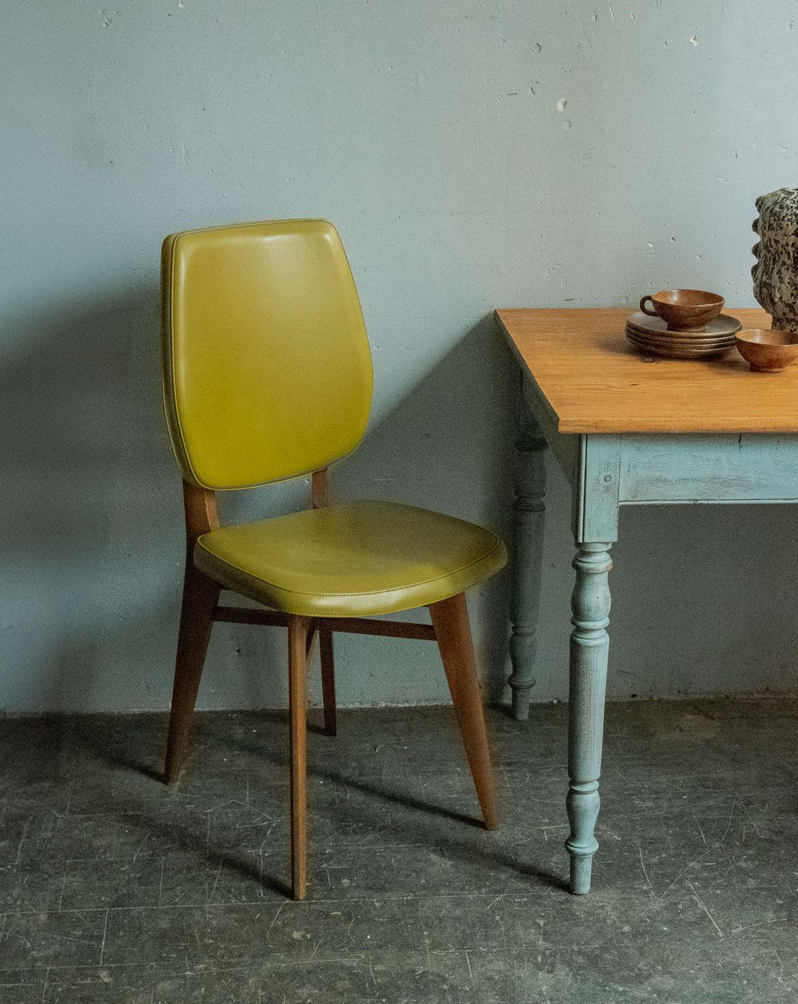 Ajoutez une touche de style scandinave à votre intérieur avec cette chaise au design épuré. Son assise et son dossier en skai vert apportent une note de fraîcheur, tandis que sa structure en bois assure robustesse et élégance. Bien que présentant de légères usures, chaque pièce a son caractère unique. Disponible à l'unité, cette chaise est idéale pour compléter votre décoration ou créer un coin repas chaleureux.