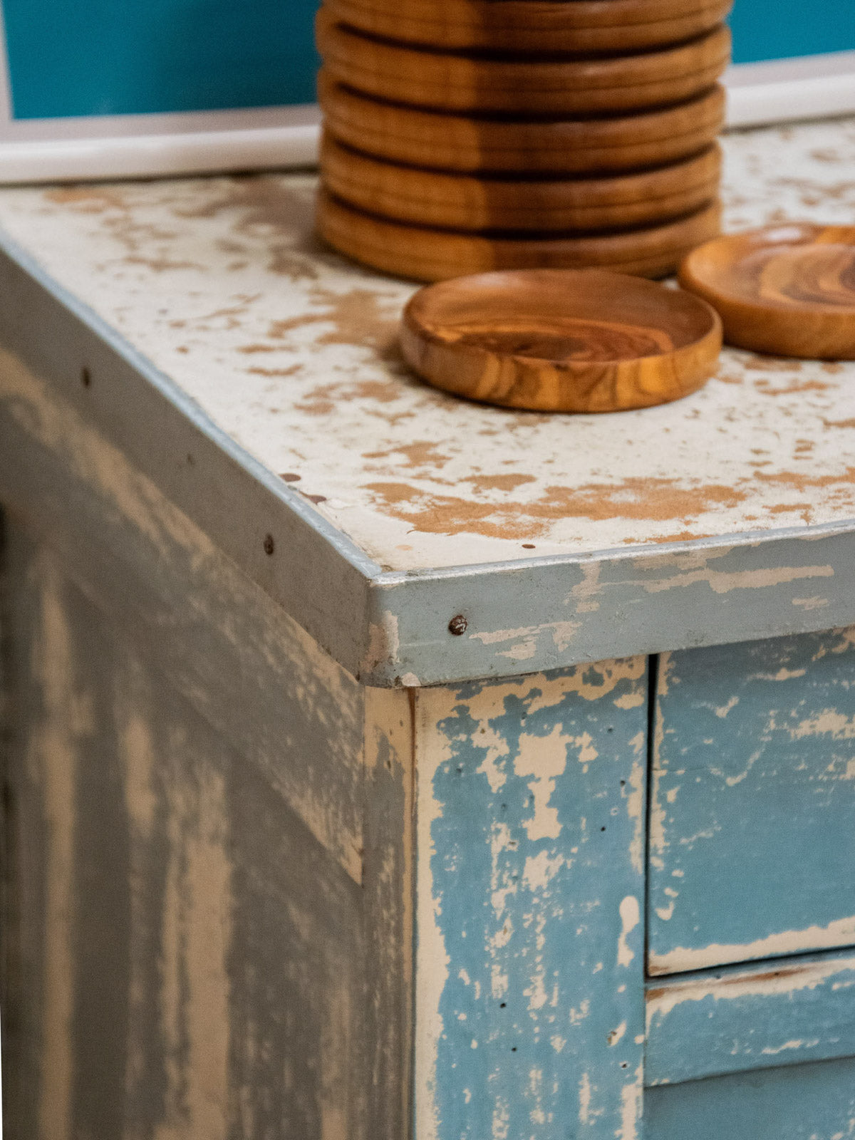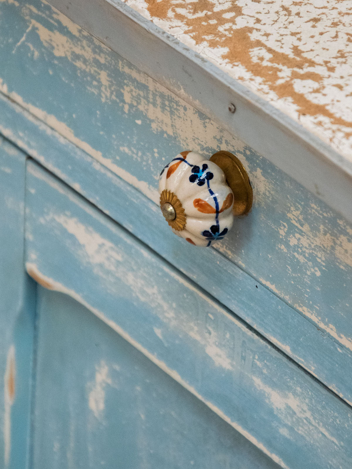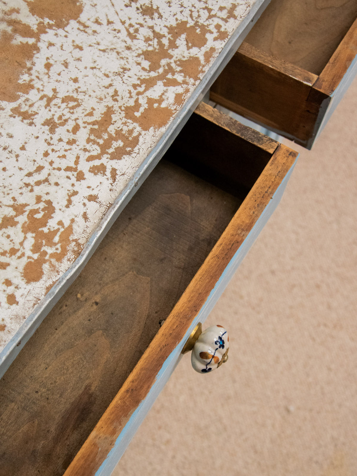 Apportez une touche de charme à votre intérieur avec ce petit buffet en bois peint patiné, alliant subtilement des nuances de bleu ciel et de blanc. Doté de deux portes et de deux tiroirs, il offre un espace de rangement pratique tout en restant esthétique. Son plateau patiné et ses poignées en céramique ajoutent une note d'élégance intemporelle à ce meuble, parfait pour une entrée ou un salon. Un choix idéal pour ceux qui souhaitent allier fonctionnalité et style. Quelques défauts à l'intérieur des tiroirs et sur l'ensemble qui n'enlève rien à son charme et à son utilité.