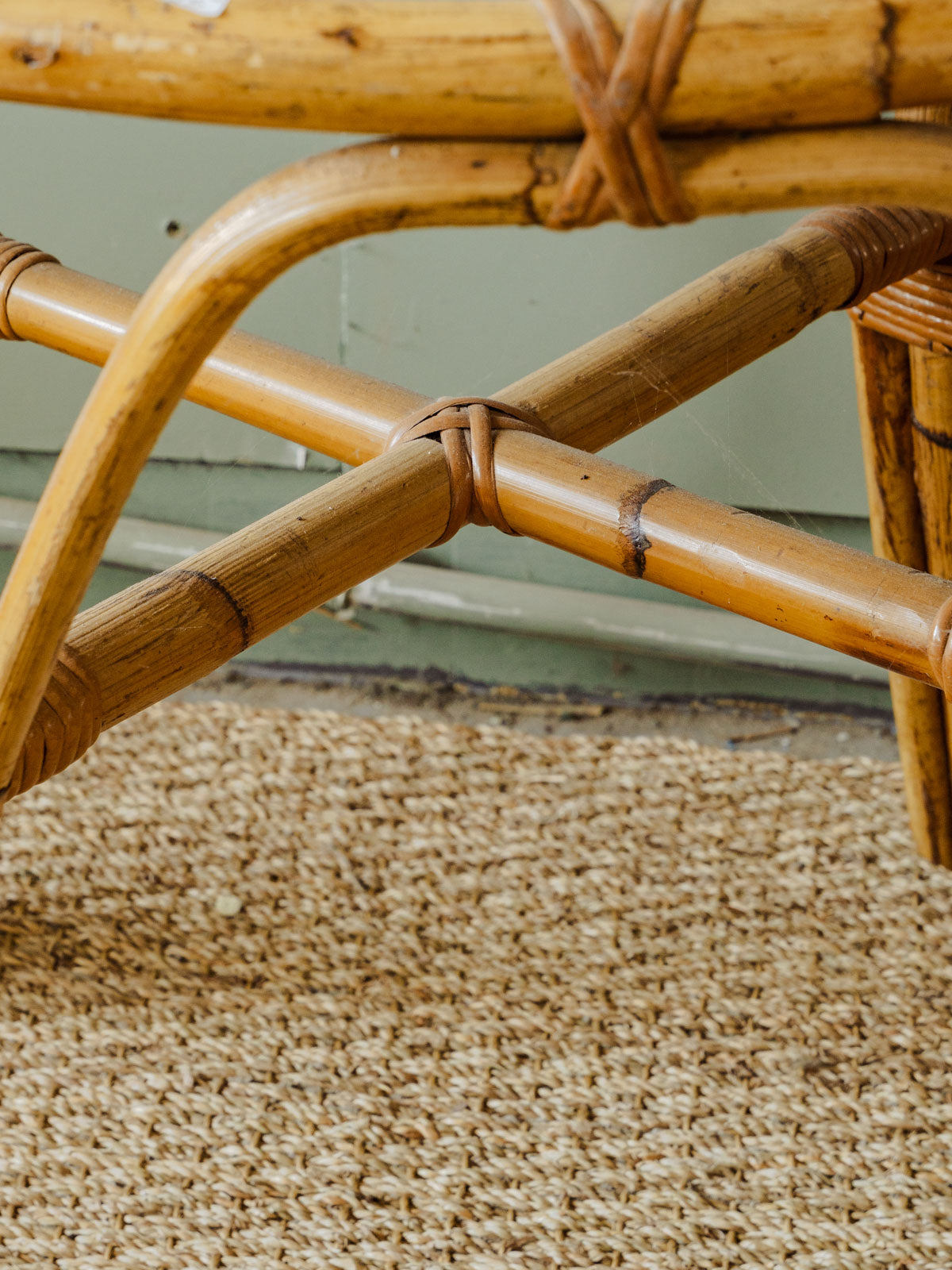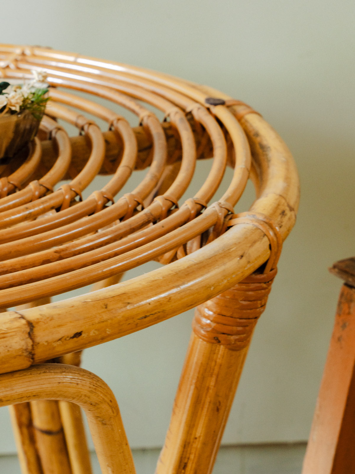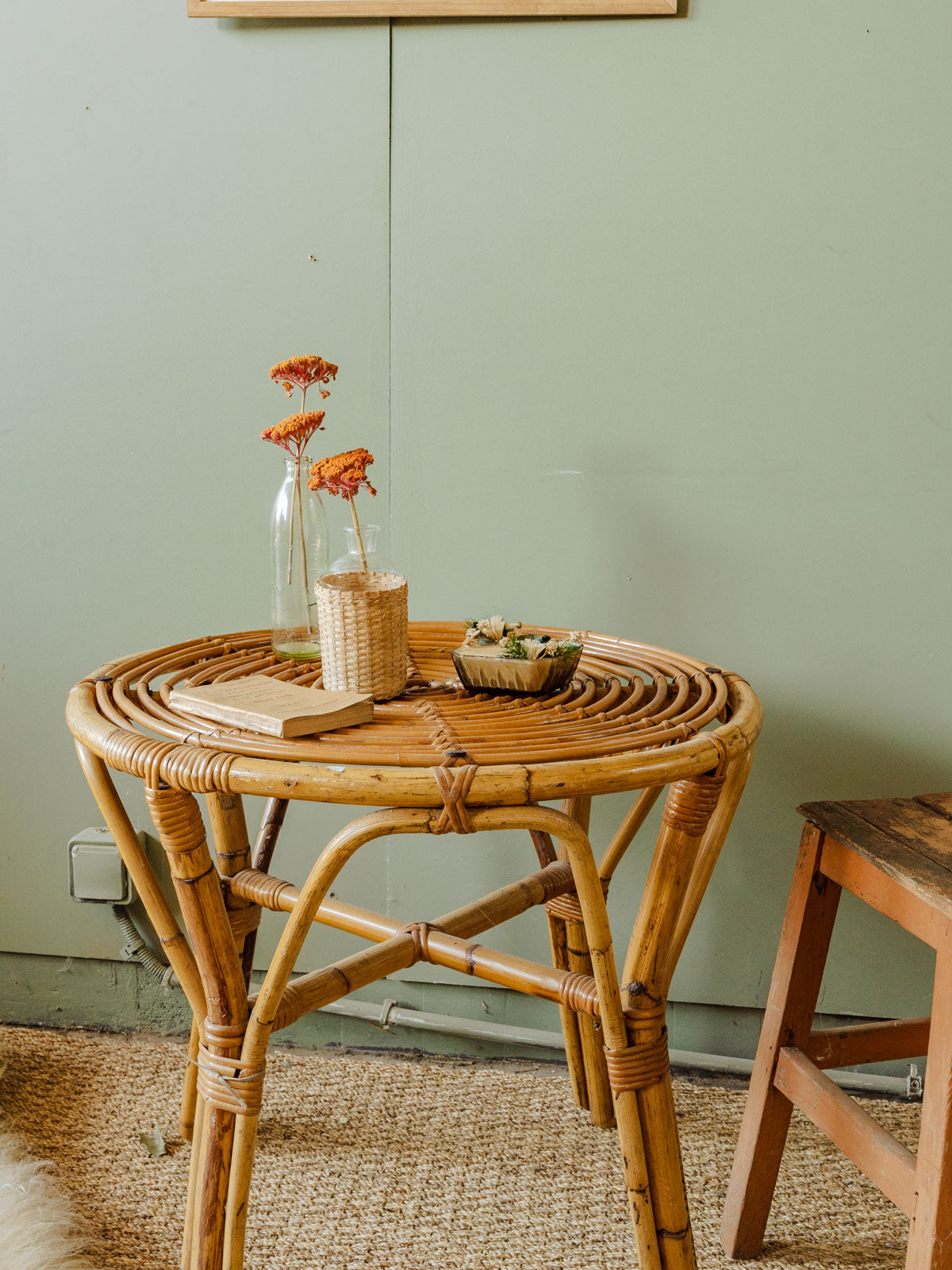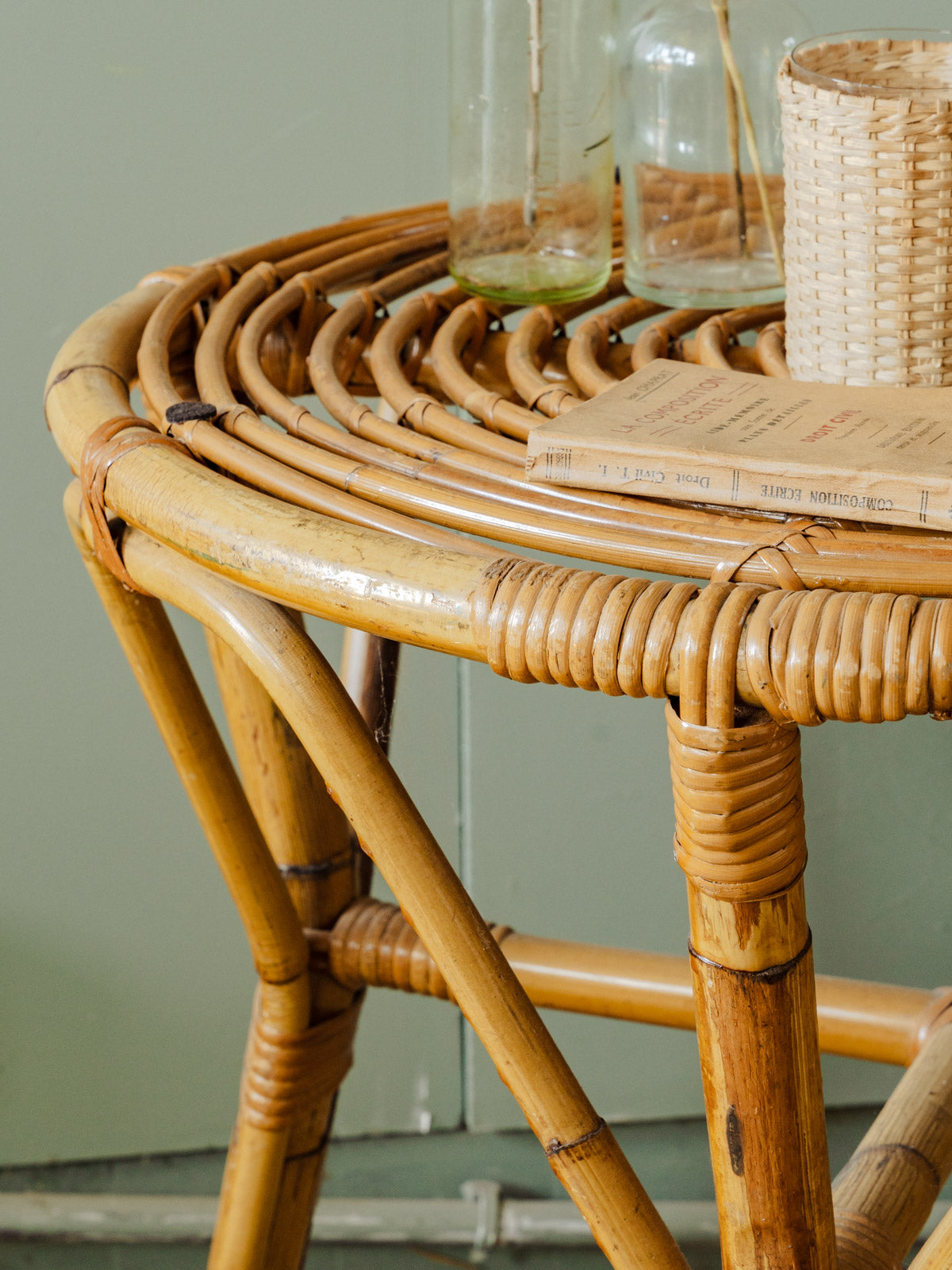 Apportez une touche rétro à votre décoration avec cette table en rotin vintage, parfaite pour les petits espaces. Elle s'intègre aisément dans votre salon ou sur votre terrasse. Son plateau offre une surface pratique pour vos boissons ou vos livres préférés. Un incontournable pour les amateurs de style authentique et chaleureux.