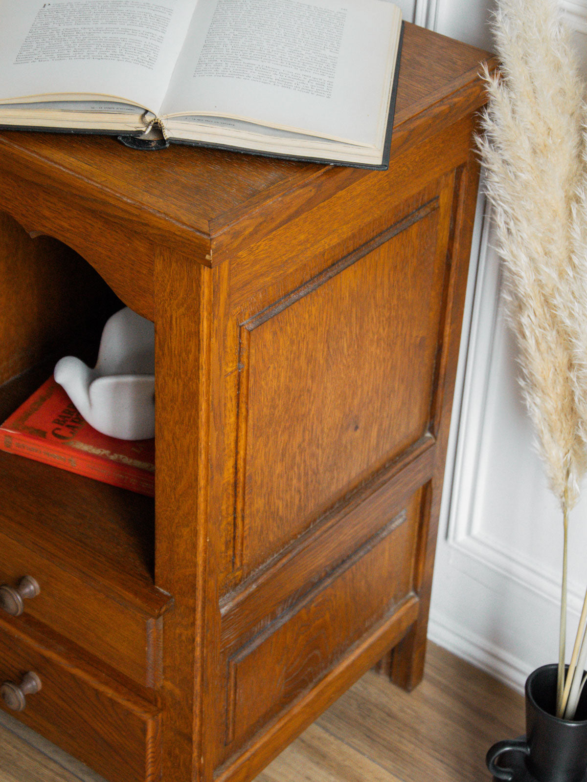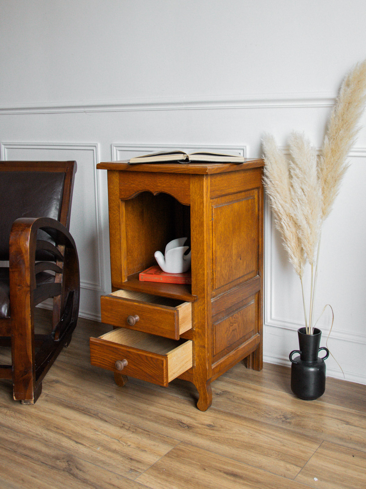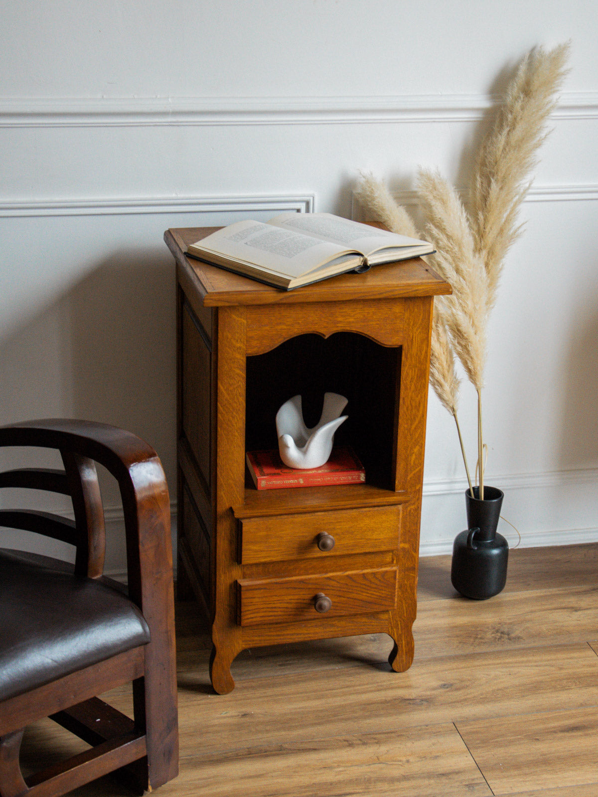 Le terme "chevet" désigne depuis le Moyen Âge un petit meuble placé à côté du lit. Initialement conçu comme support pour une lampe ou des objets personnels, le chevet évolue avec le temps pour inclure des tiroirs et des étagères. Essentiel dans la chambre à coucher, il allie aujourd'hui fonctionnalité et design, s’adaptant à tous les styles d'intérieur.