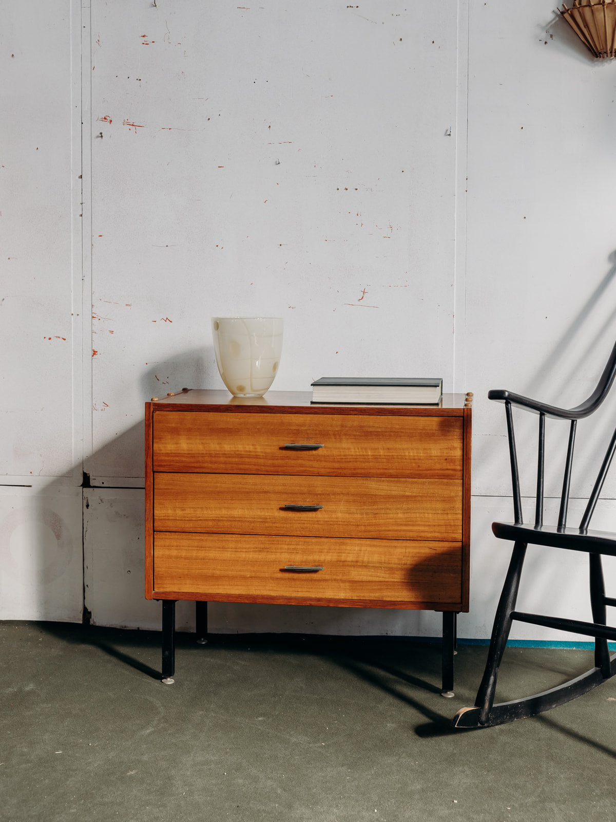 Ajoutez une touche d'élégance à votre intérieur avec cette petite commode en bois clair, soigneusement conçue pour allier fonctionnalité et style. Dotée de trois tiroirs spacieux, elle offre un espace de rangement idéal tout en s'intégrant harmonieusement dans votre décor. Ses pieds en métal noir apporte une touche contemporaine, tandis que les poignées assorties en métal ajoutent une note de sophistication. Parfaite pour les petites chambres ou les salons, cette commode sera un atout charme dans votre maison.