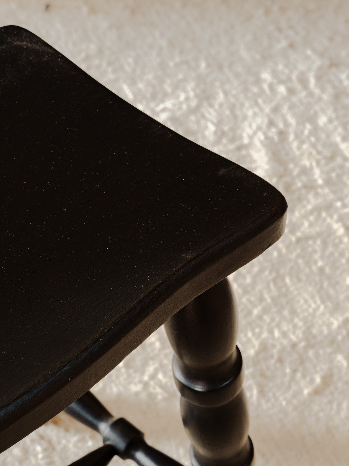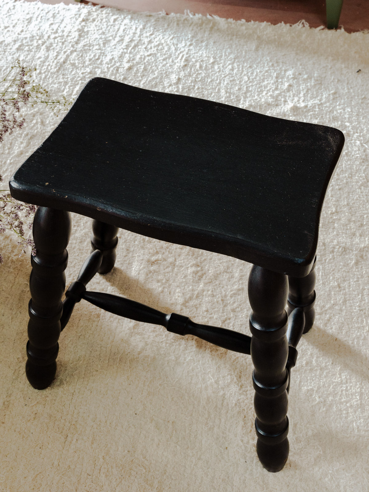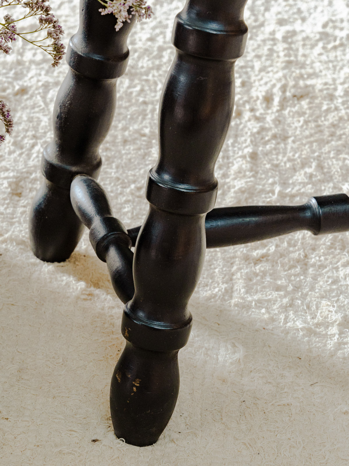 Découvrez ce magnifique tabouret ancien, soigneusement repeint en noir pour apporter une touche moderne à votre intérieur. Ses pieds torsadés sculptés témoignent d'un savoir-faire artisanal remarquable, ajoutant une élégance intemporelle. Ce meuble vintage s'adapte aussi bien à un décor classique qu'à une ambiance contemporaine, faisant de lui un incontournable pour votre décoration. Idéal en assise d'appoint ou comme élément décoratif, il allie charme et fonctionnalité.