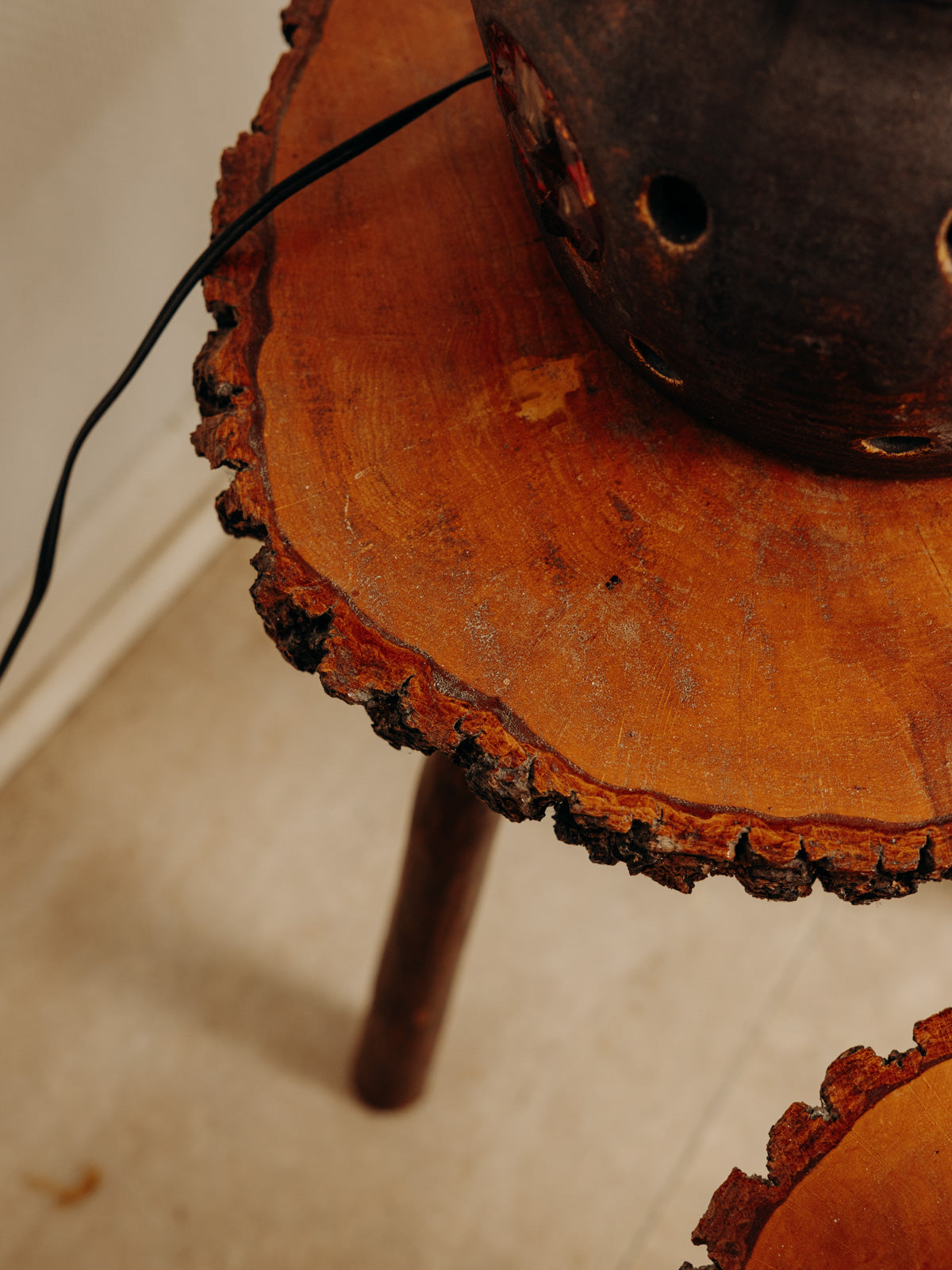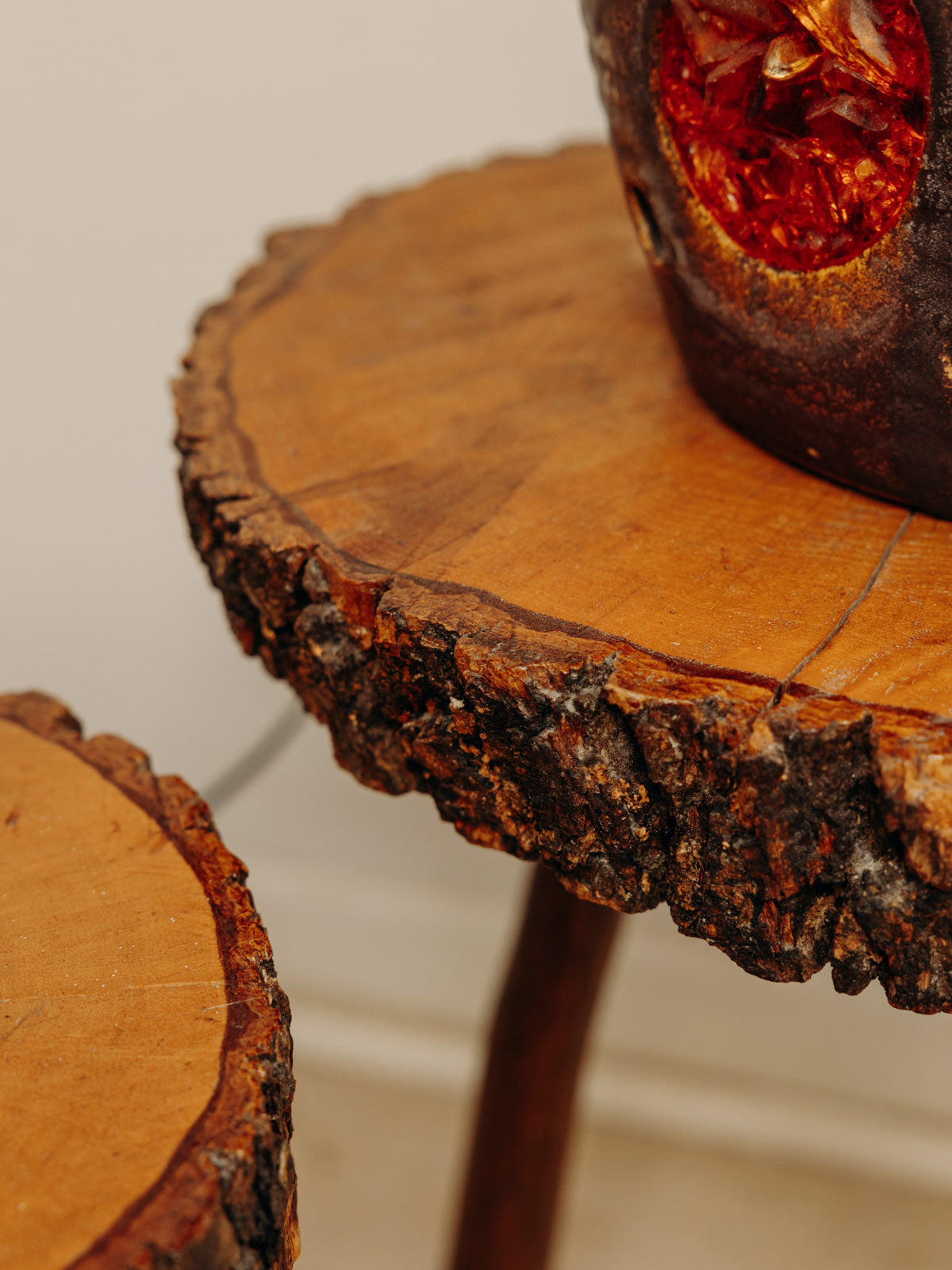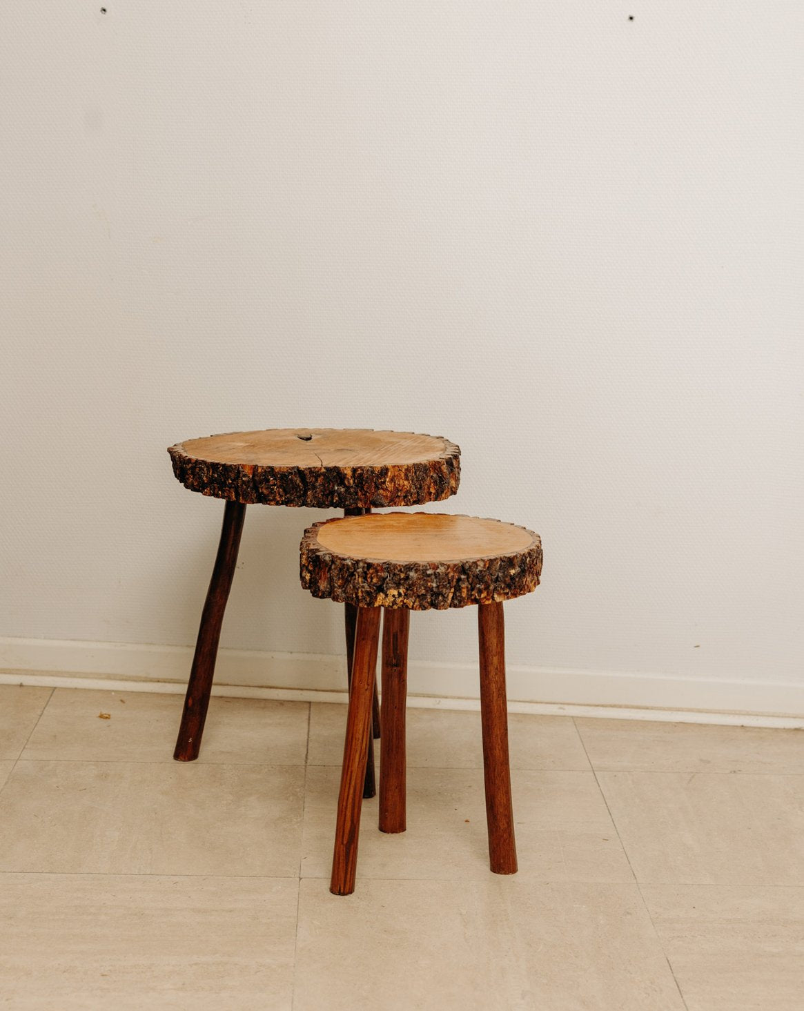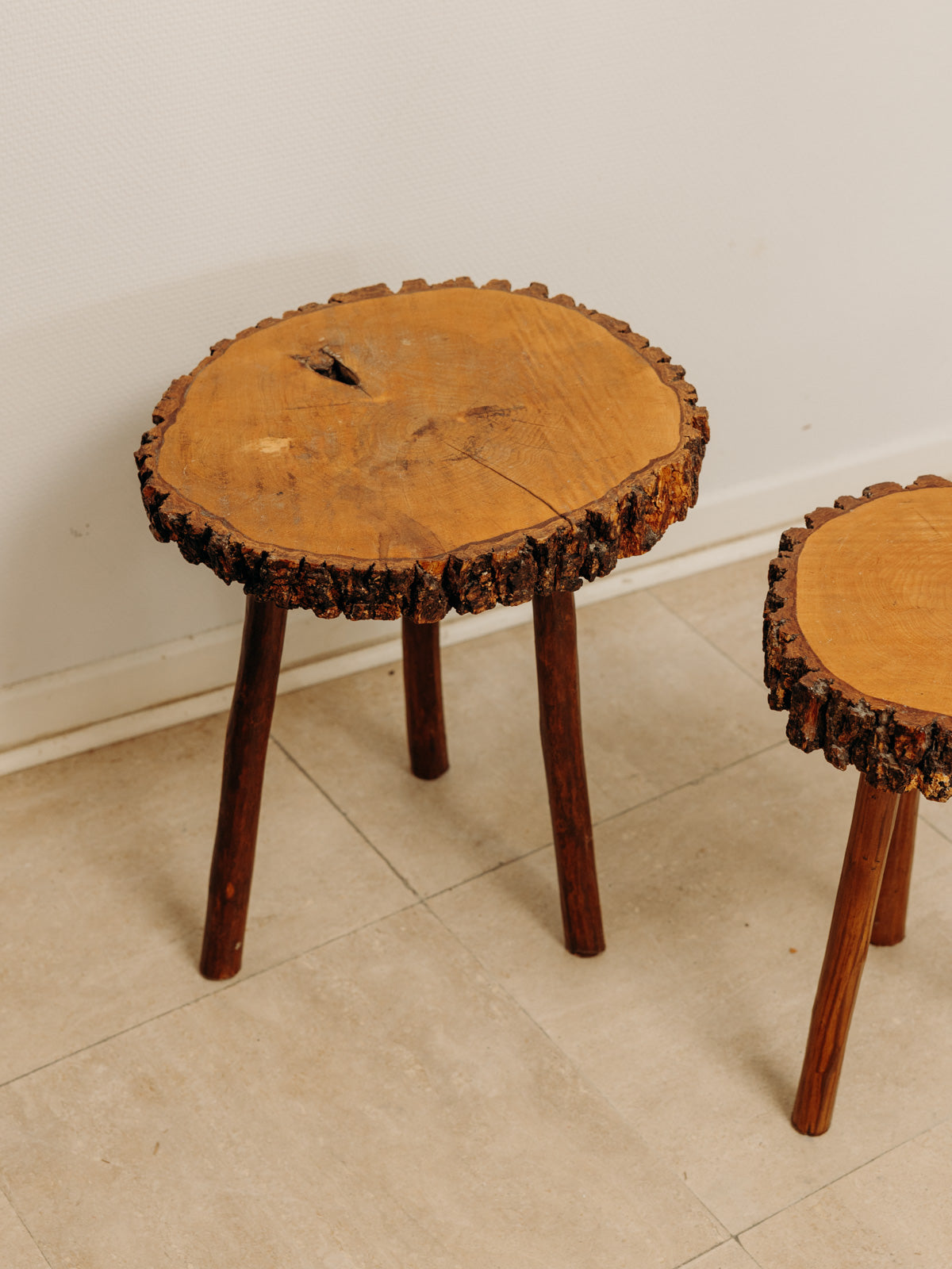 Découvrez cette paire de tabourets tripodes au style brutaliste des années 70, alliant robustesse et originalité. Fabriqués en bois massif, leur assise en écorce de chêne apporte une touche naturelle et texturée à votre intérieur. En bon état, ces tabourets sont à la fois fonctionnels et décoratifs, parfaits pour ajouter du caractère à votre espace. Ne manquez pas cette pièce unique qui saura séduire les amateurs de design vintage.