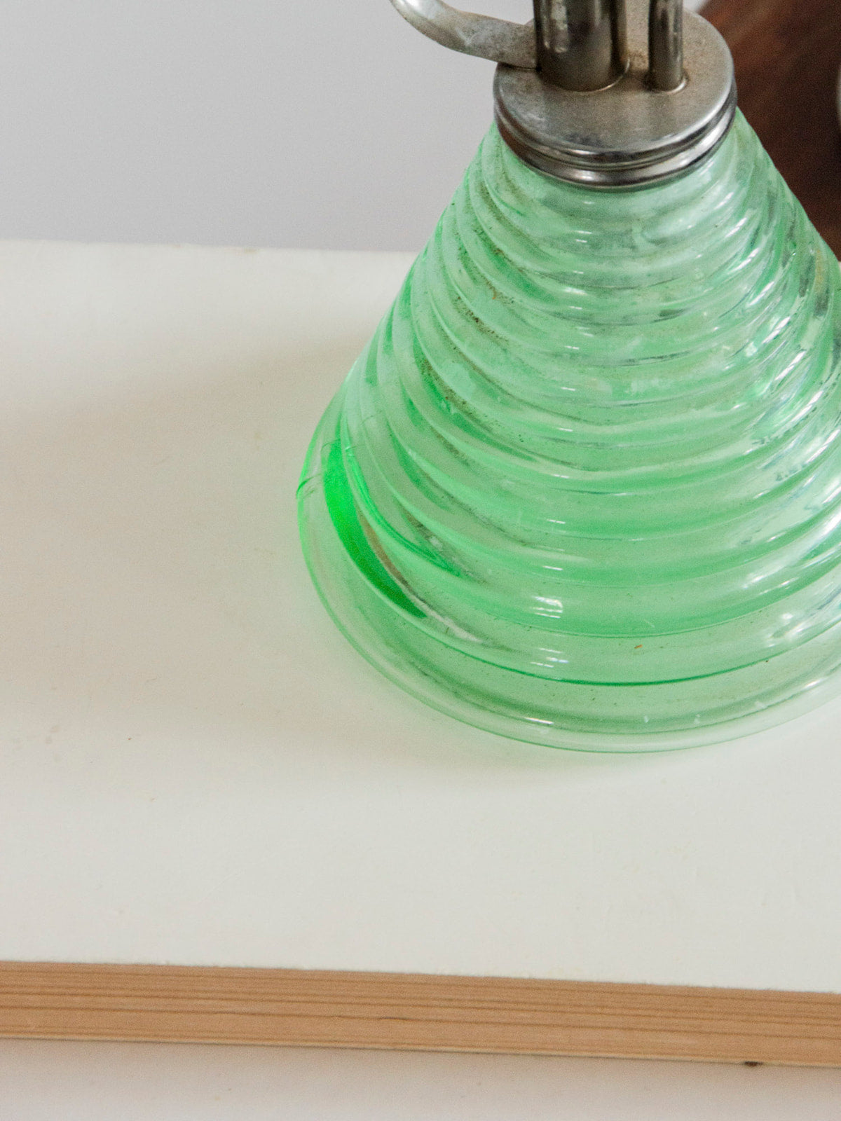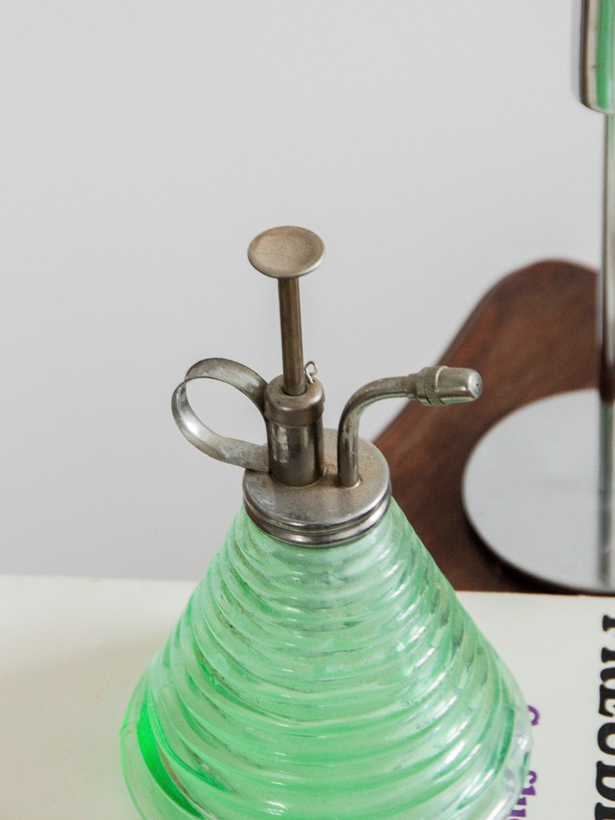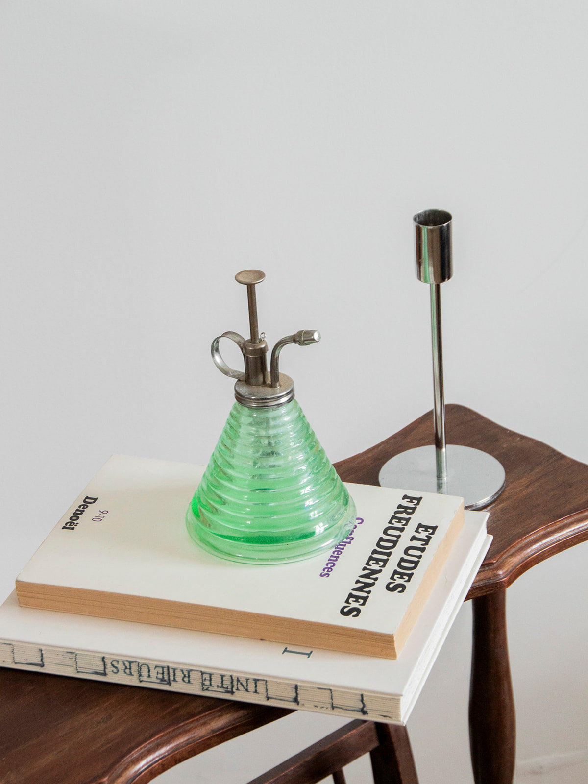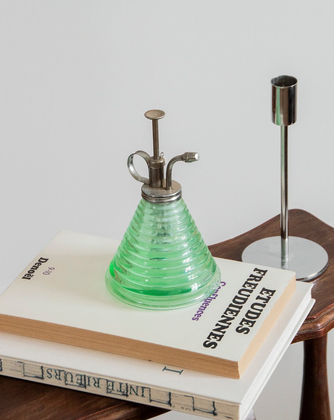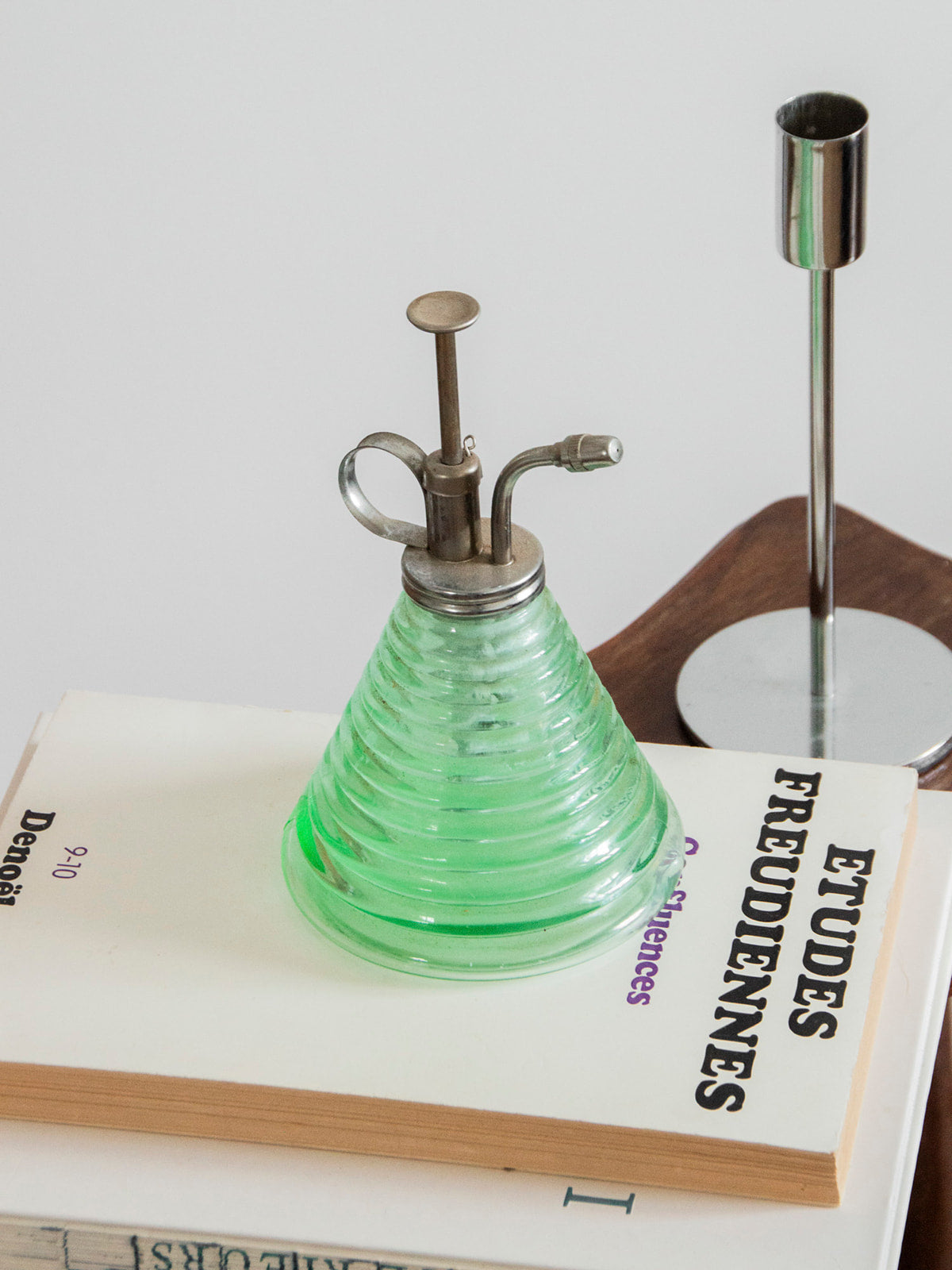 Ajoutez une touche d'élégance à votre routine de jardinage avec ce petit pulvérisateur d'eau en verre vert stiré. Idéal pour vaporiser délicatement vos plantes d'intérieur, ce accessoire combine fonctionnalité et design raffiné. Sa finition en verre de qualité offre une résistance et une allure vintage, tandis que son format compact le rend facile à manipuler et à ranger. Offrez à vos plantes l'hydratation qu'elles méritent avec style.