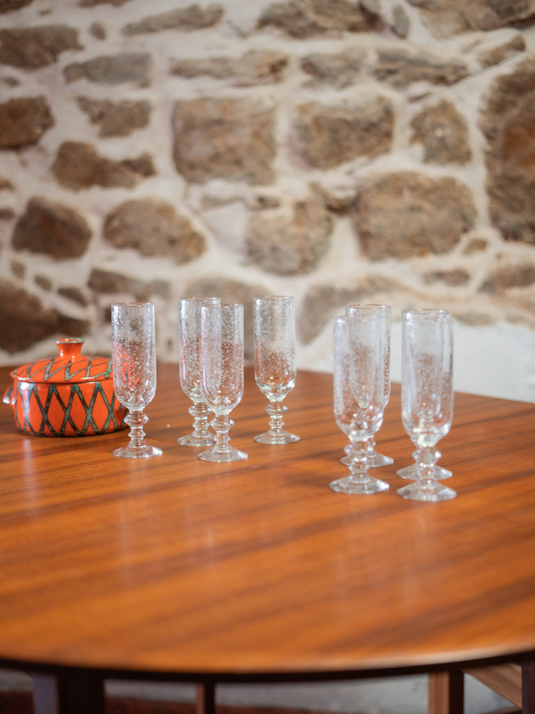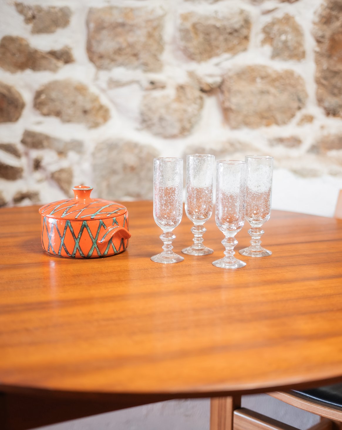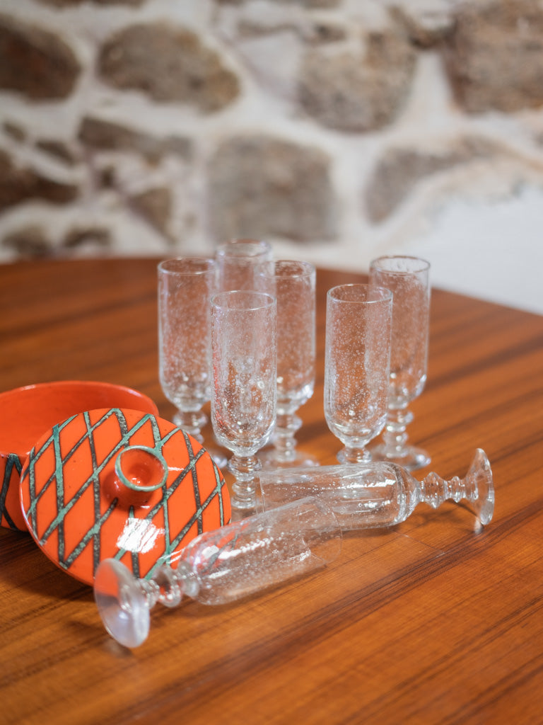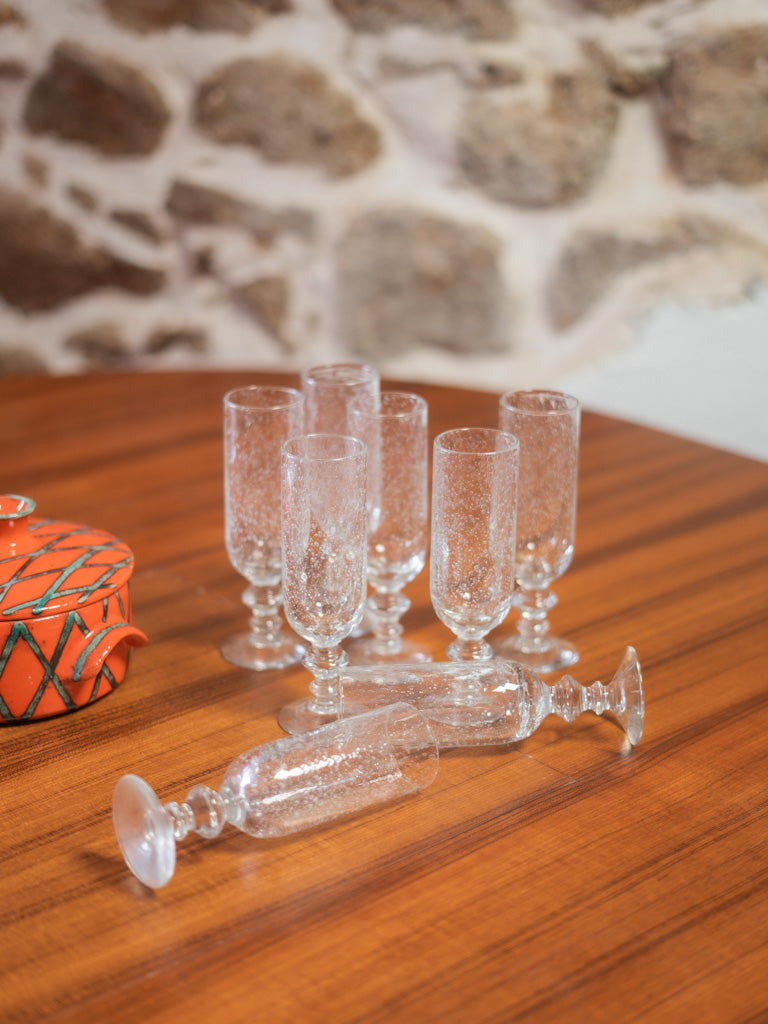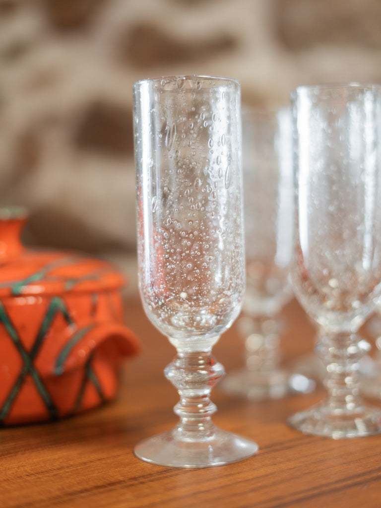 Découvrez notre élégant lot de 4 flutes en verre bullé, réalisées avec soin par la célèbre verrerie de Biot. Alliant esthétisme et fonctionnalité, ces flutes apporteront une touche raffinée à vos réceptions et moments de fête. Ne manquez pas l'opportunité d'ajouter cette pièce artisanale unique à votre collection ! Laissez-vous séduire par leur design intemporel et leur brillance éclatante. 2 lots disponibles, vendu à l'unité.