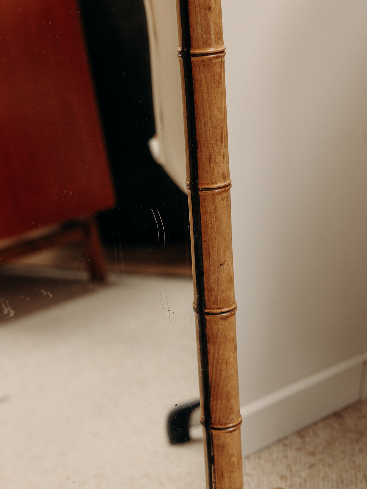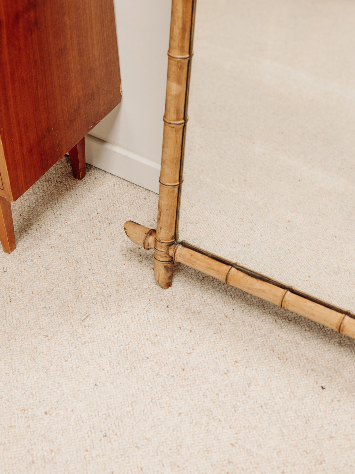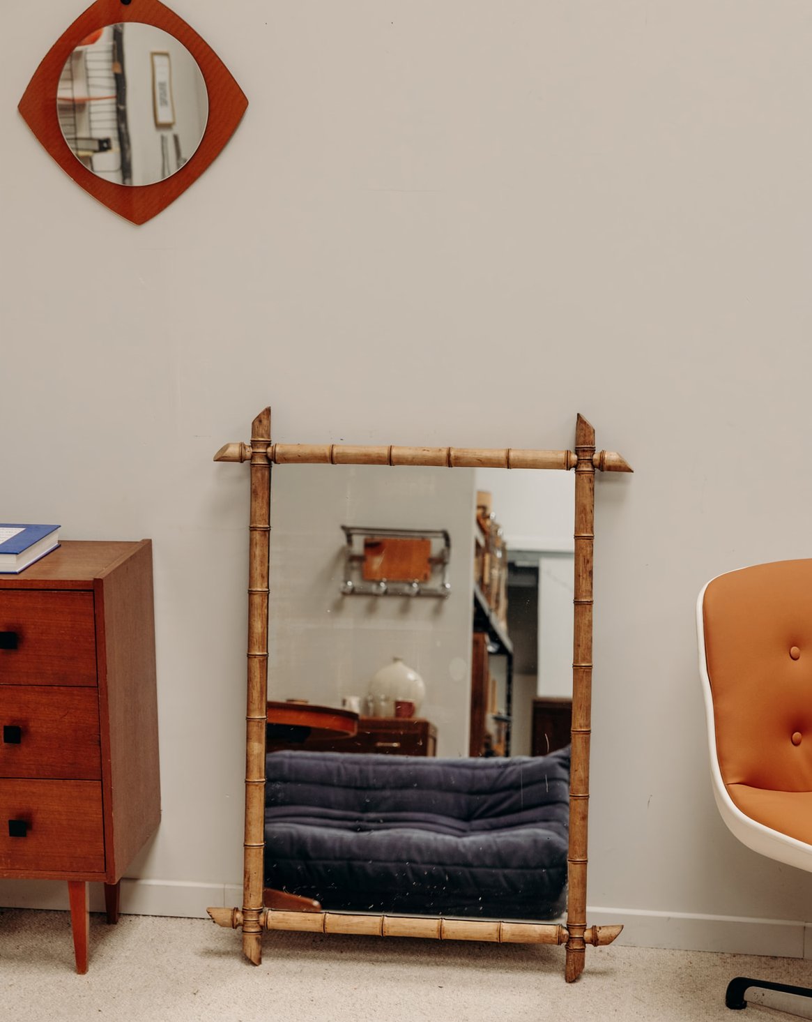 Ajoutez une touche d'élégance à votre intérieur avec ce miroir vintage en bambou. Son design délicat et naturel apporte une ambiance chaleureuse à n'importe quelle pièce. Idéal pour un hall d'entrée ou une chambre, ce miroir reflète non seulement votre style, mais aussi la lumière, créant une atmosphère accueillante. Ses lignes organiques et son cadre en bambou en font un incontournable pour les amateurs de décoration authentique et intemporelle.