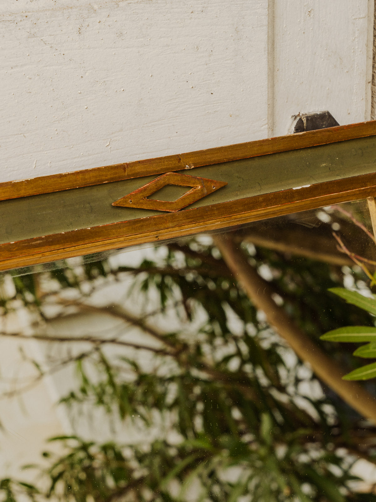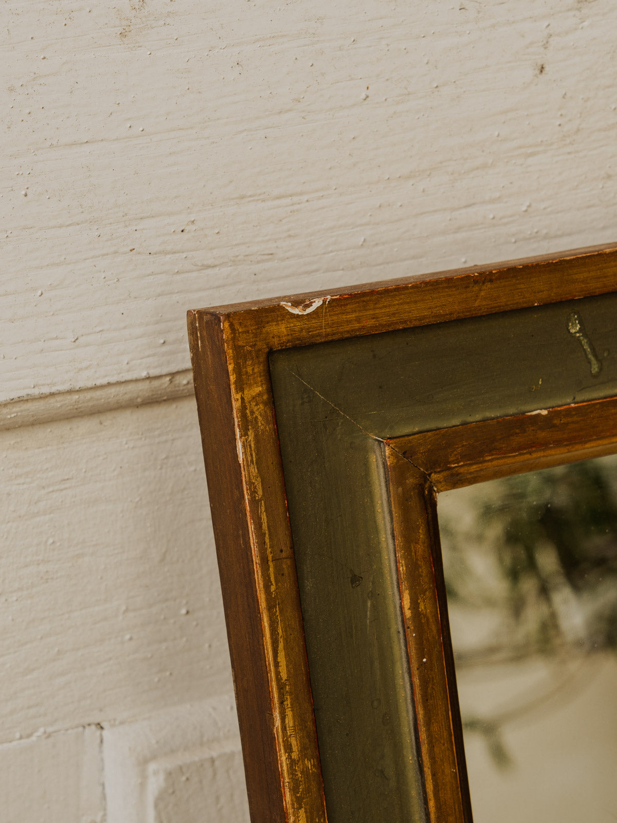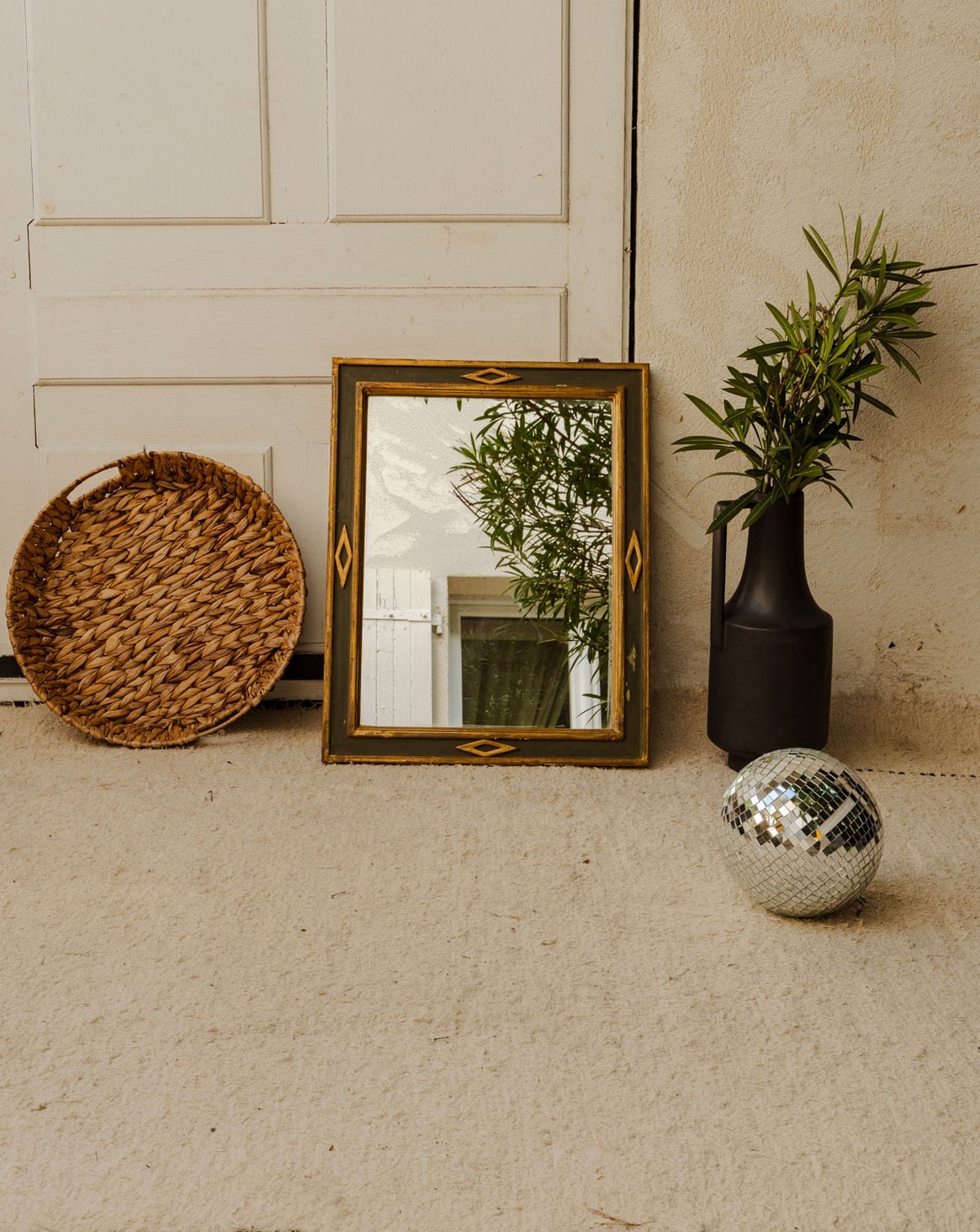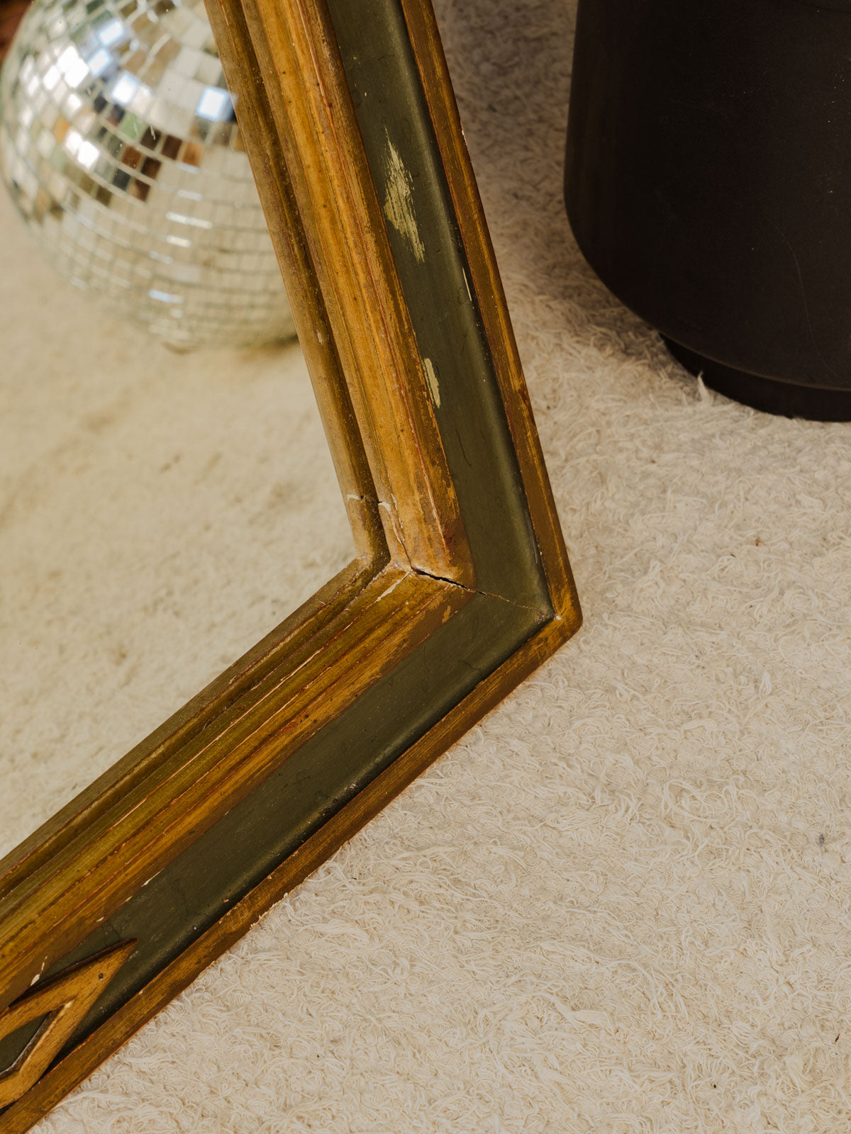 Ajoutez une touche d'élégance à votre intérieur avec ce miroir vert et doré, ancien en bois et plâtre. Son design raffiné et ses détails délicats témoignent d'un savoir-faire artisanal d'exception. Idéal pour embellir un salon ou une entrée, ce miroir apportera profondeur et luminosité à votre espace. Un véritable pièce de caractère qui allie charme vintage et sophistication. Quelques manques qui de matière qui n'enlèvent rien à son charme.