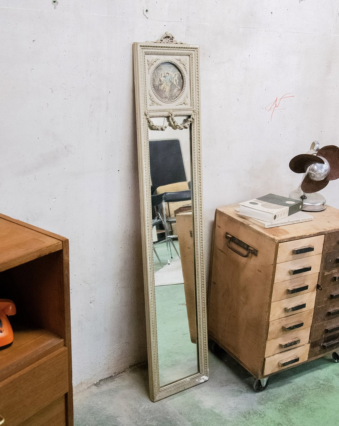 Laissez-vous séduire par le charme de ce miroir ancien de couleur verte, sublimé par une belle moulure et une patine d’époque. Sa silhouette fine et allongée en fait un allié idéal pour habiller une entrée, un salon ou une chambre. Une pièce unique qui apportera du cachet à votre décoration et attirera les regards sans en faire trop.