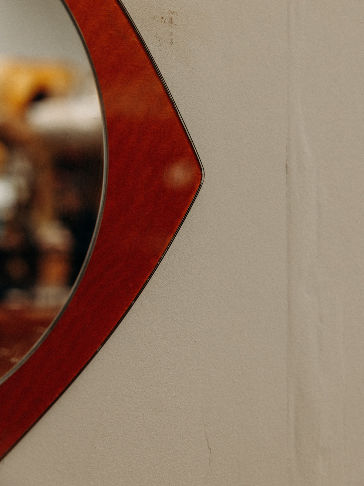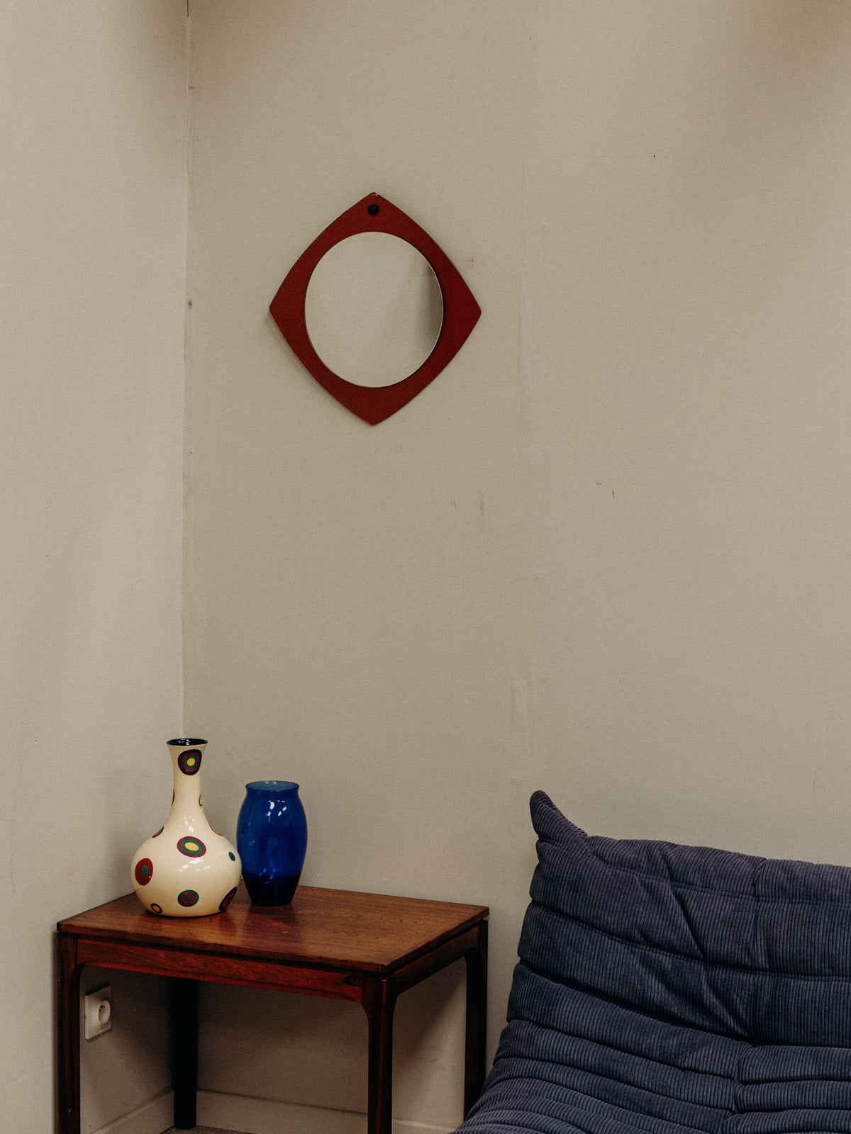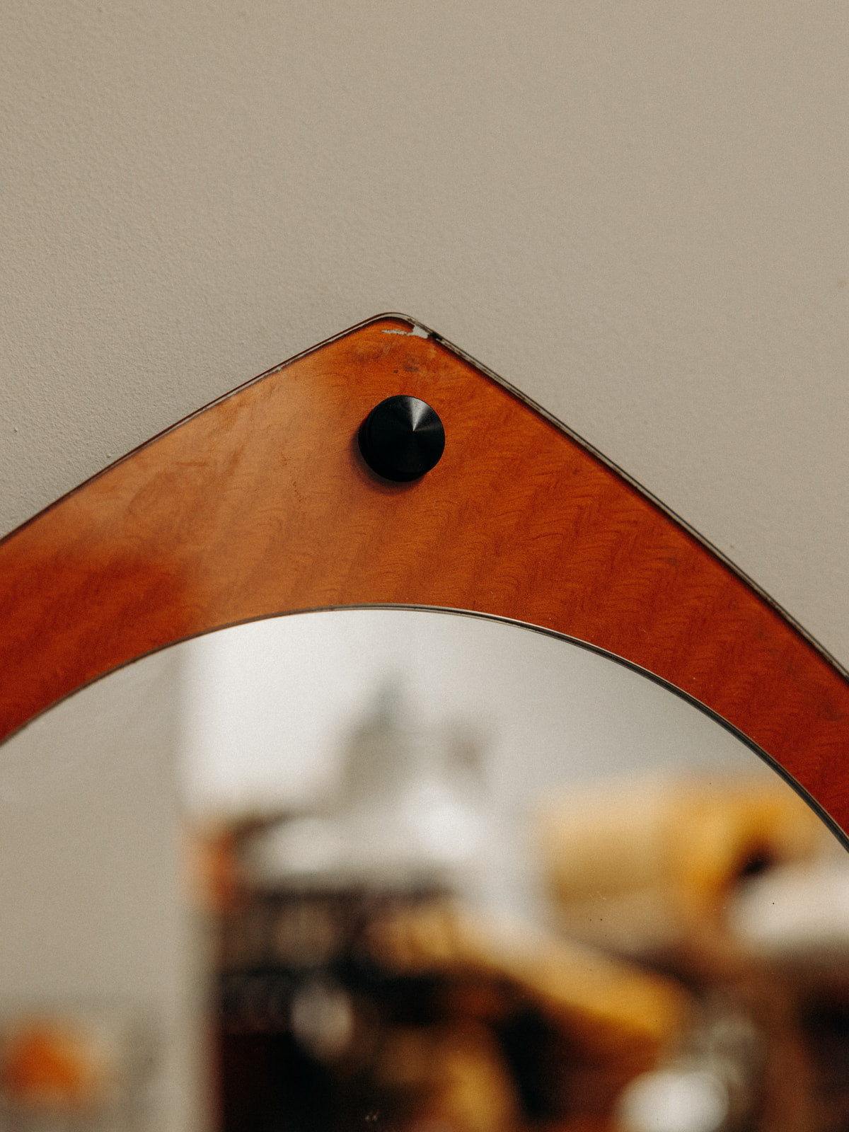 Ce miroir rond au contour en forme de losange apporte une belle touche d’élégance à votre intérieur. Sa teinte marron chaleureuse donne du caractère, tandis que sa surface réfléchissante capte la lumière avec douceur. Parfait pour habiller un hall d’entrée, une chambre ou une coiffeuse, il combine utilité et style avec simplicité. Un petit détail déco qui fait toute la différence.