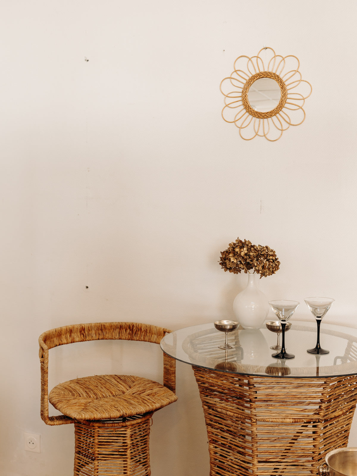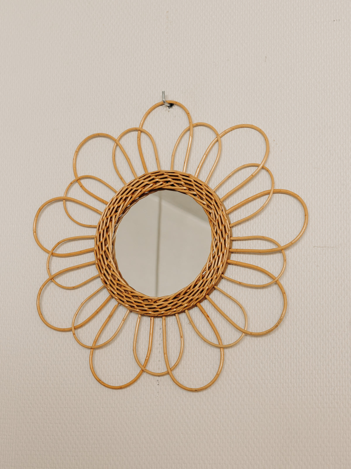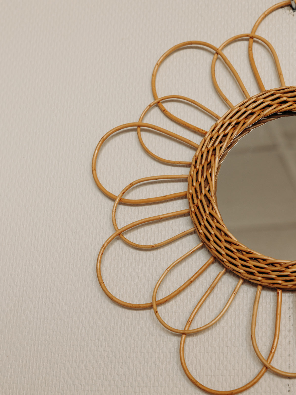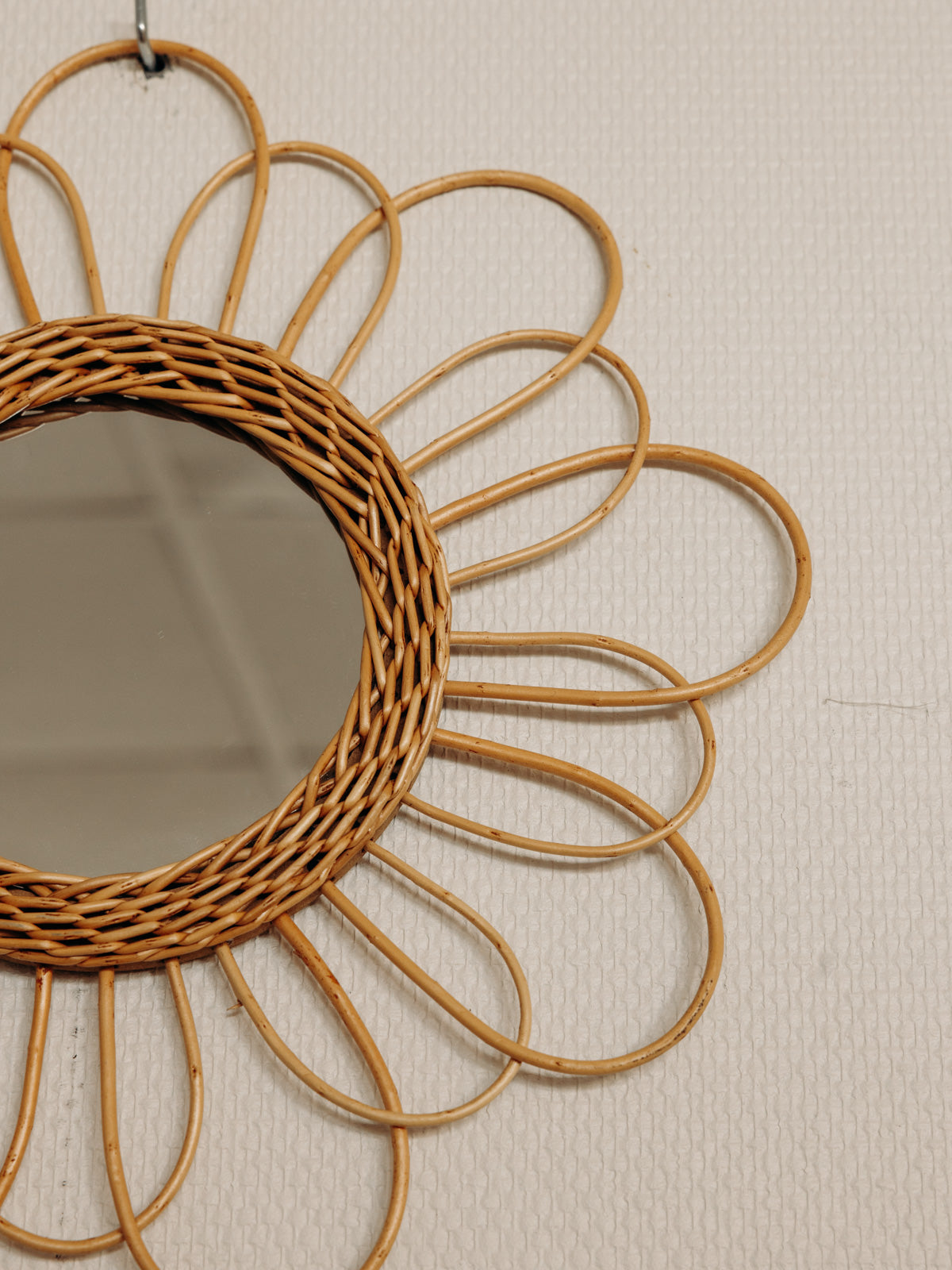 Ajoutez une touche de charme floral à votre intérieur avec ce miroir en rotin et verre au design délicat. La forme élégante de la fleur apporte une note de douceur, tandis que le cadre en rotin naturel souligne un style bohème chic. Parfait pour illuminer un coin de votre pièce ou sublimer un mur, ce petit miroir est l'accessoire déco idéal pour refléter votre personnalité. Ses dimensions compactes en font un choix idéal pour les petits espaces.