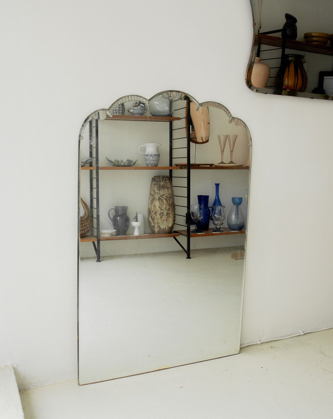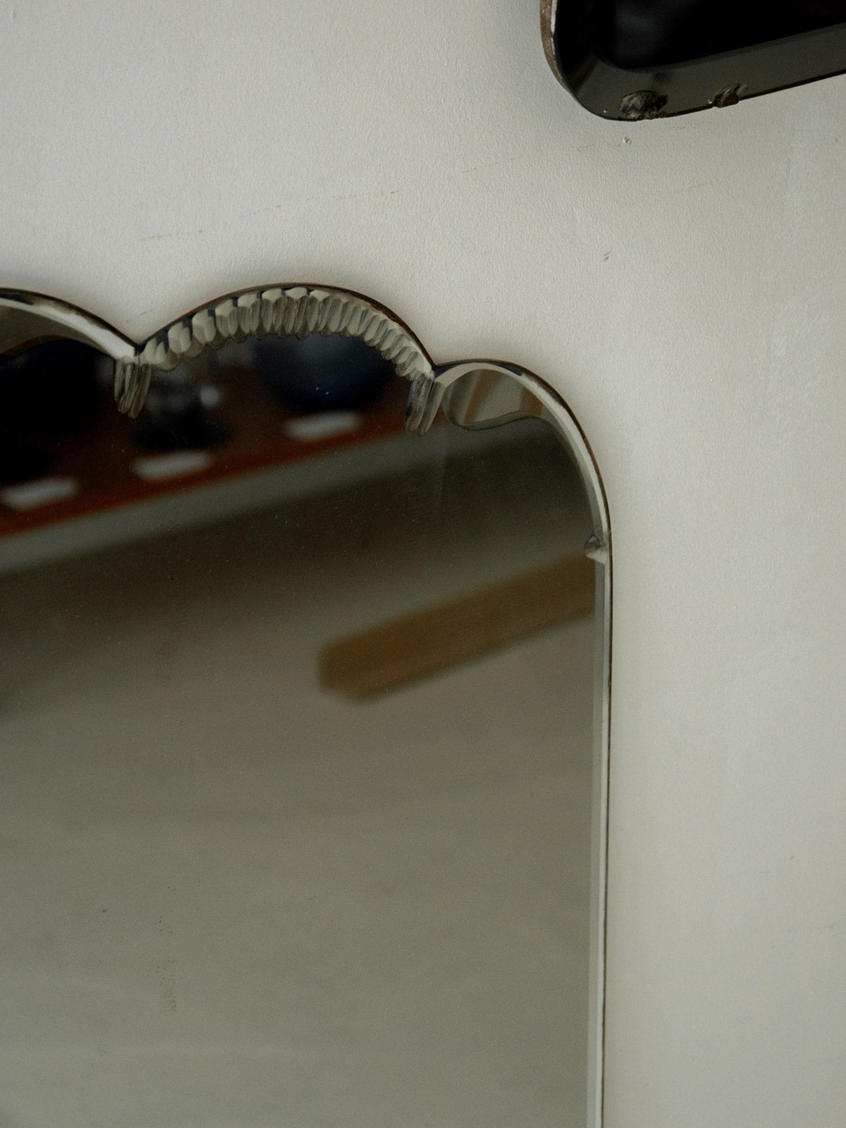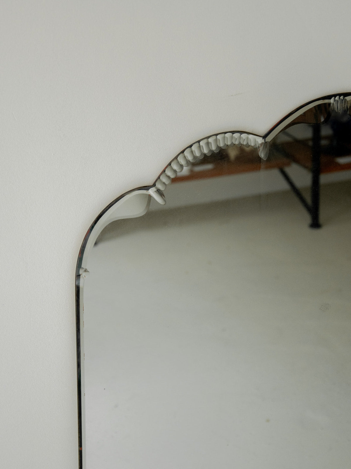 Offrez une touche poétique à votre intérieur avec ce miroir orné de formes florales sur le dessus. Ses contours biseautés créent un effet lumineux et raffiné, et il peut facilement s’accrocher au mur. Idéal pour sublimer un salon, une chambre ou une entrée, il apporte élégance et profondeur à la pièce. À noter, un petit défaut d'usure se trouve sur un coin du miroir, sans nuire à son charme. Une pièce à la fois esthétique, originale et pleine de caractère.
